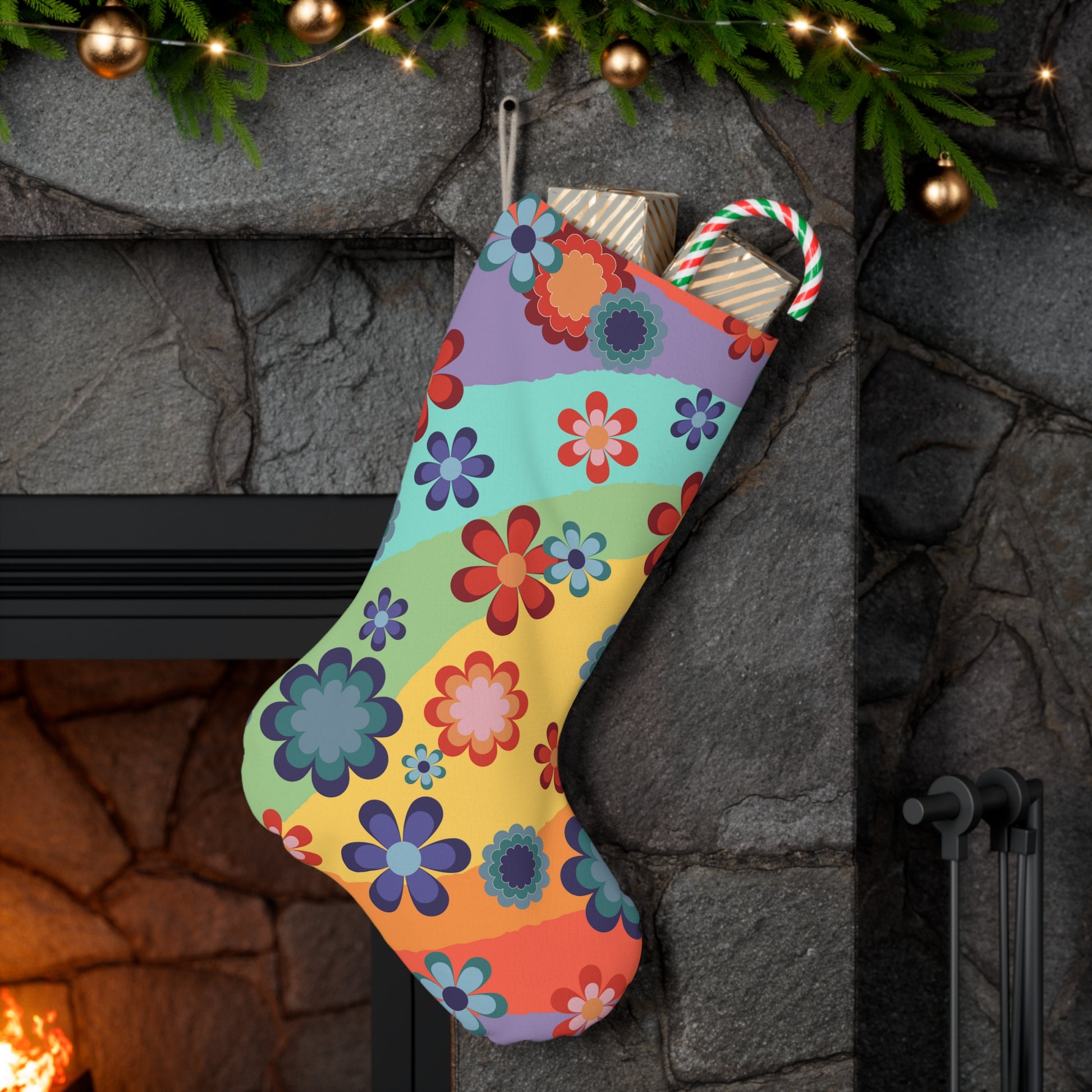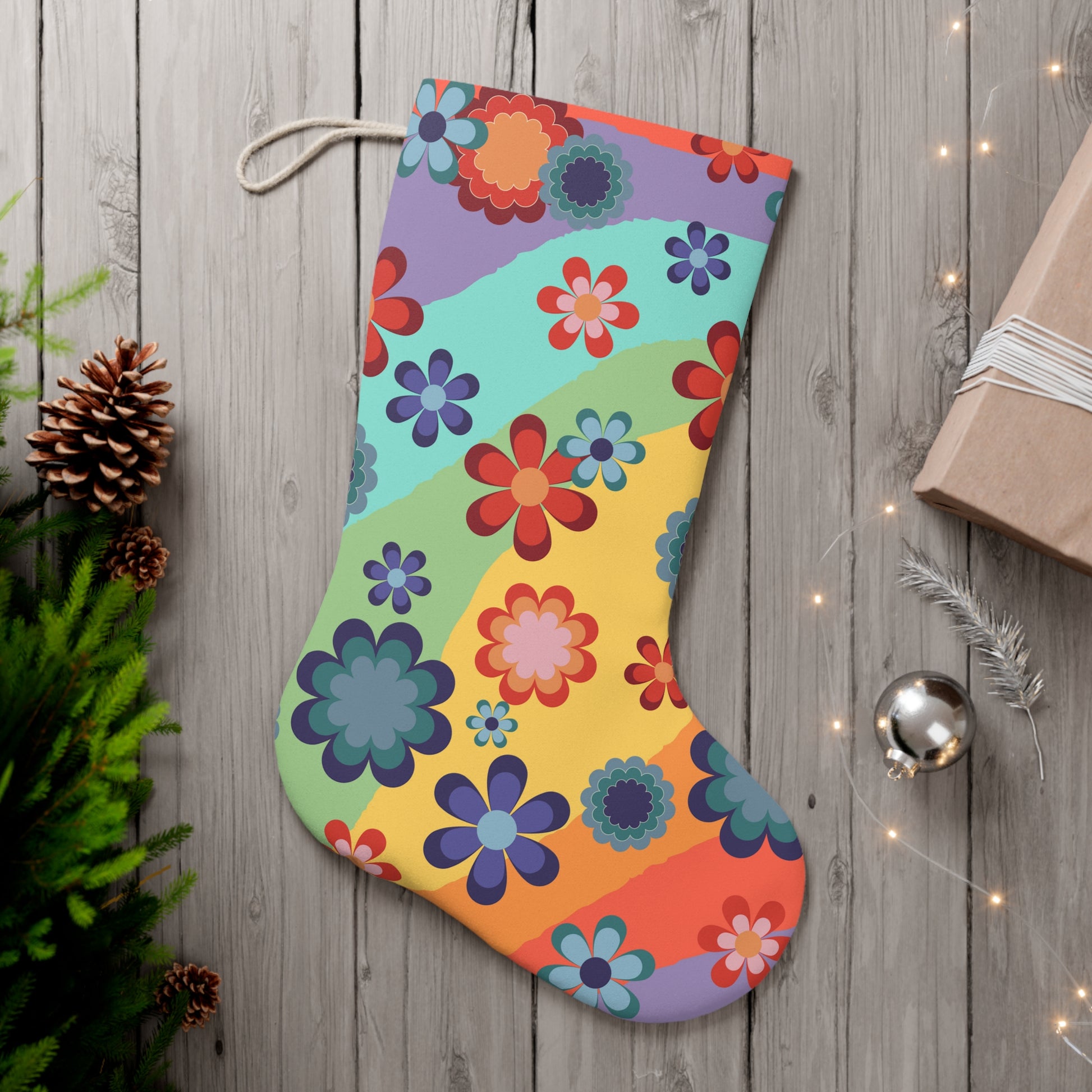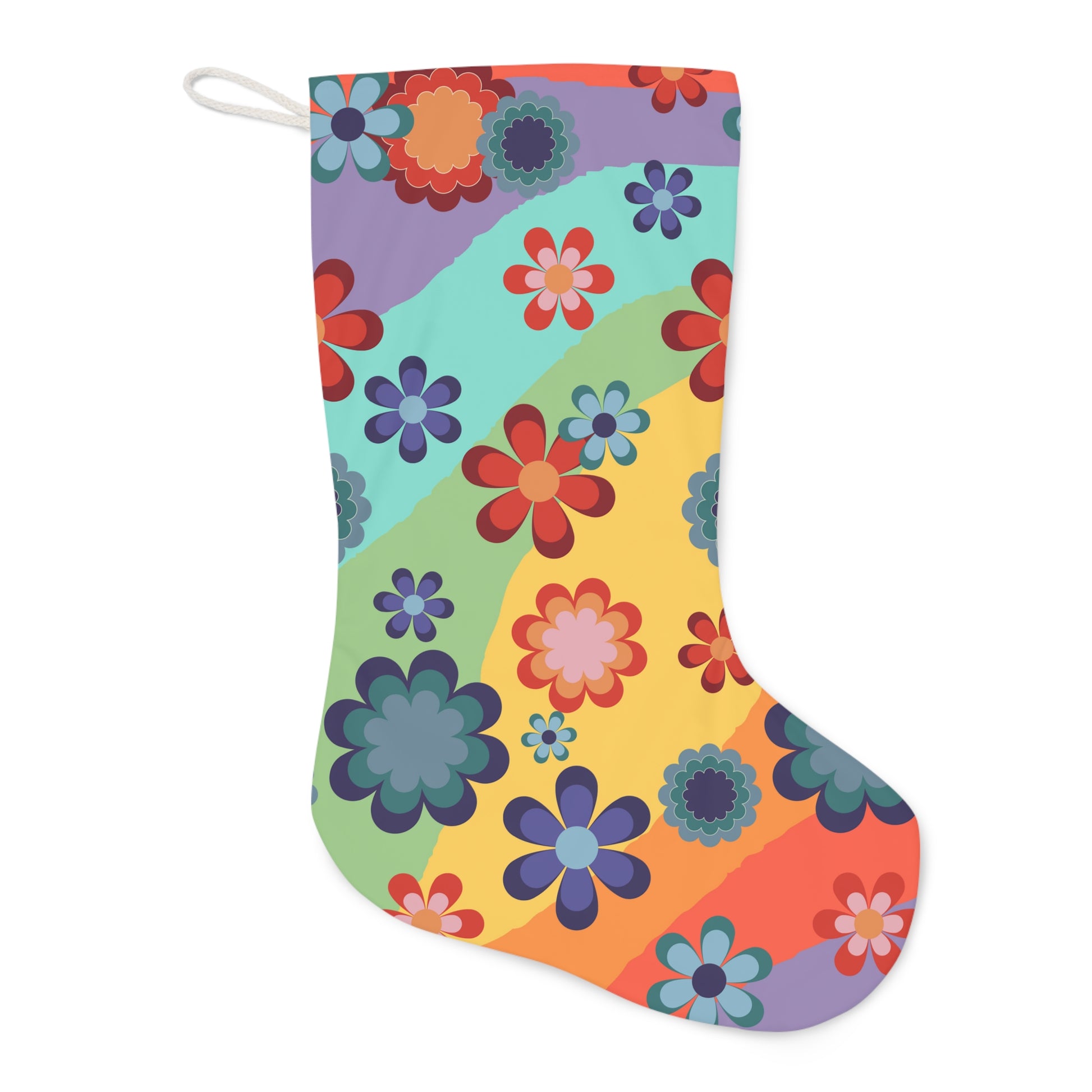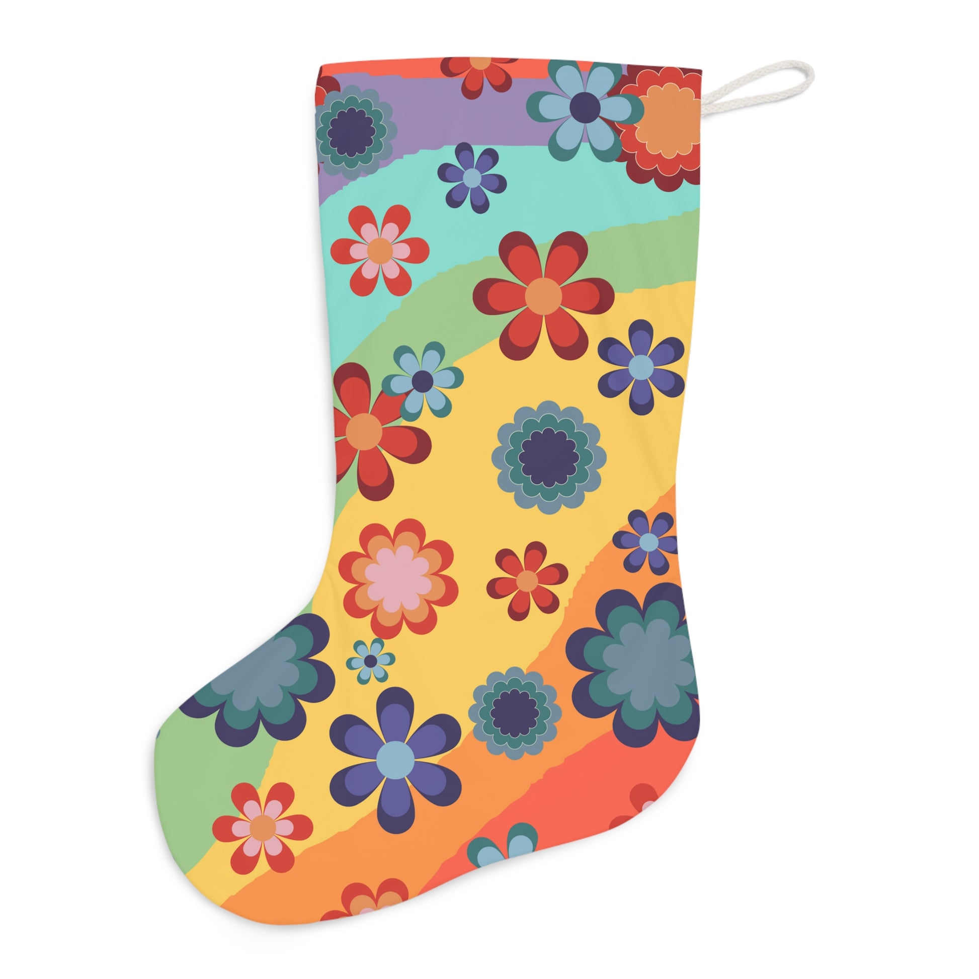 Groovy Floral Retro MCM Rainbow Hippie Christmas Stocking