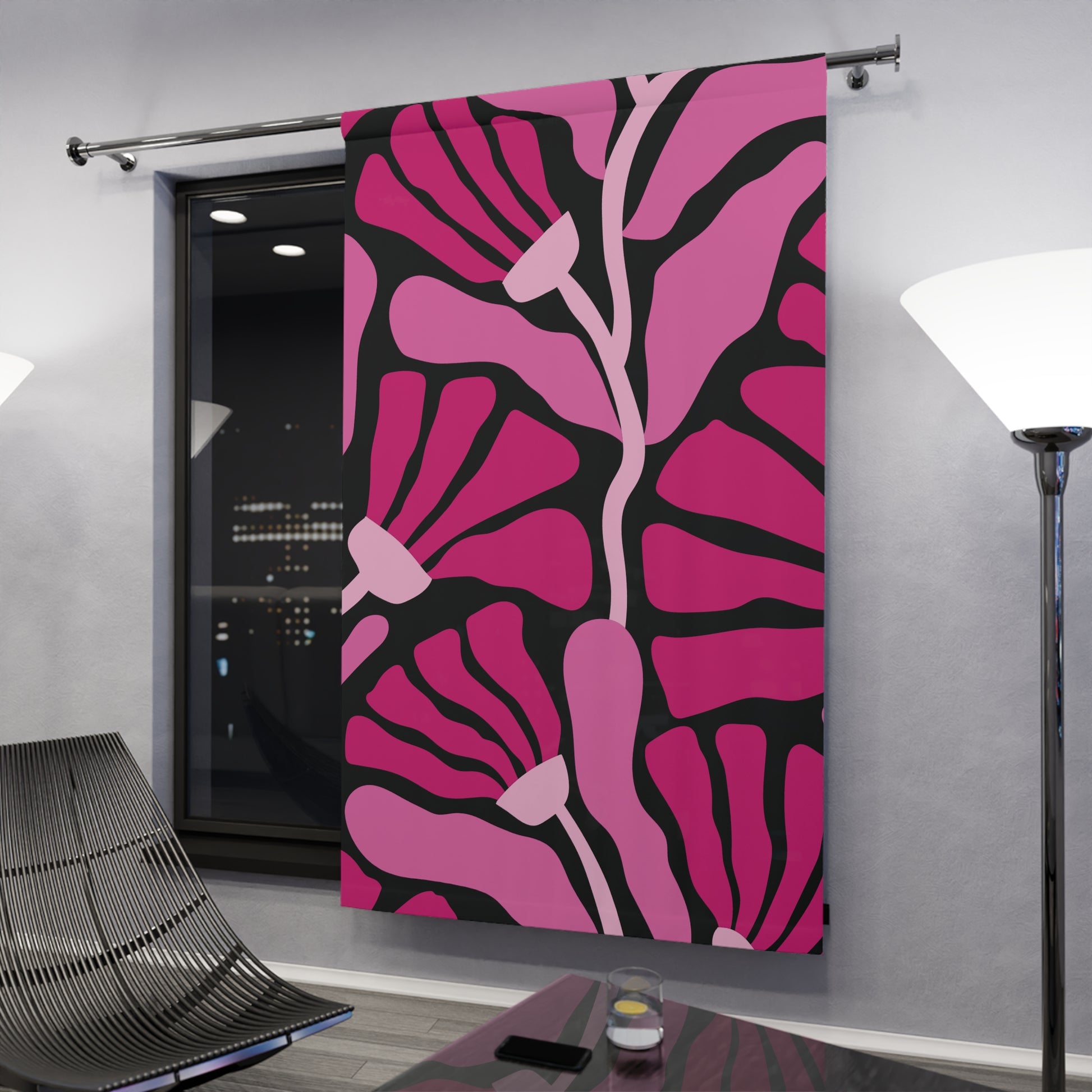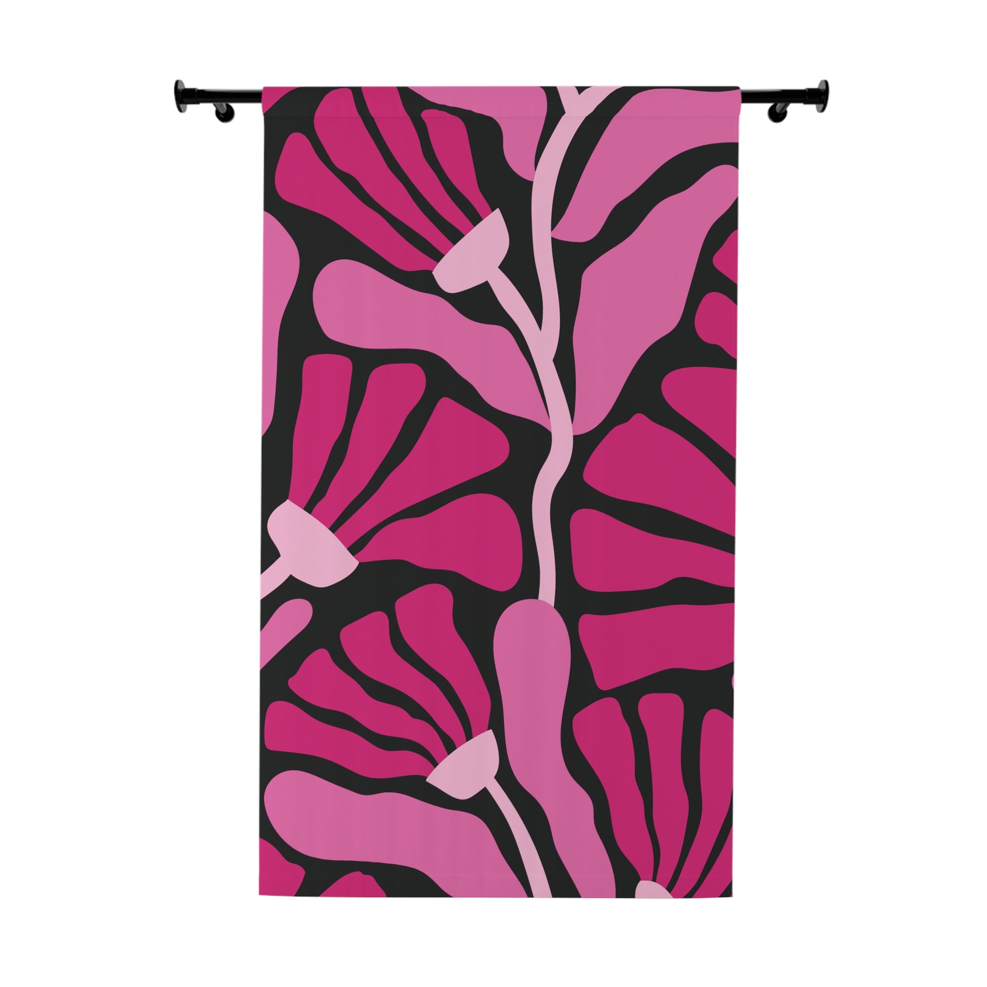 Groovy Mod Minimalist Flowers MCM Black & Pink Blackout Window Curtain