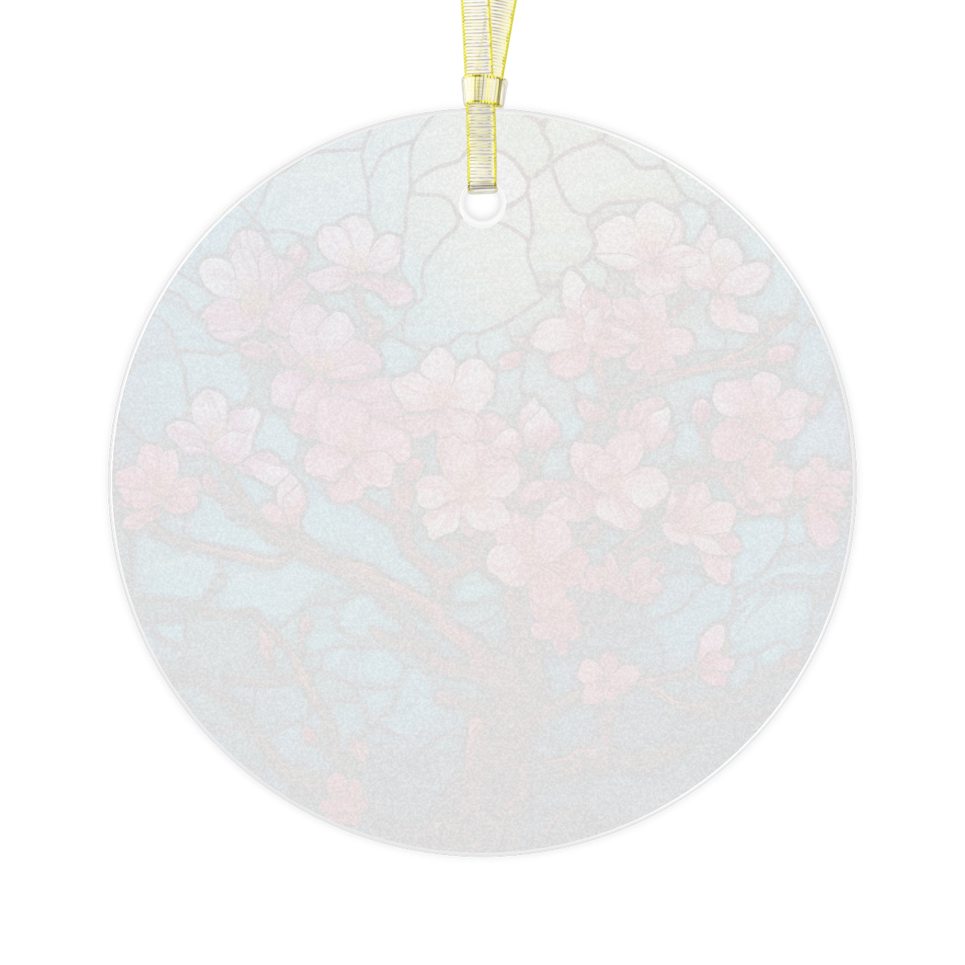 Japanese Sakura Blooming Cherry Blossom Tree, Stained Glass Inspired Colorful Glass Ornament