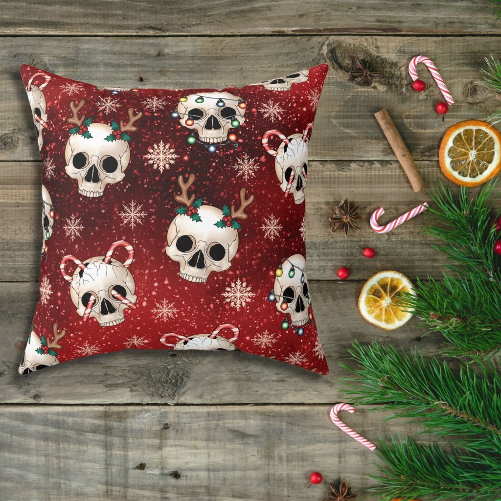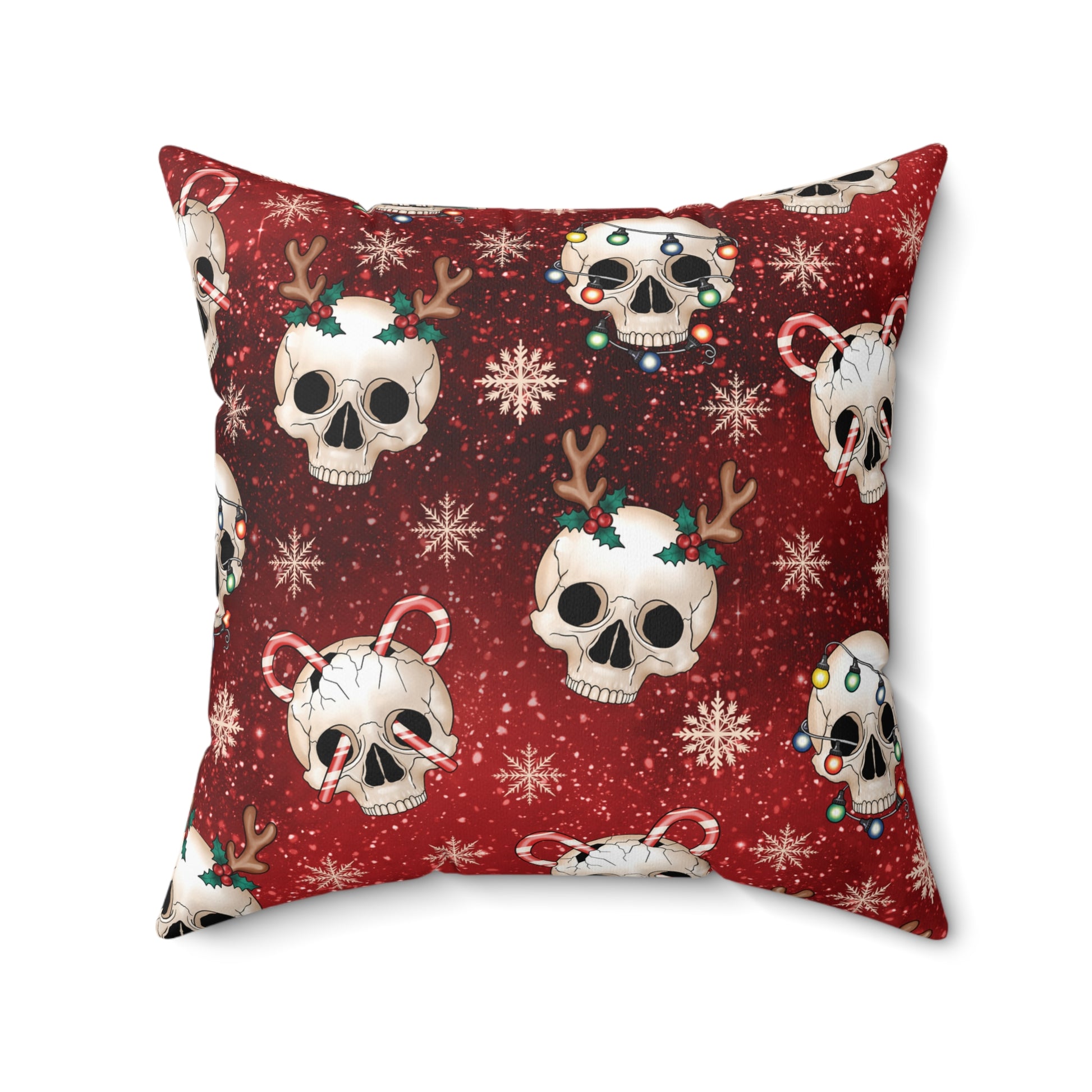 Kitschy Goth Christmas Skulls Red Gothmas & Creepmas Holiday Accent Pillow