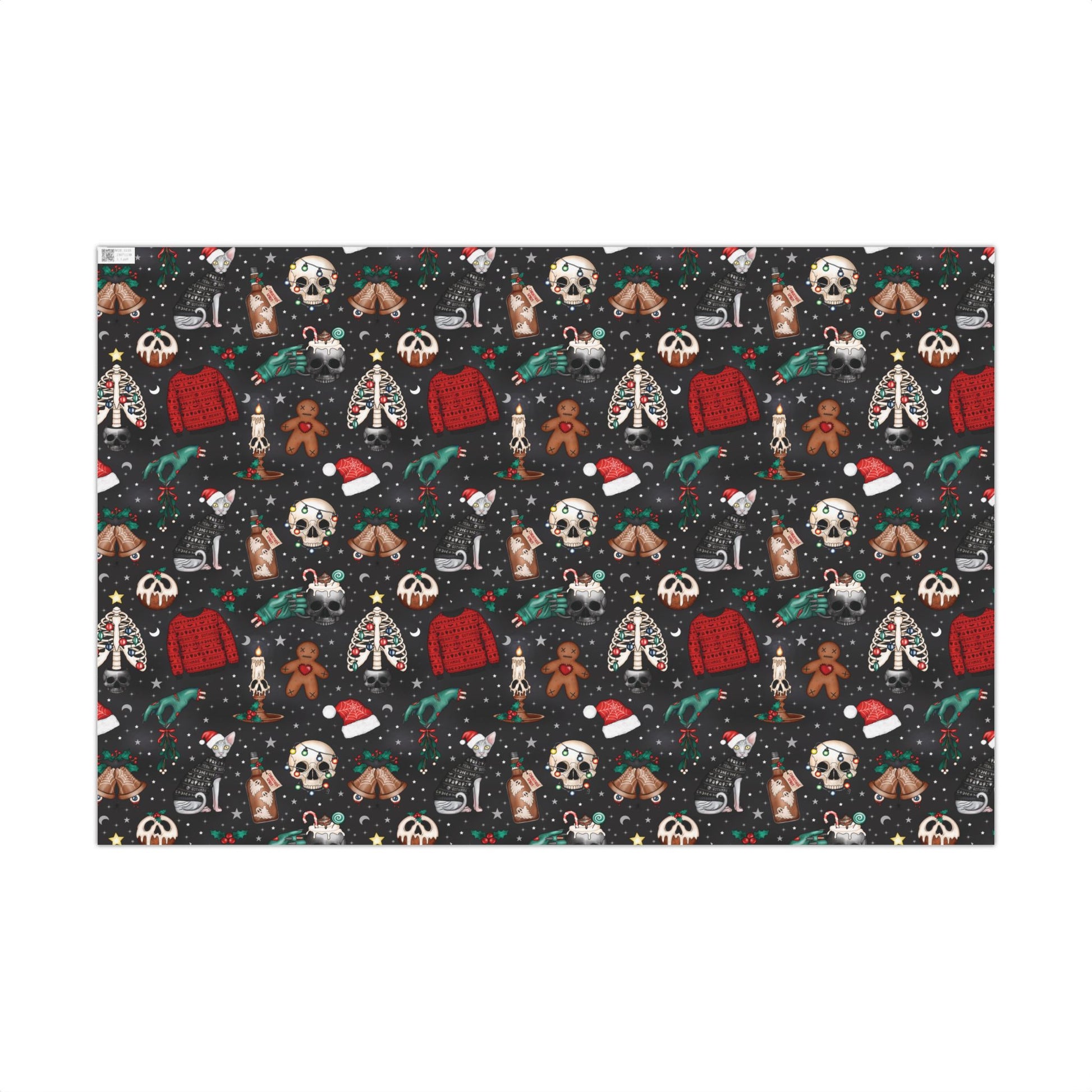 Our black goth Christmas or Creepmas holiday gift wrap transforms the act of gift-giving into a whimsical and opulent spectacle, with its cute, yet macabre design! Whether you're celebrating the holidays, a special occasion, or simply reveling in the art of presenting gifts, this extraordinary wrapping paper adds a touch of grandeur and kitsch to your festivities.
