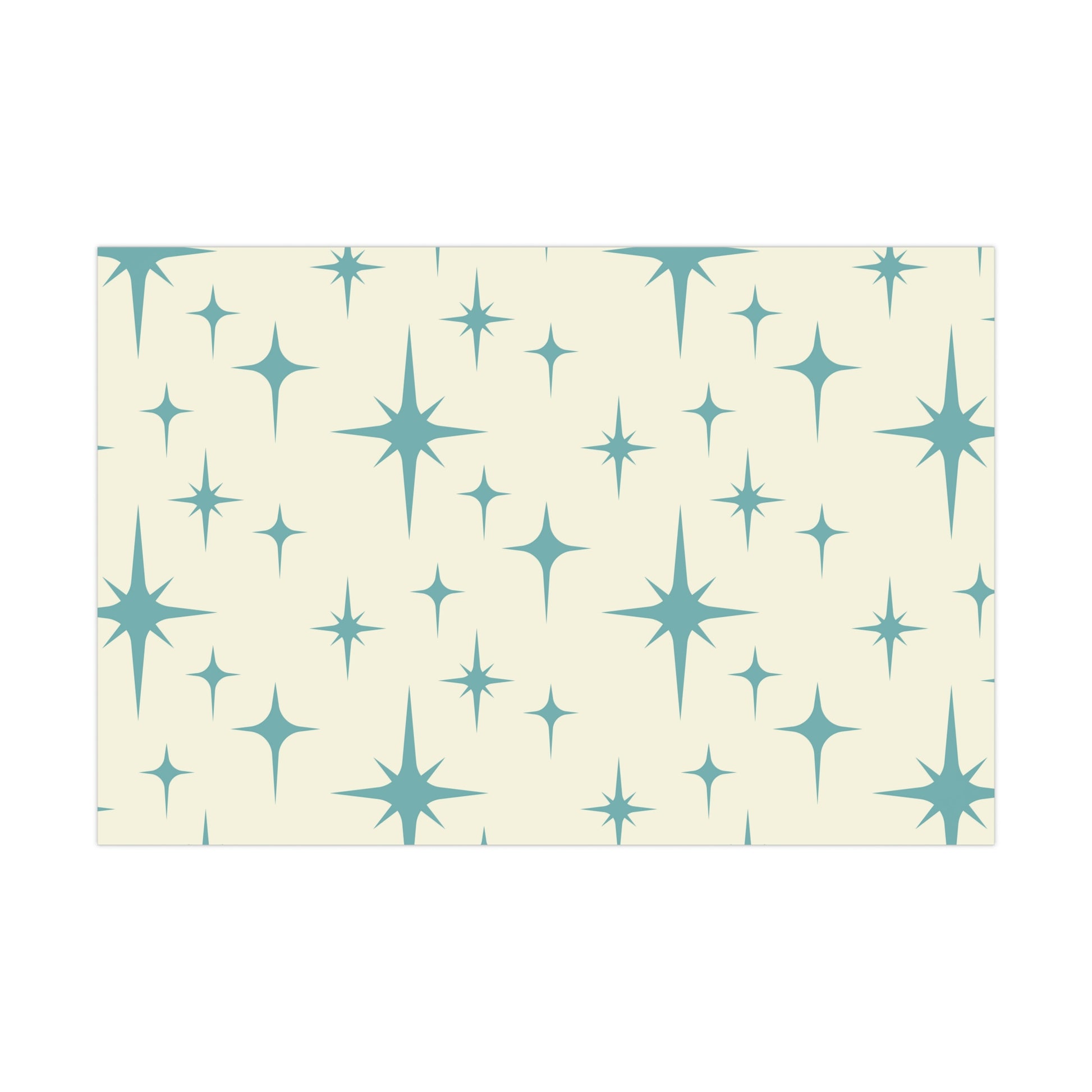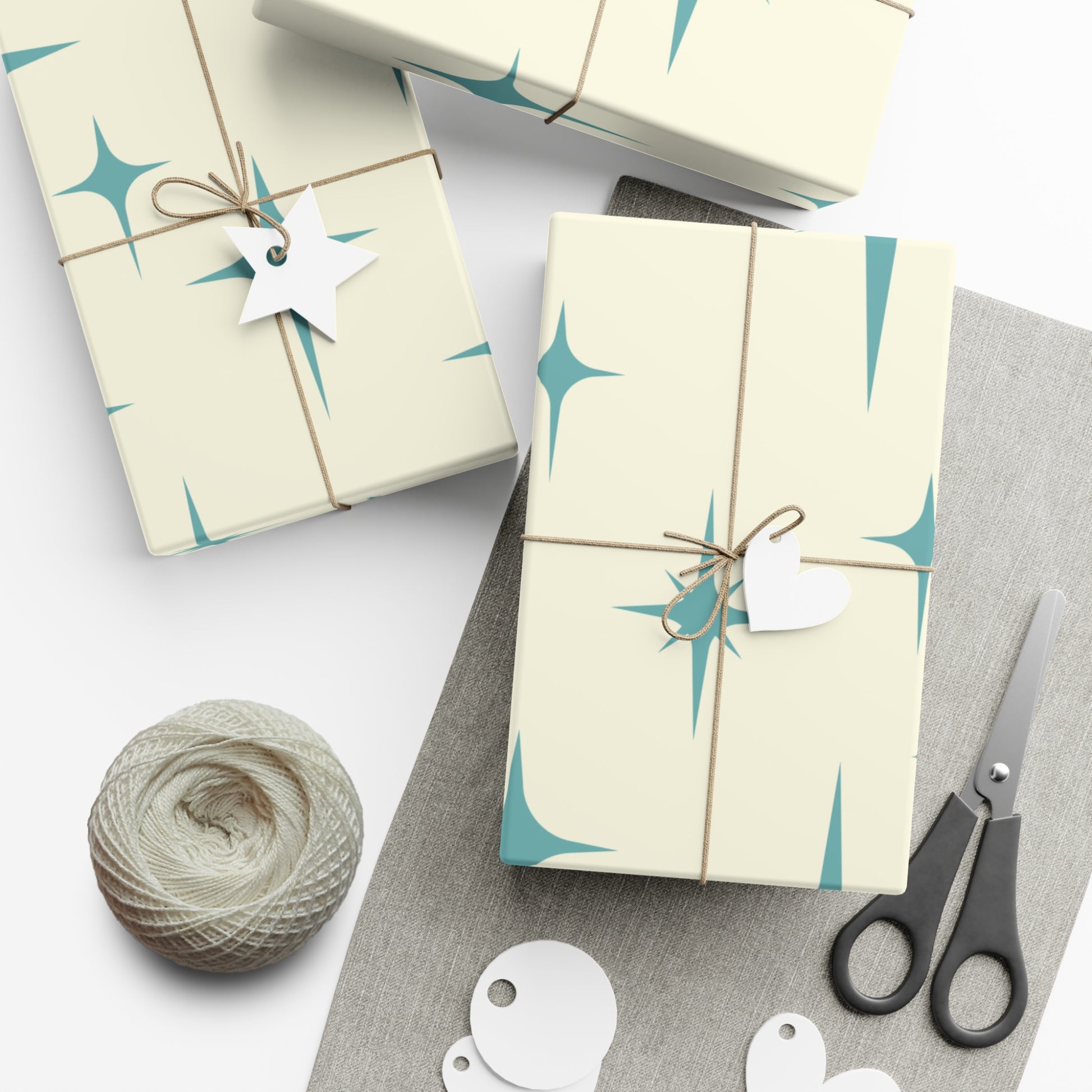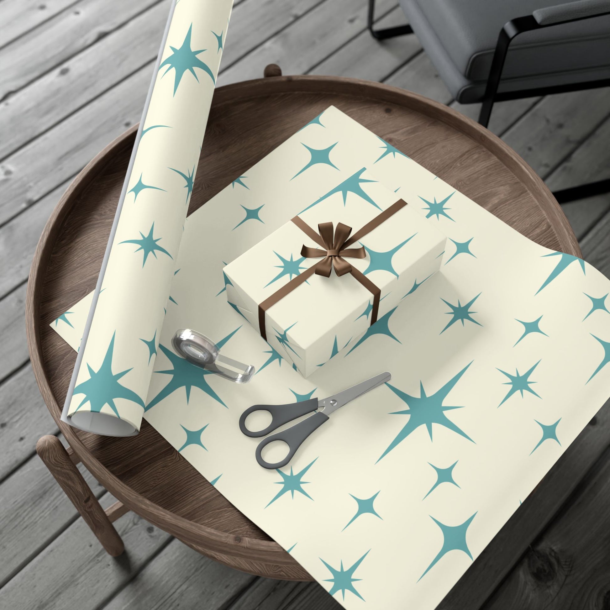This holiday season, make your gifts pop with personality, style, and a dash of nostalgia, with our retro 50's atomic starburst mid century mod Christmas wrapping paper. Our blue and off-white eco-friendly wrapping paper adds a retro space age touch to your presents that's sure to delight the mcm lovers and vintage enthusiasts in your life! *Please note this is a large starburst pattern.