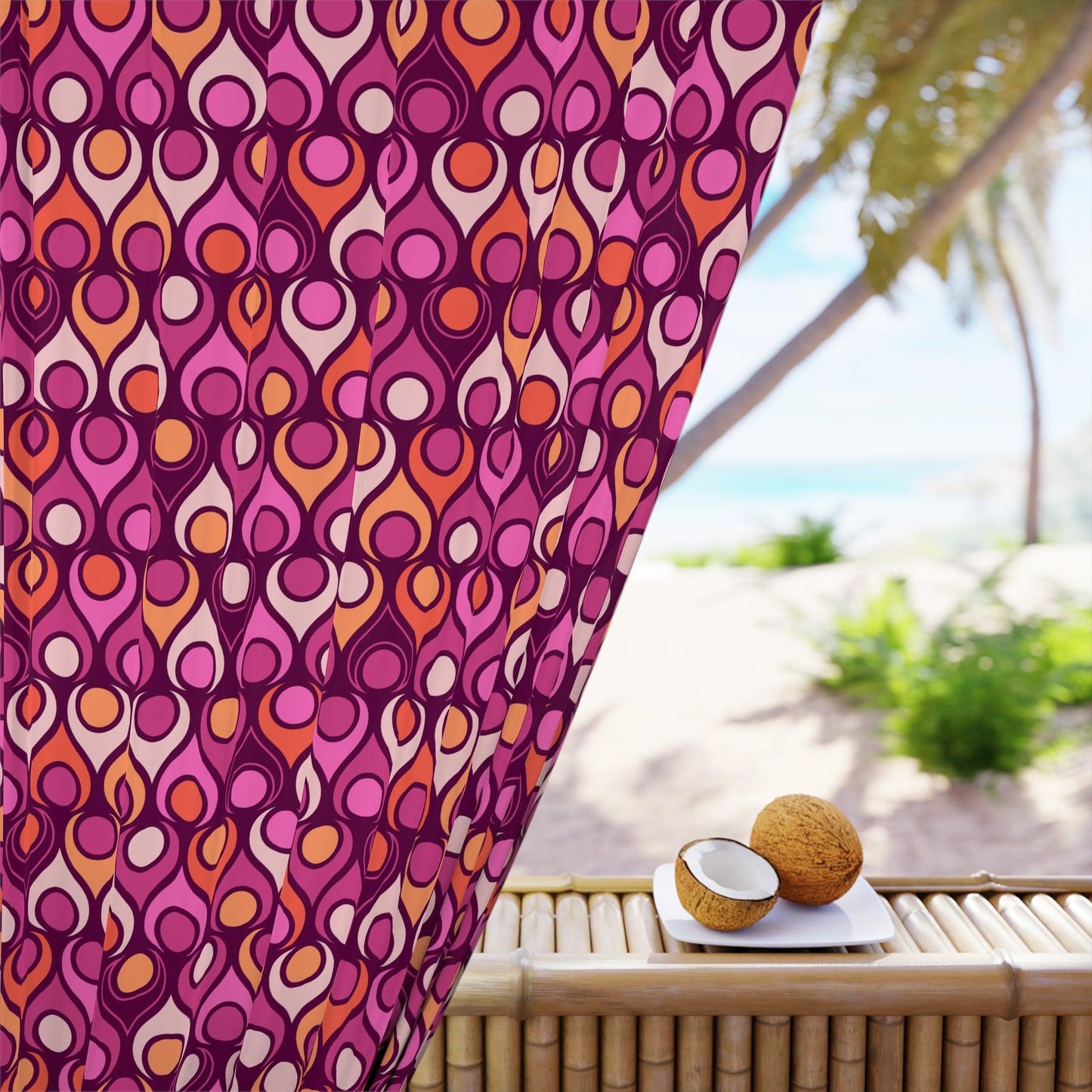 Mid Century Mod Groovy Magenta Purple Blackout Window Curtain