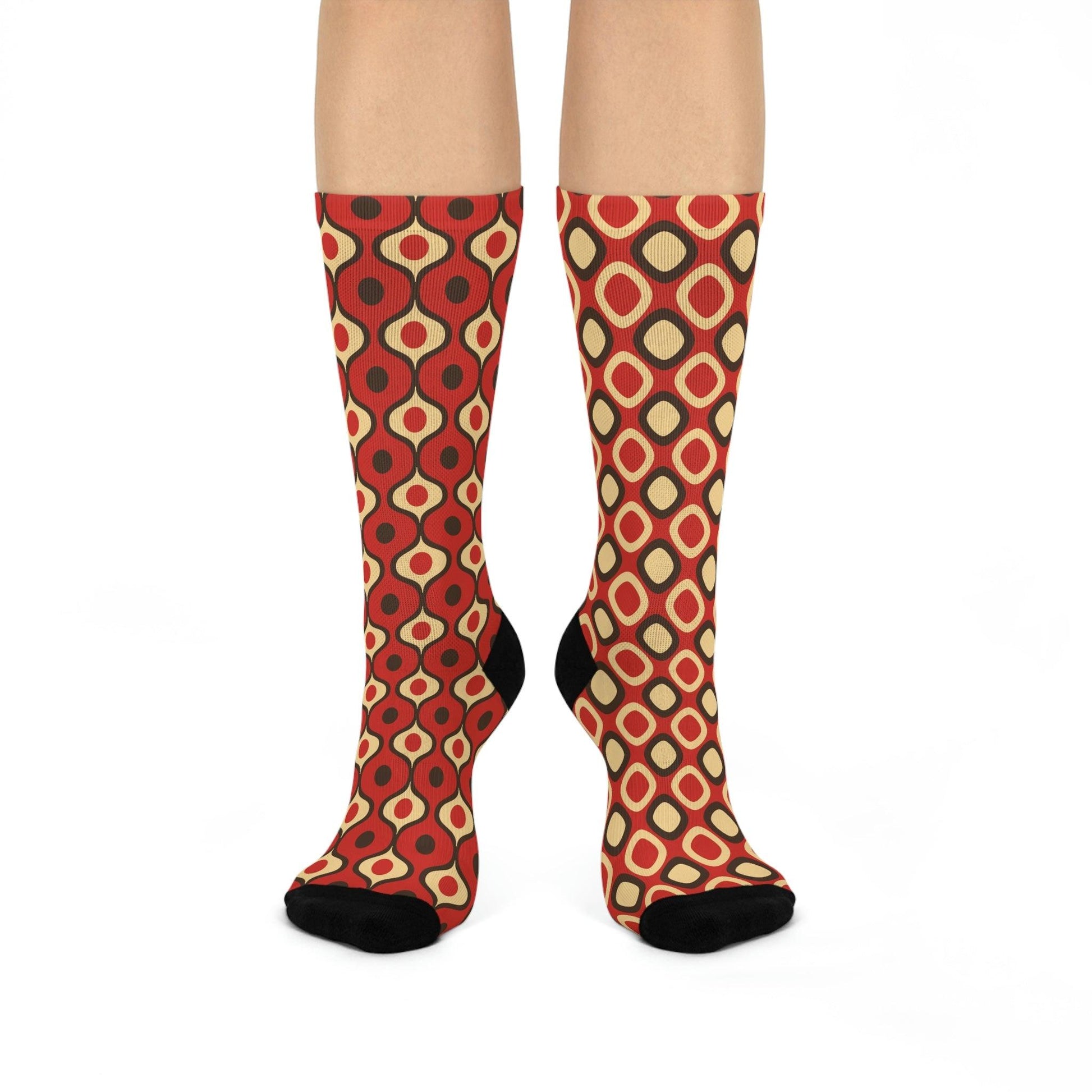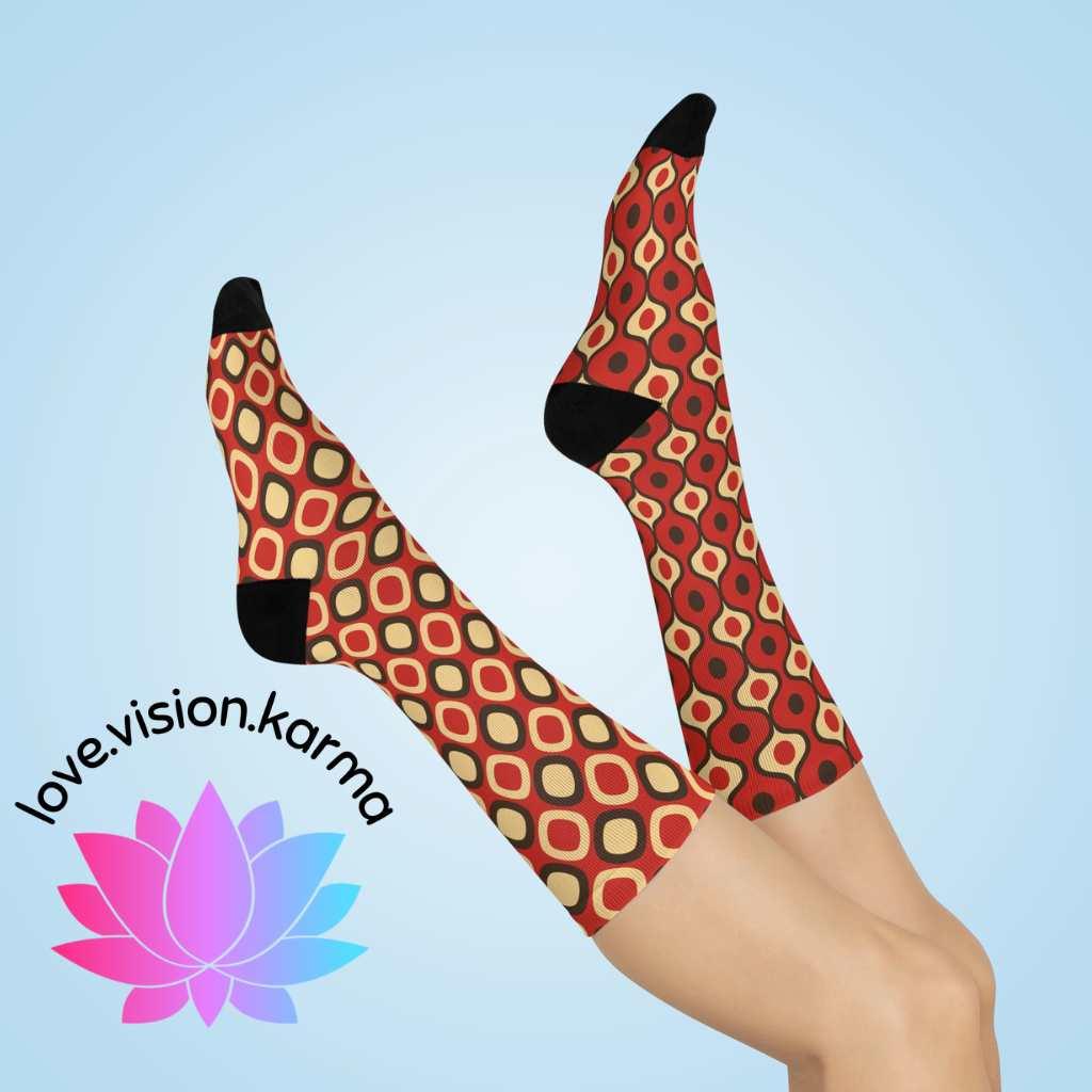 Mismatched Funky Retro Red Cushioned Unisex Crew Socks