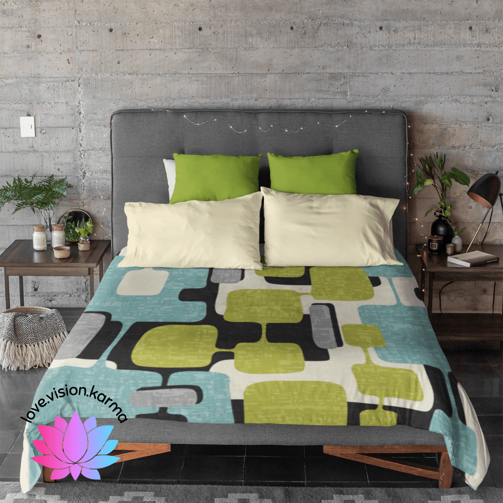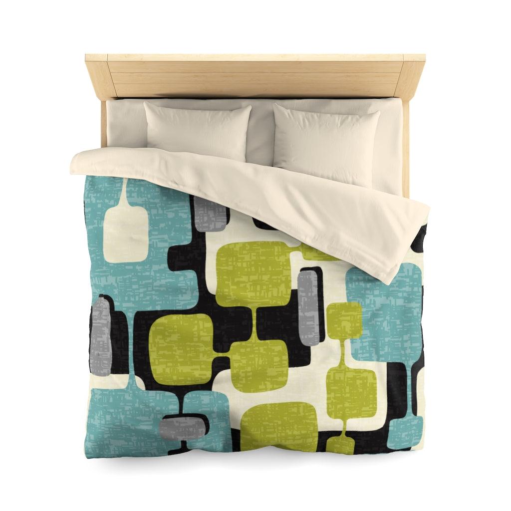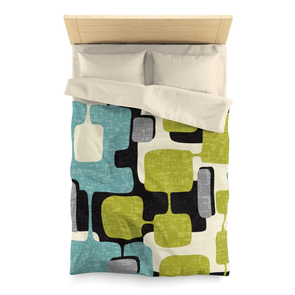 Mod Retro Abstract Green, Blue and Black Microfiber Duvet Cover