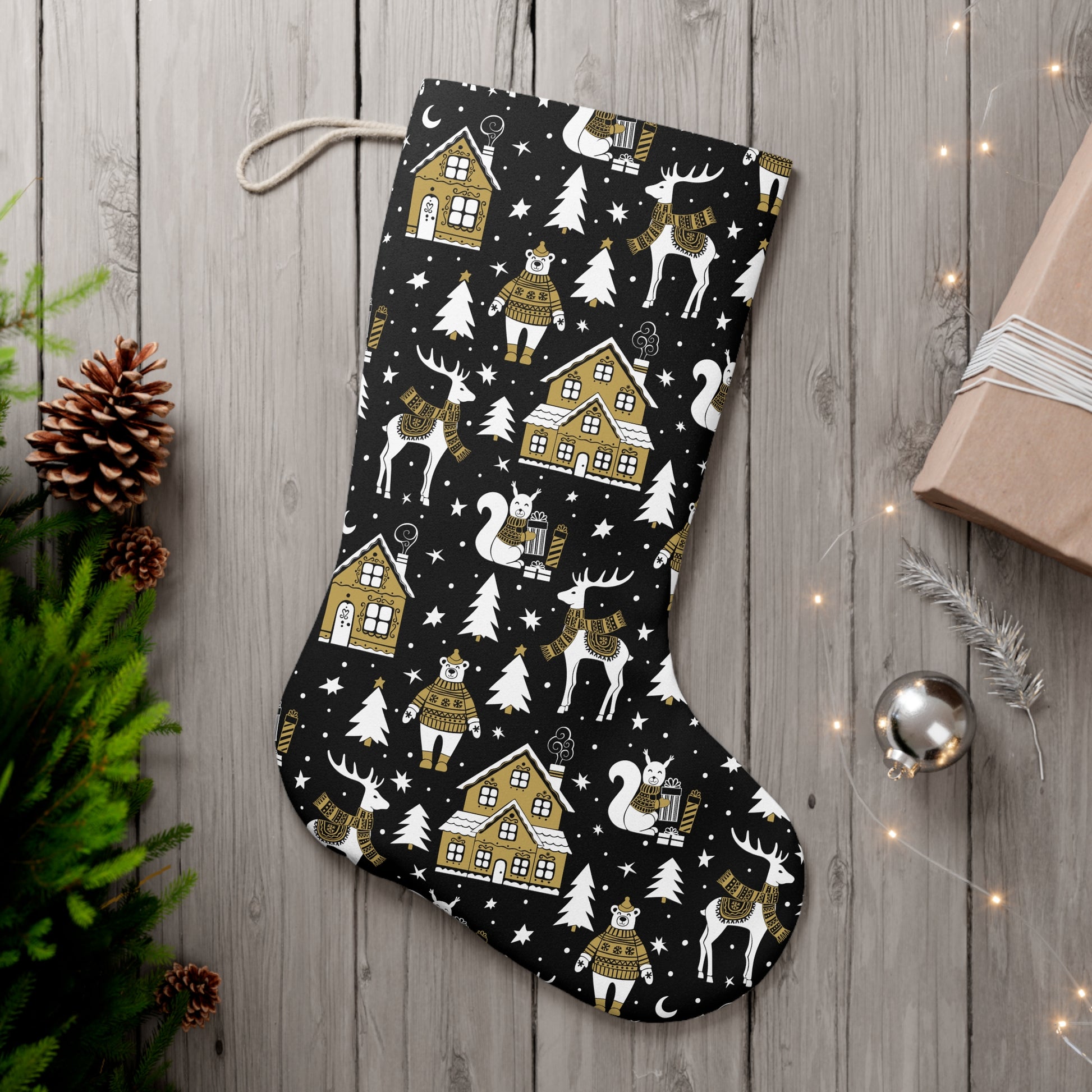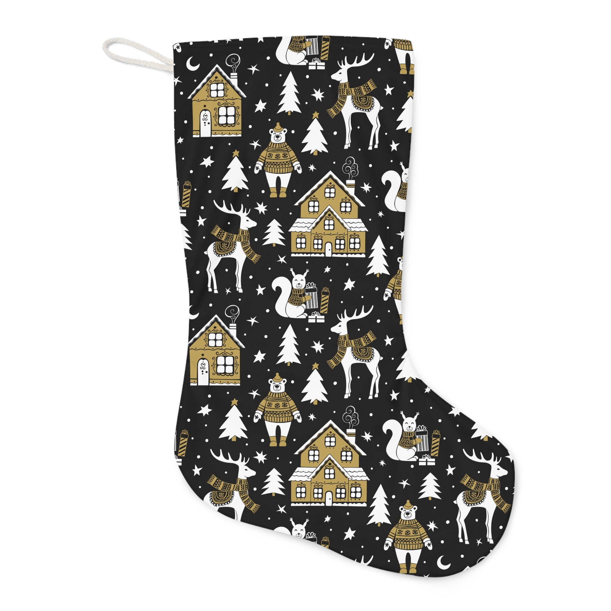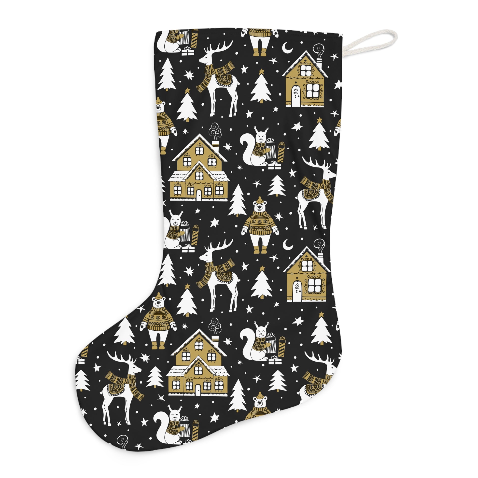 Nordic Winter Scene Black & White Scandi Christmas Stocking