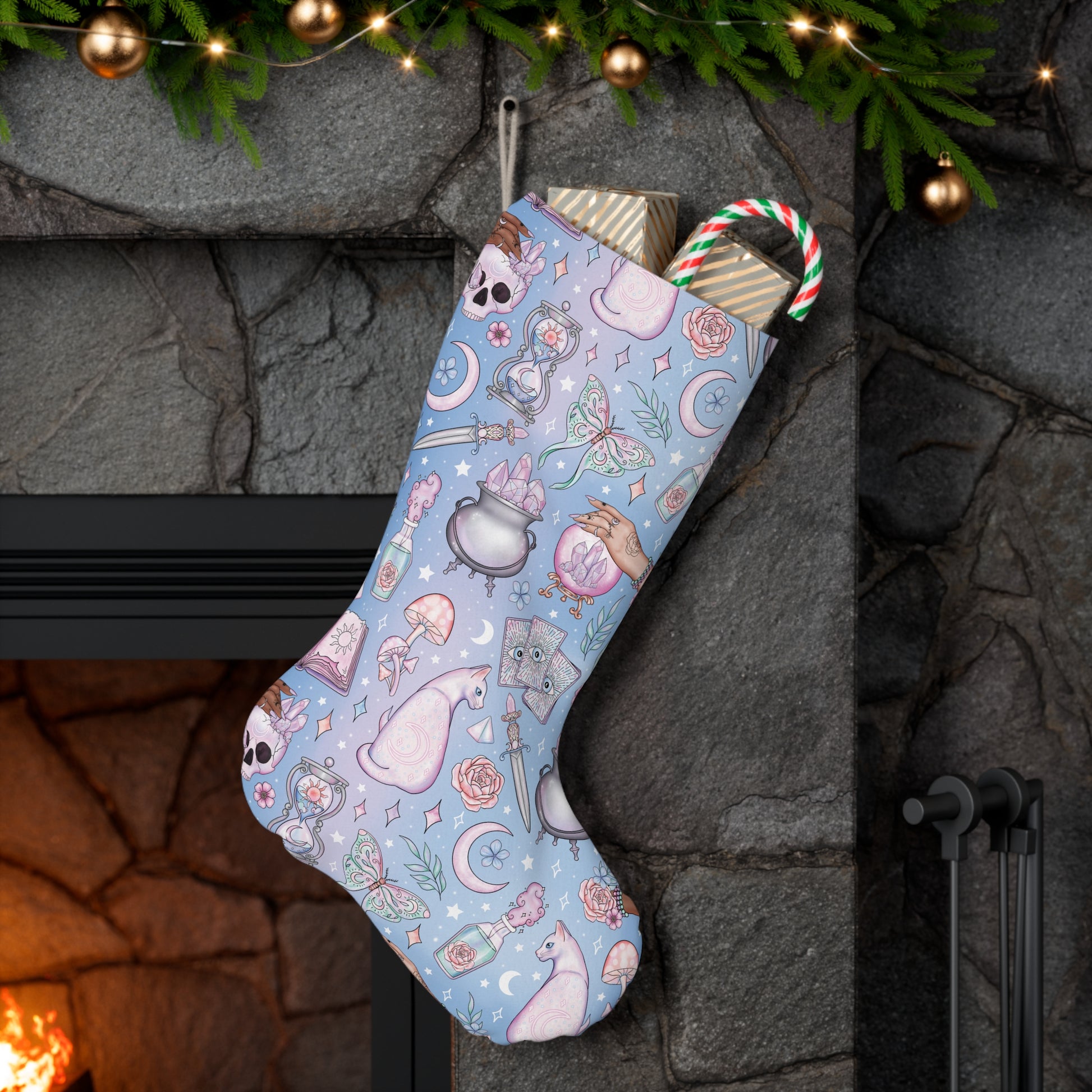 Pastel Goth Witchy Kawaii Blue Soft Goth Christmas Holiday Stocking
