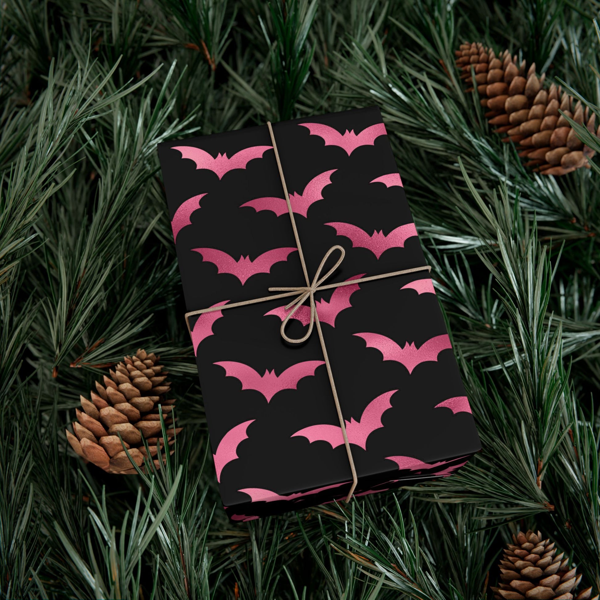 Pink Bats Halloween, Goth Christmas & Creepmas Glam Goth Black Eco-Friendly Gift Wrap Paper