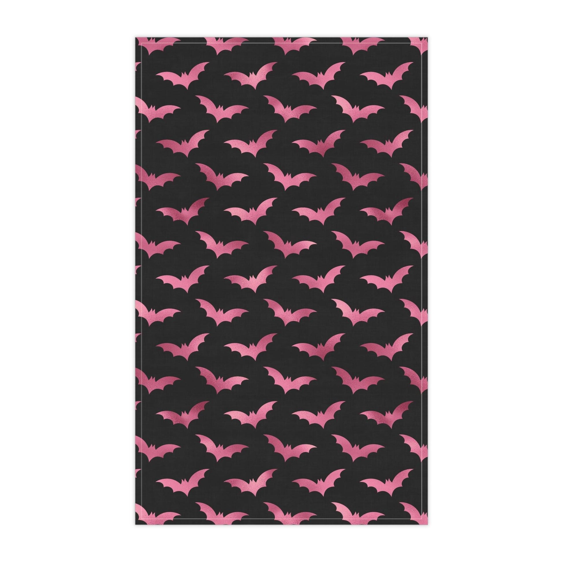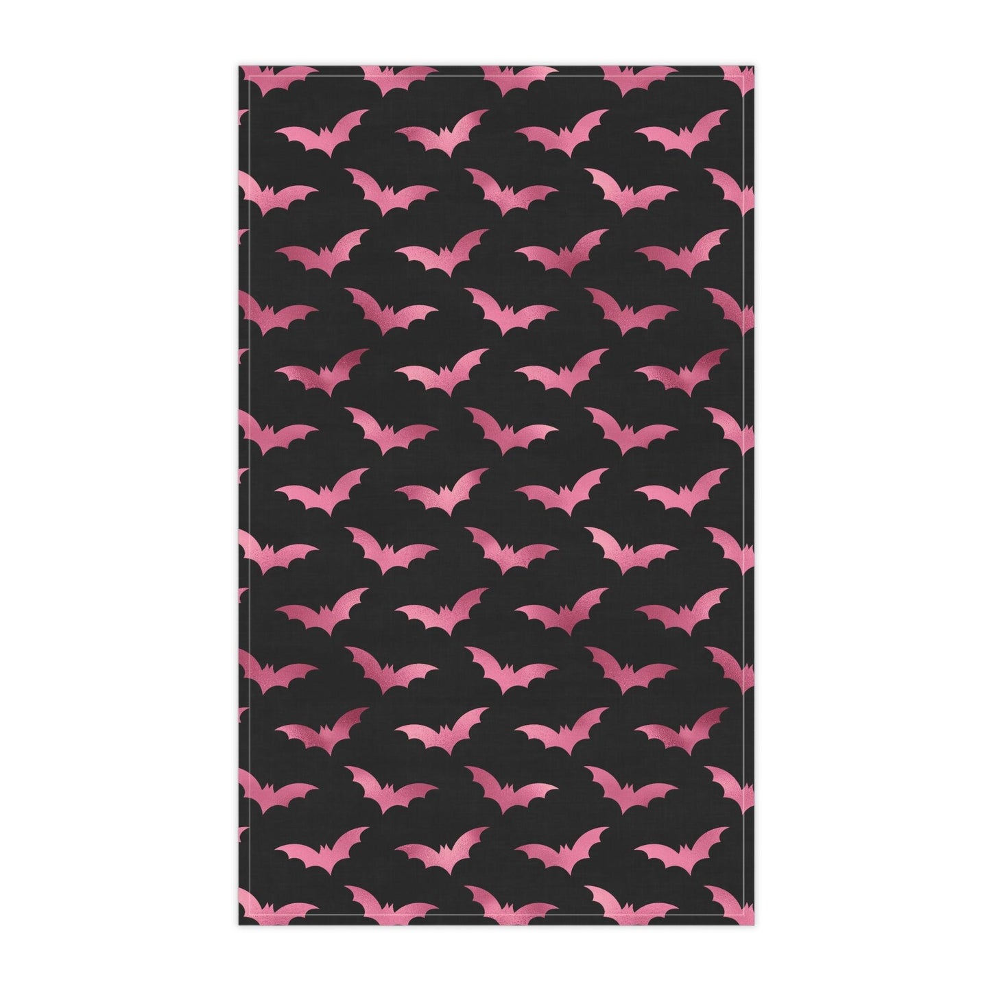 Pink Bats Spooky Halloween Glam Goth Black Kitchen Tea Towel