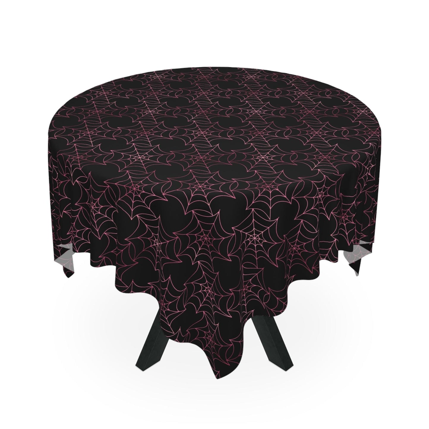 Our pink spiderwebs tablecloth is the perfect blend of spooky elegance and glamour for your Halloween soirées or those who adore the chic gothic or witchy aesthetic year-round!