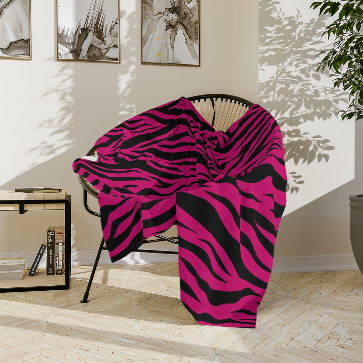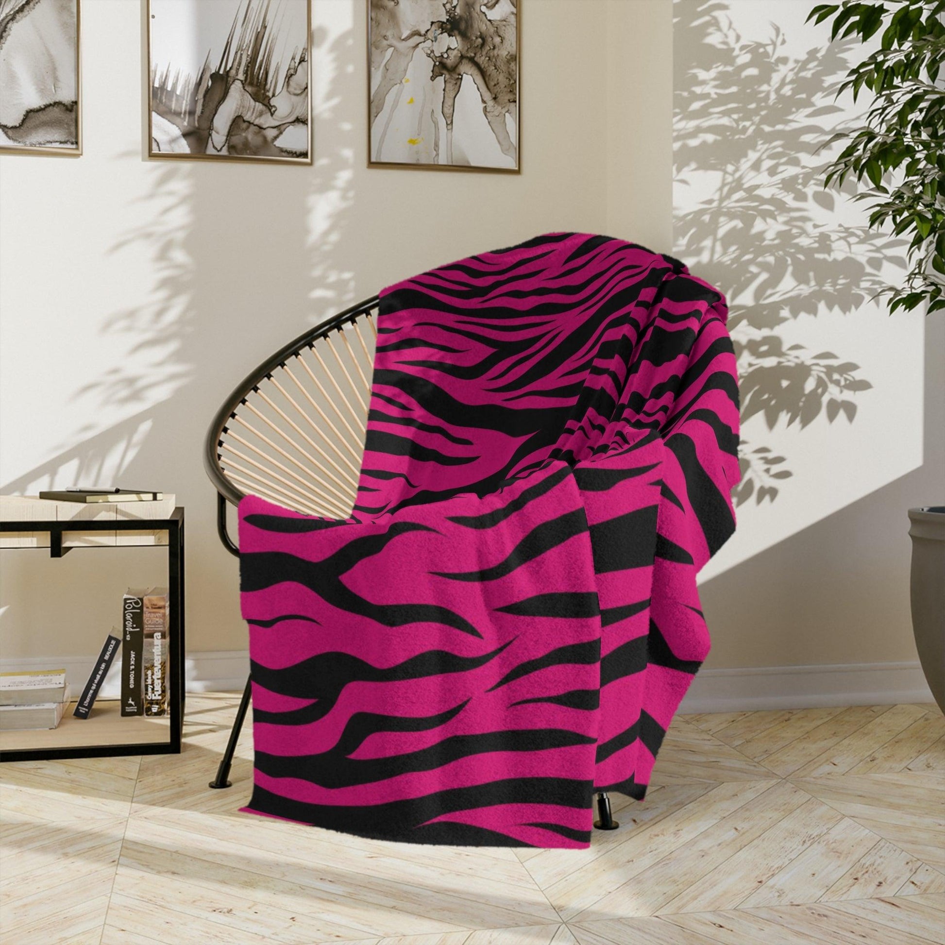 This soft and equally fierce, pink tiger stripe animal print blanket is perfect to curl up with, when you are ready to unwind from your day! It adds fresh color and style to your space, draped stylishly over a chair, even when not in use!