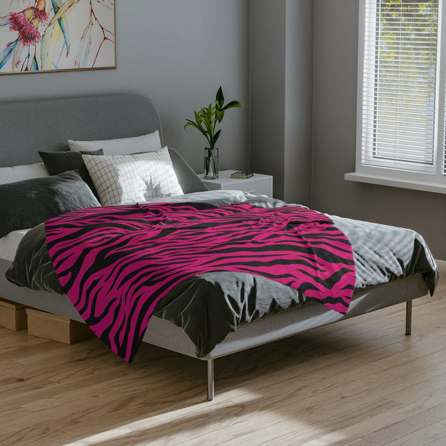 Pink Tiger Stripe Animal Print Velveteen Microfiber Blanket