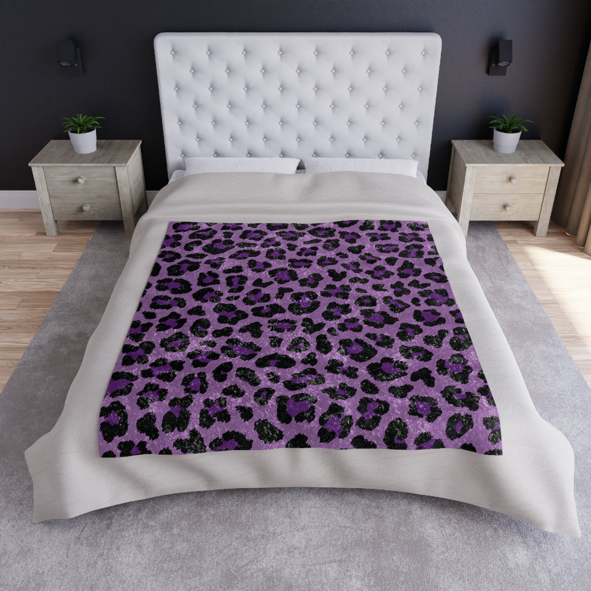 Our purple leopard cheetah spots animal print crushed velvet blanket will be your new cozy go-to, when you're getting snuggly during your downtime. Great for a cuddle-sesh AND looks beautiful tossed carelessly into a heap (thanks to the texture of crushed velvet and its shiny finish!)