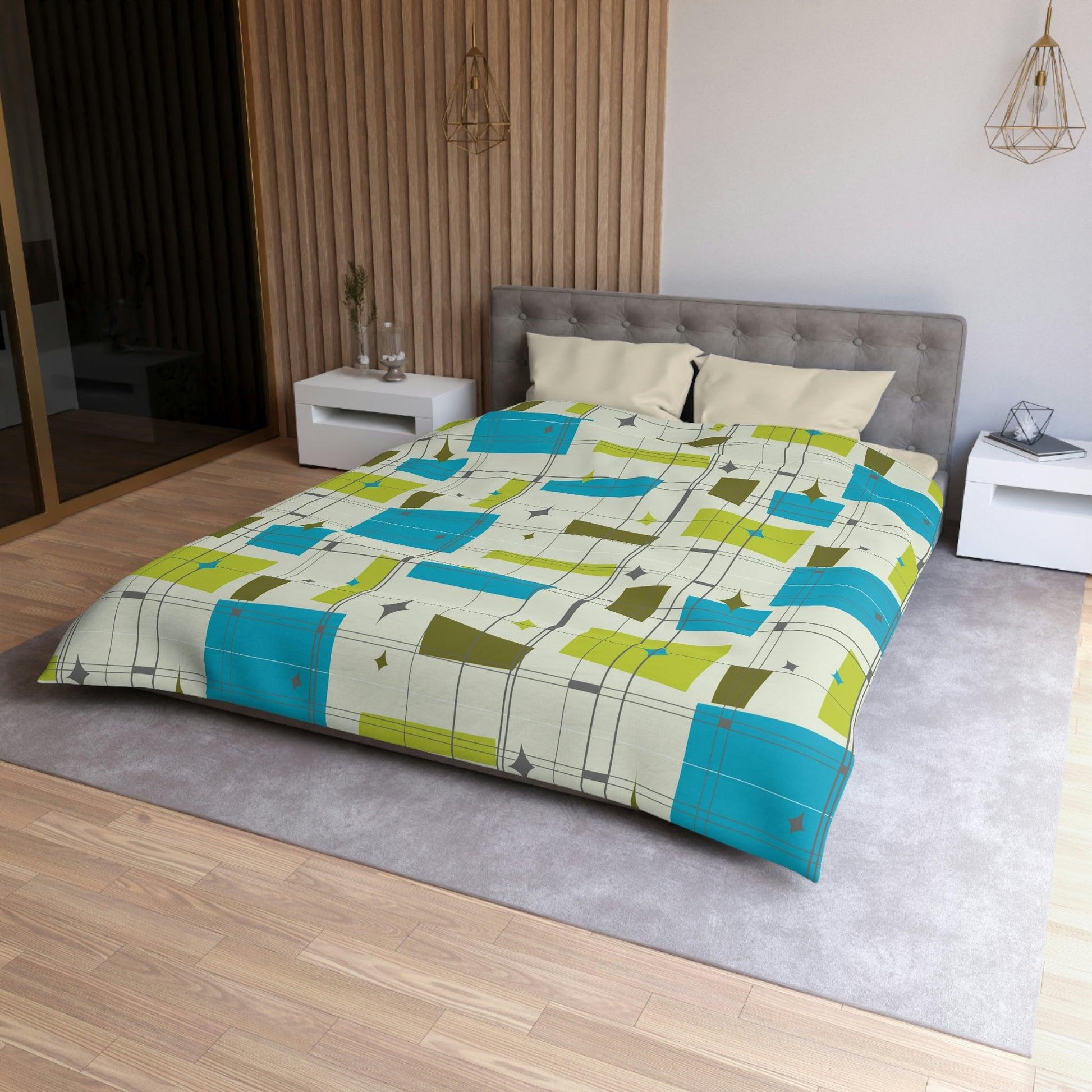 Retro 1950's Abstract Blue & Green Mid Century Modern Duvet Cover