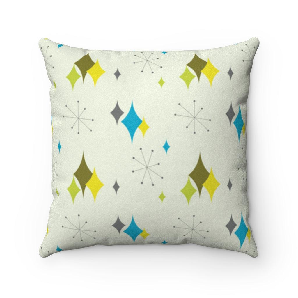 Retro 1950's Atomic Burst and Diamond Mid Century Mod Blue & Green Throw Pillow