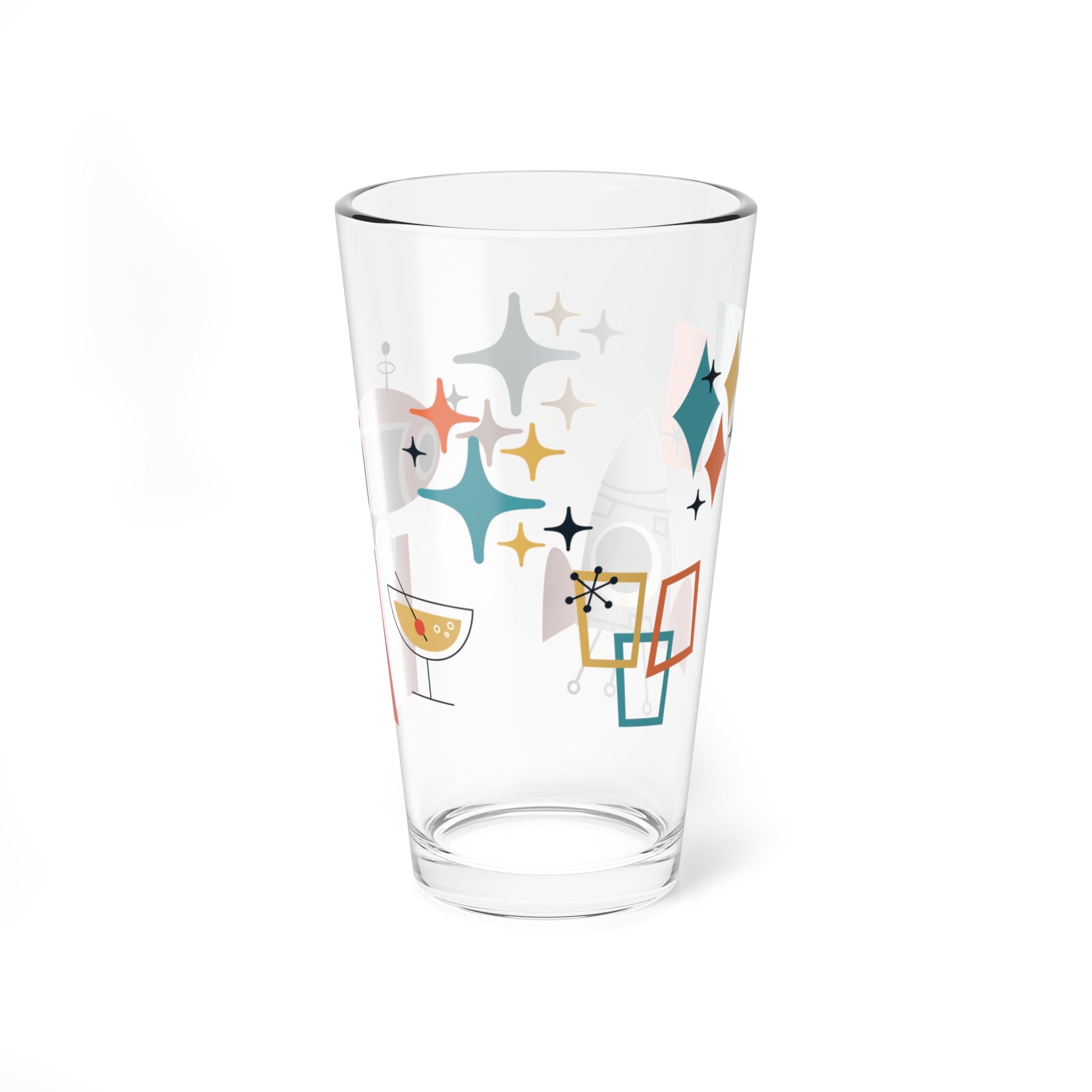 Retro 50s Atomic Age Space Man Mid Century Mod Multicolor Pint Glass