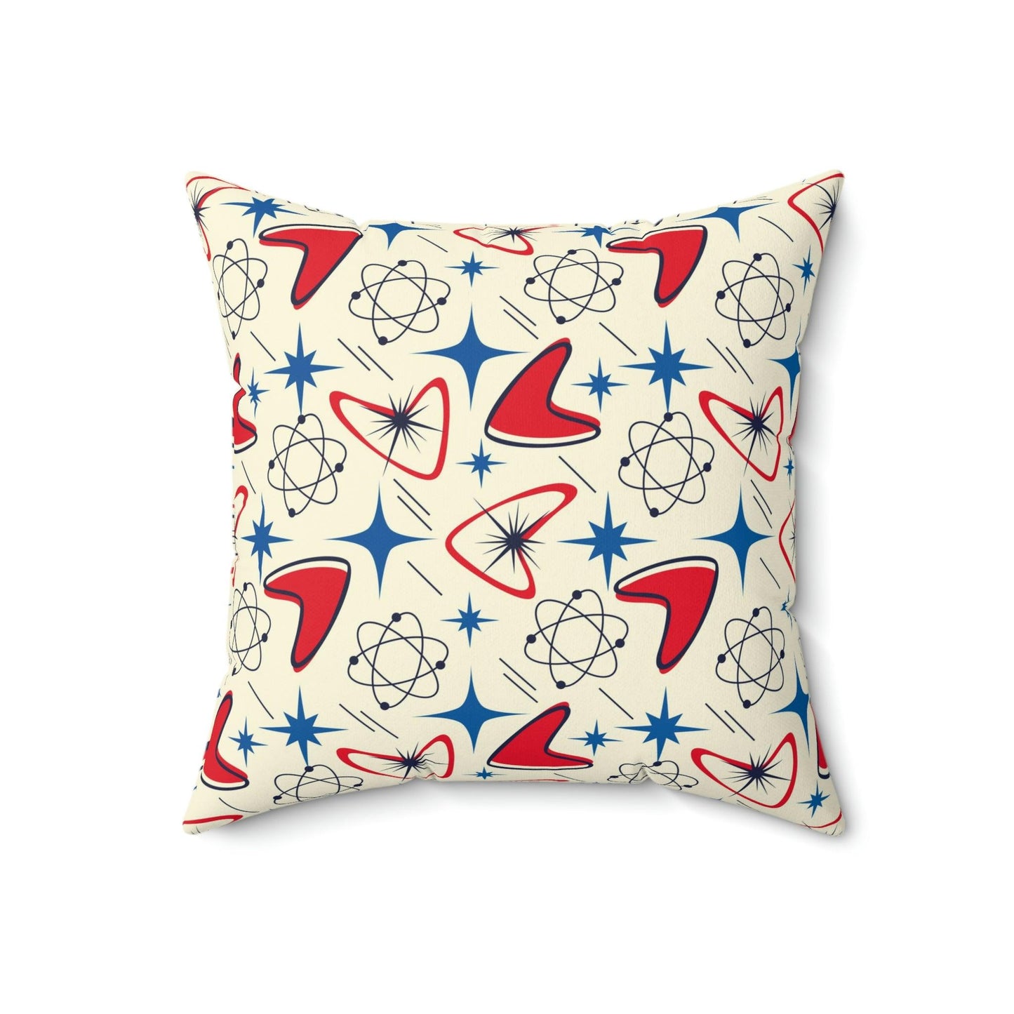 Retro 50s Atomic Boomerangs Space Age Starburst Red, Blue and Cream MCM Throw Pillow