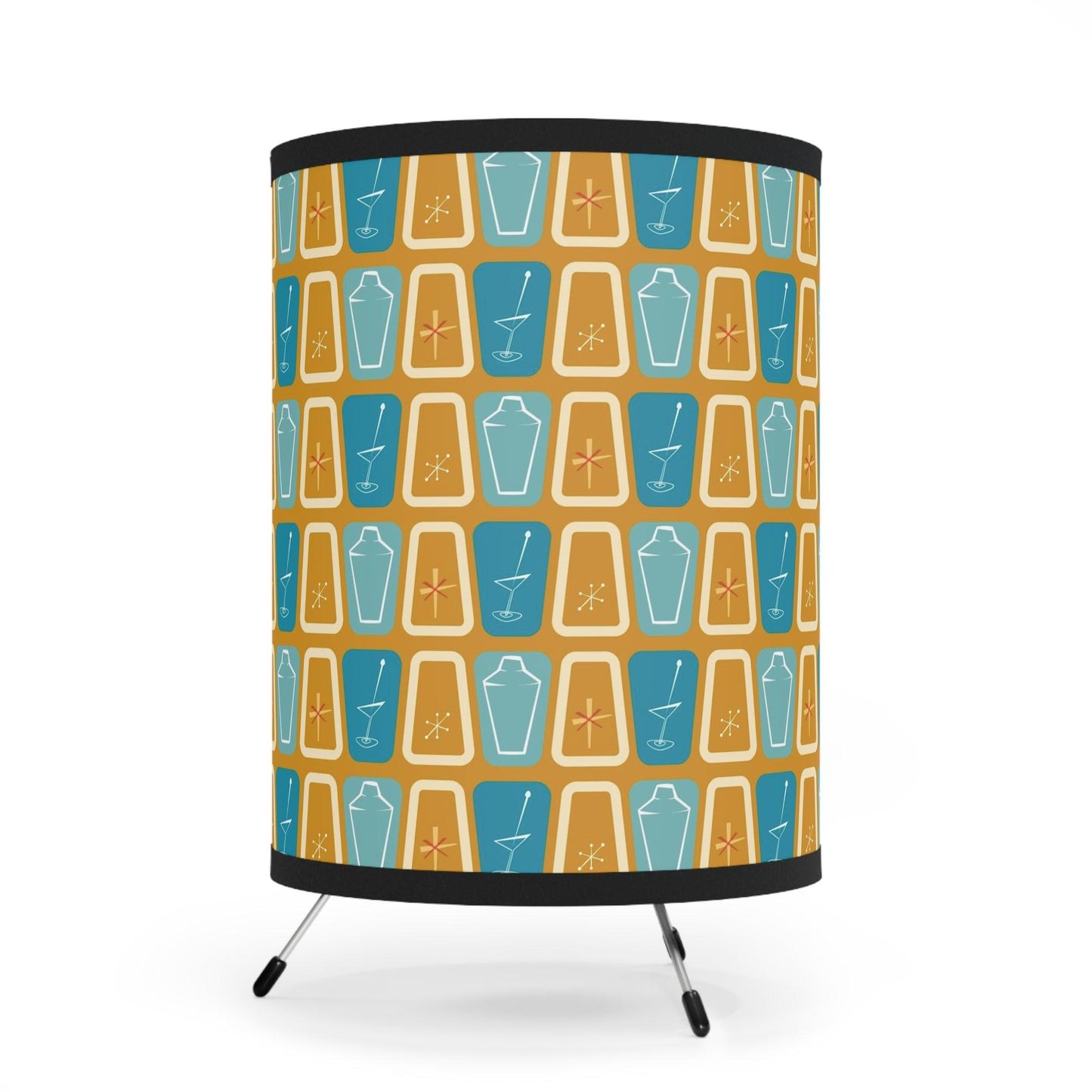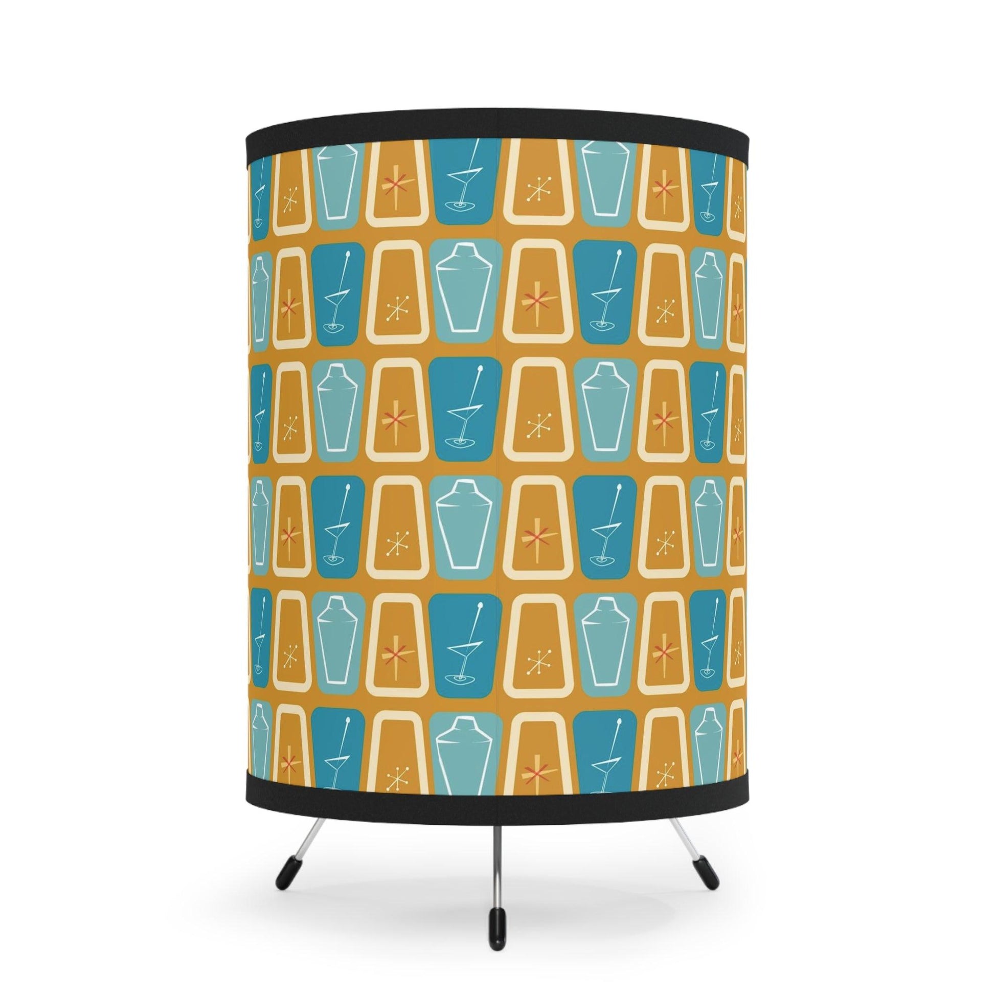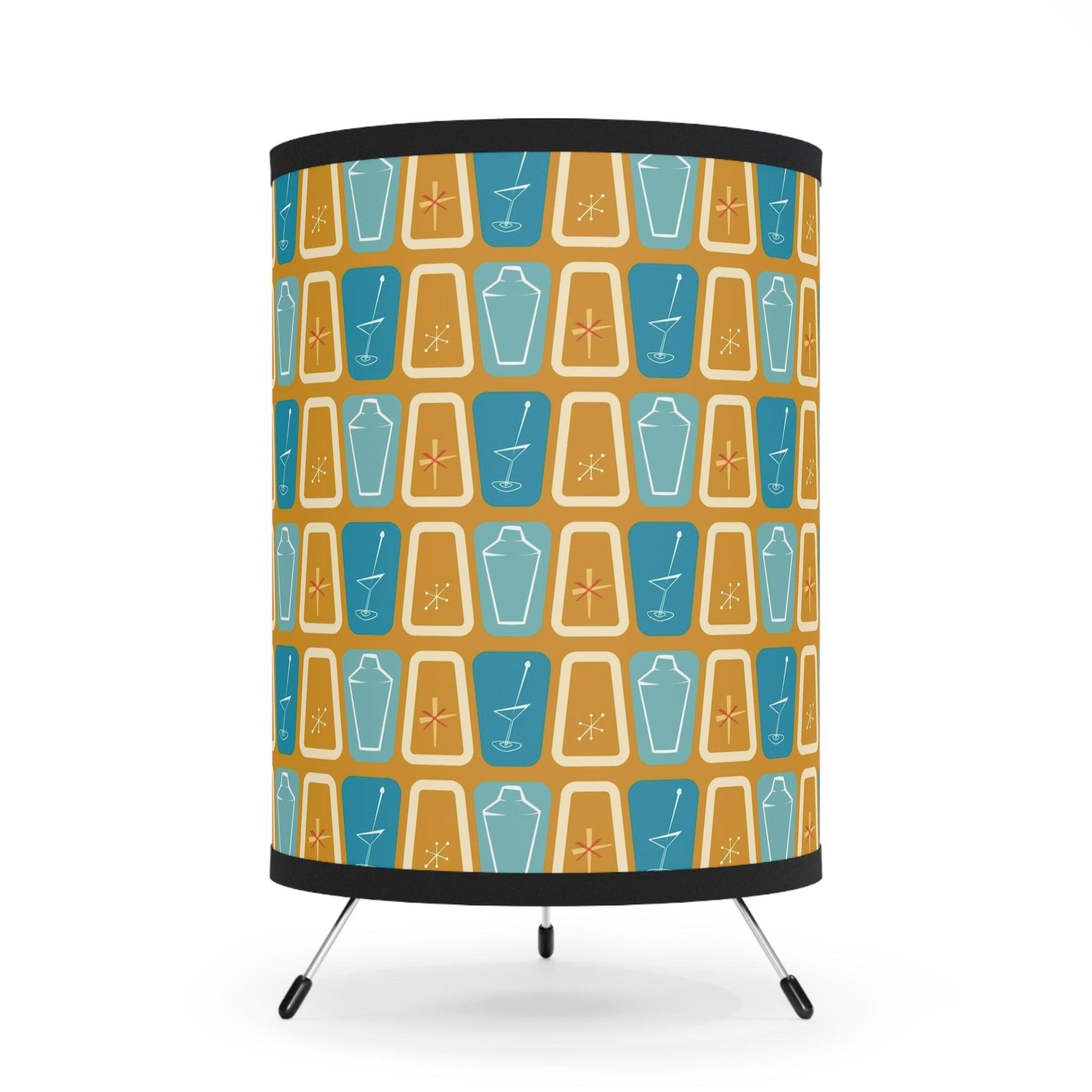 This retro style lamp provides soft lighting and is big on 1950's mid century style! Enjoy decorating your space with fun retro patterns, featuring atomic bursts, martini glasses and cocktail shakers, in a fresh new way.