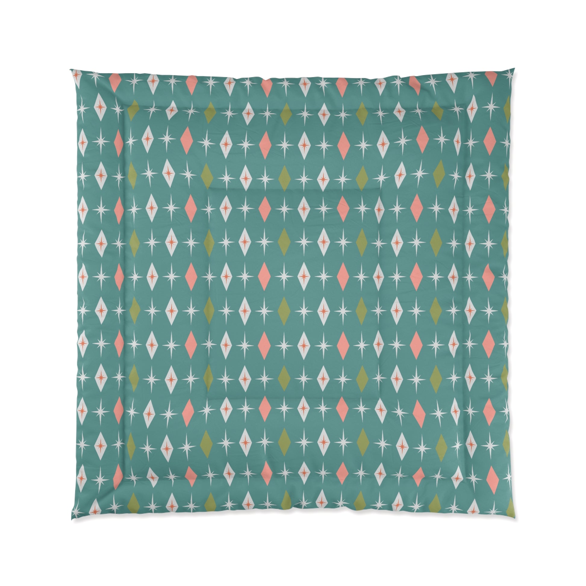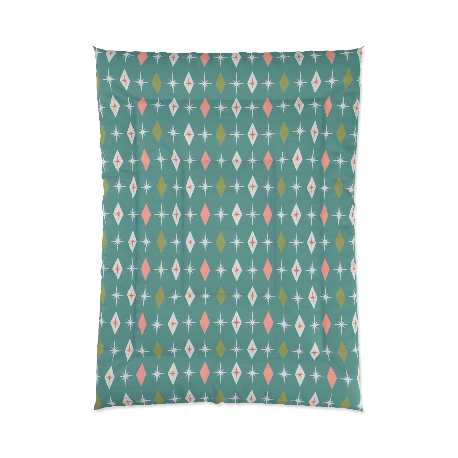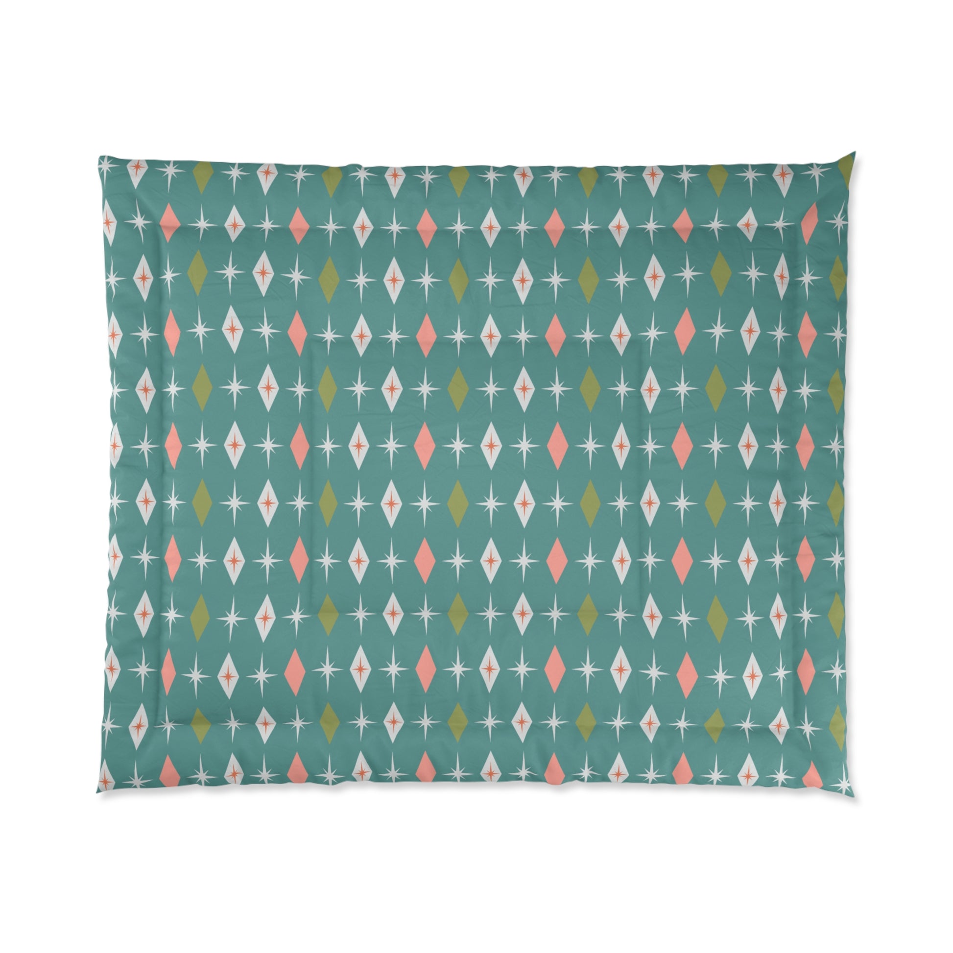 Retro 50s Atomic Burst & Diamond Mid Century Mod Teal, Pink & Green Comforter