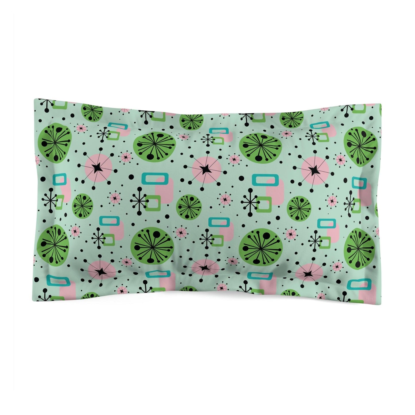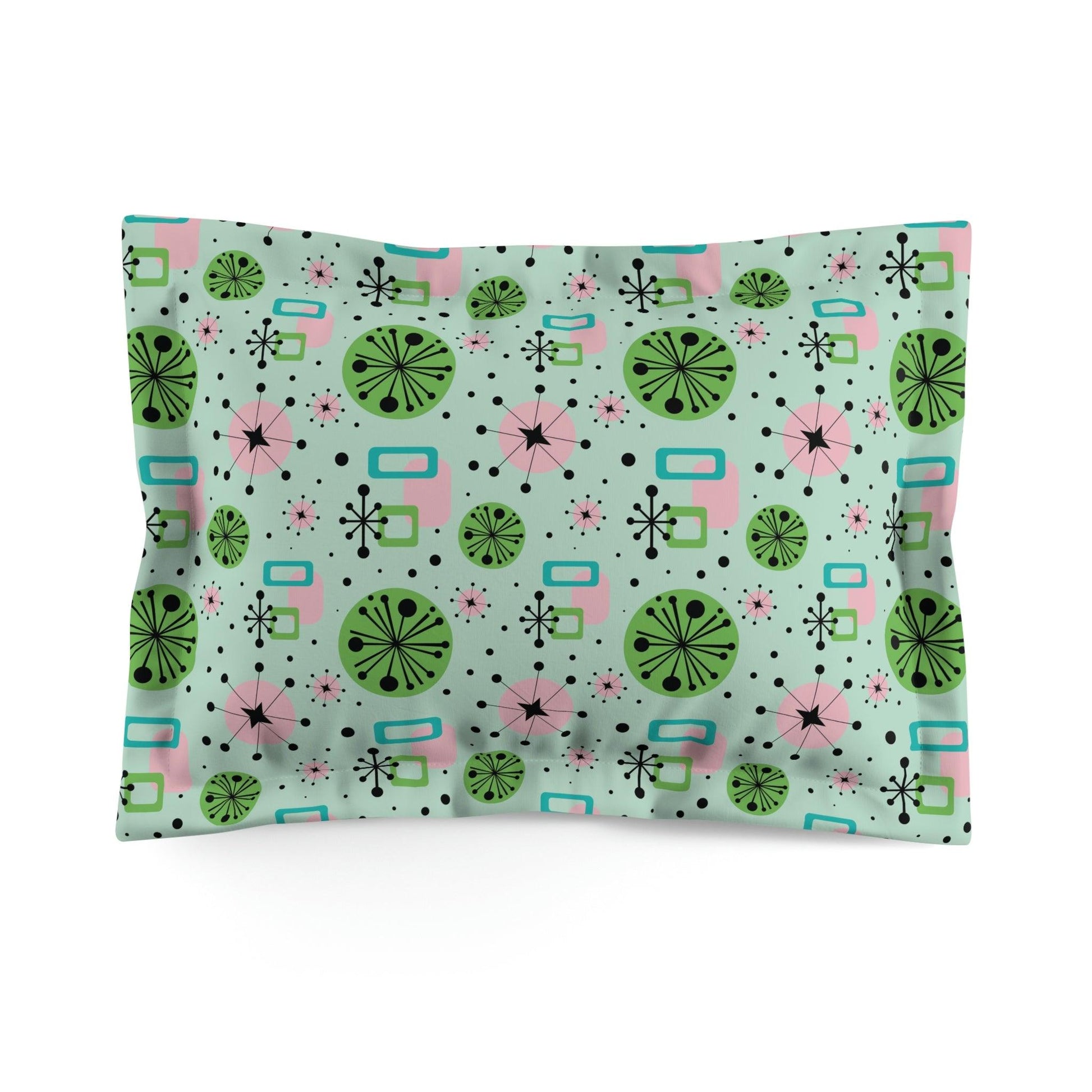 Retro 50's Atomic Burst Mid Century Mod Green, Pink & Blue Pillow Sham