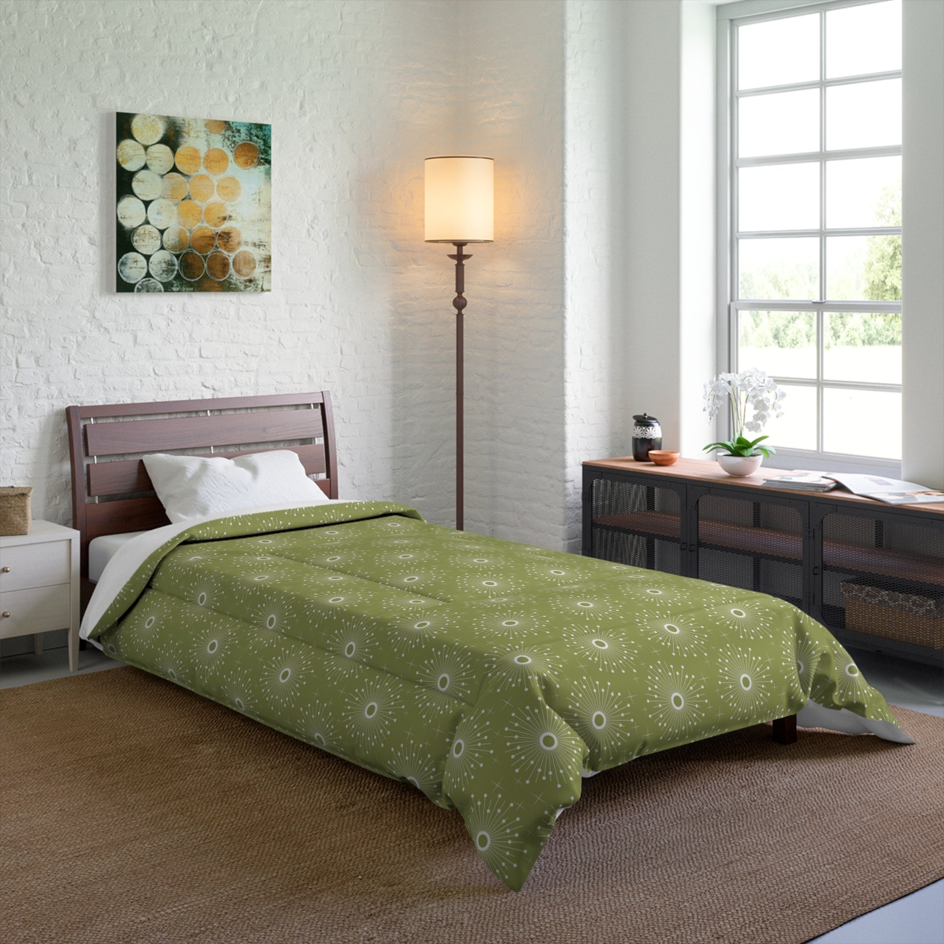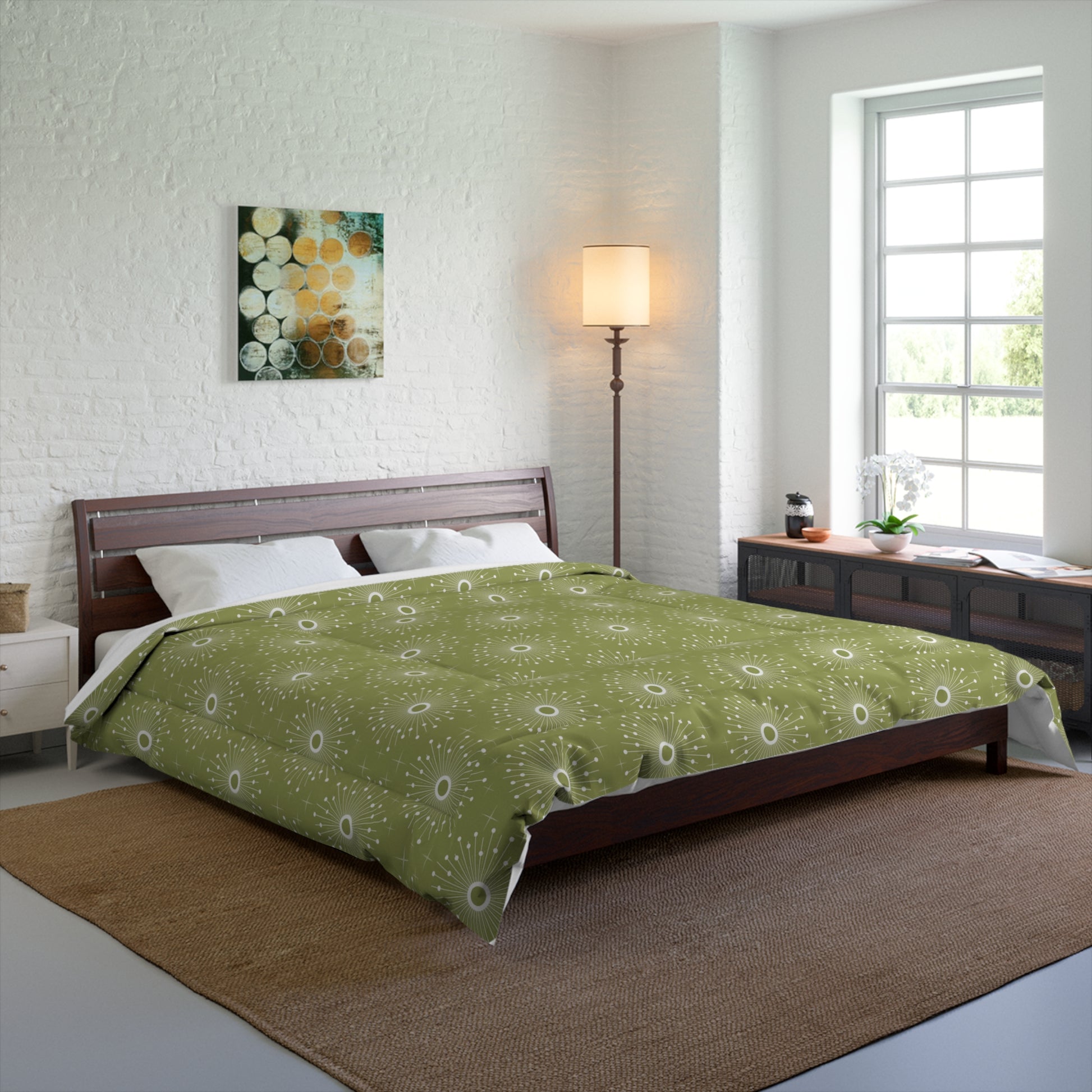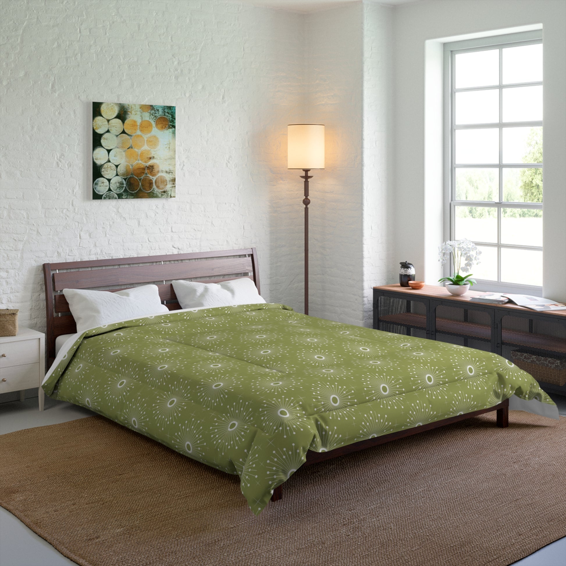 Retro 50's Atomic Bursts Mid Century Modern Green Comforter