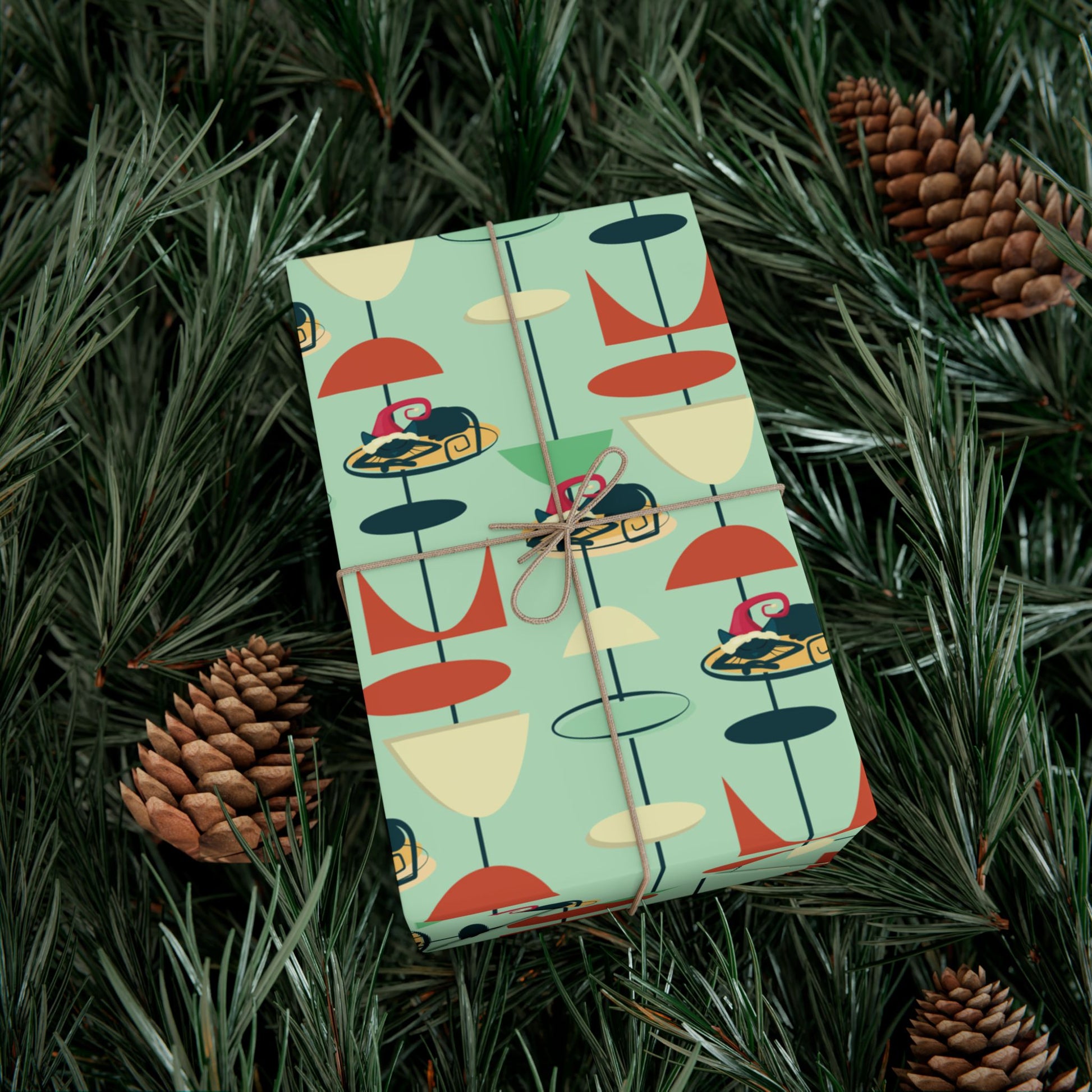 Retro 50's Atomic Cat Christmas Kitschy Mid Century Modern Green Eco-Friendly Wrapping Paper