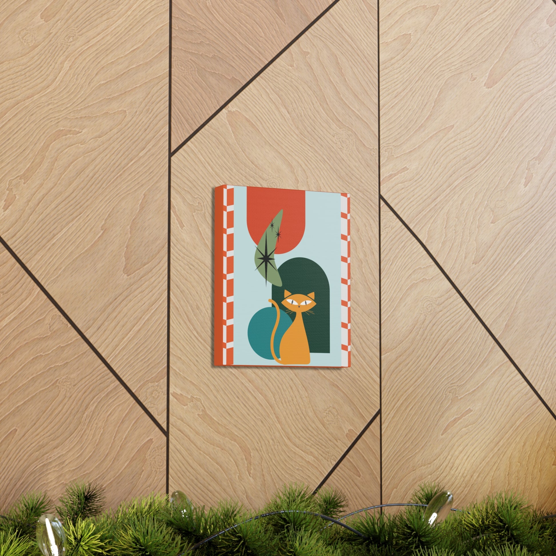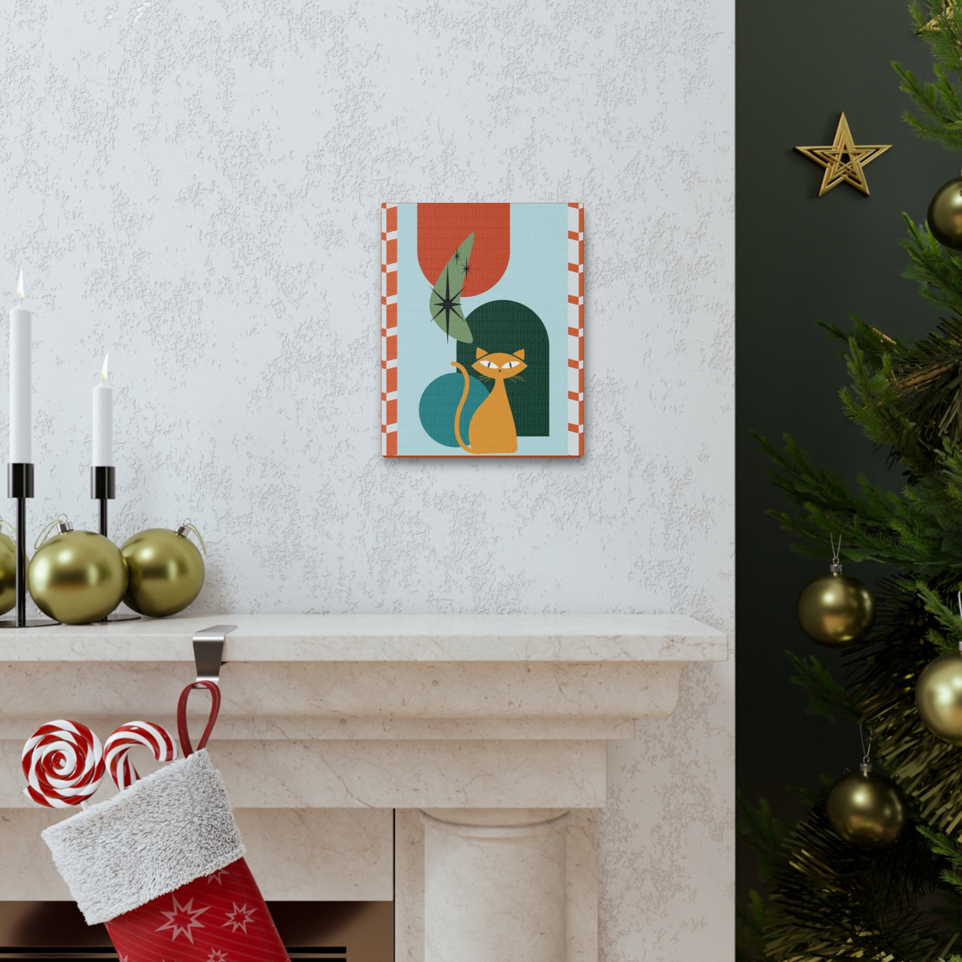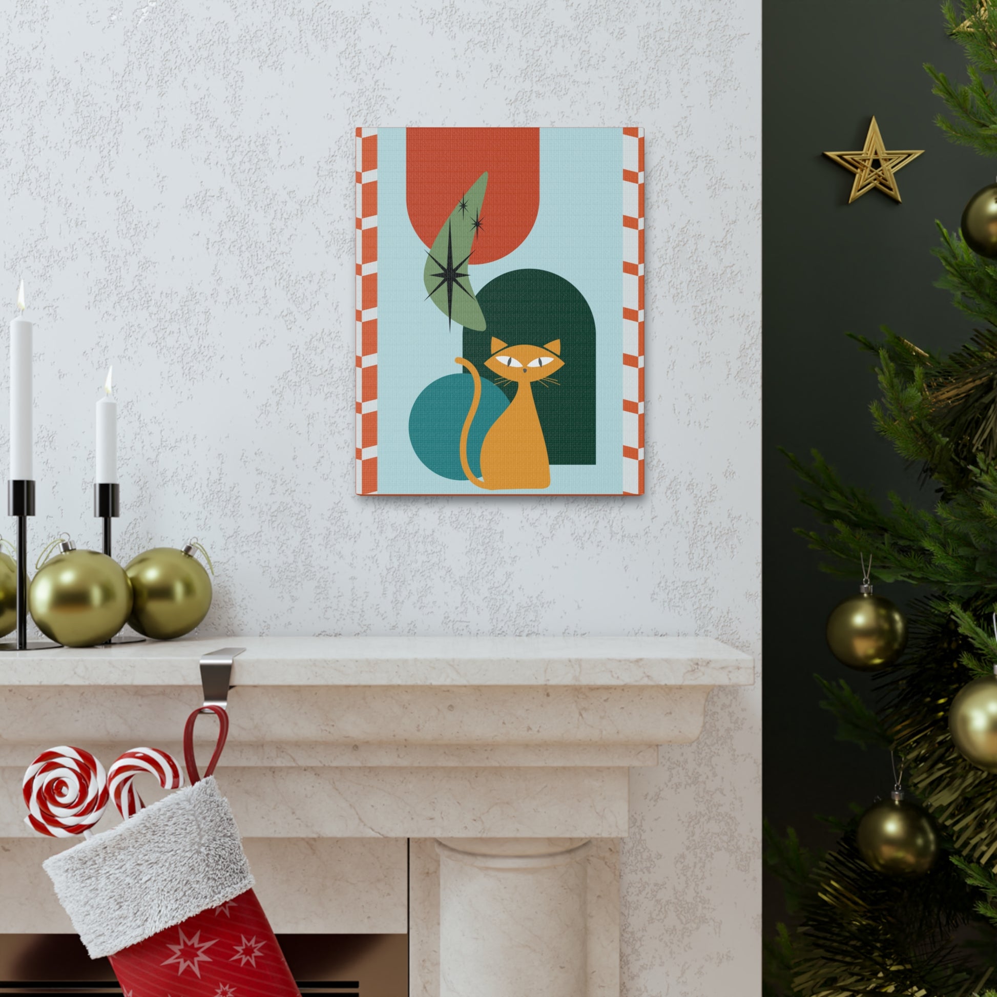 Retro 50's Atomic Cat Mid Century Mod Multicolor Canvas Gallery Wrap