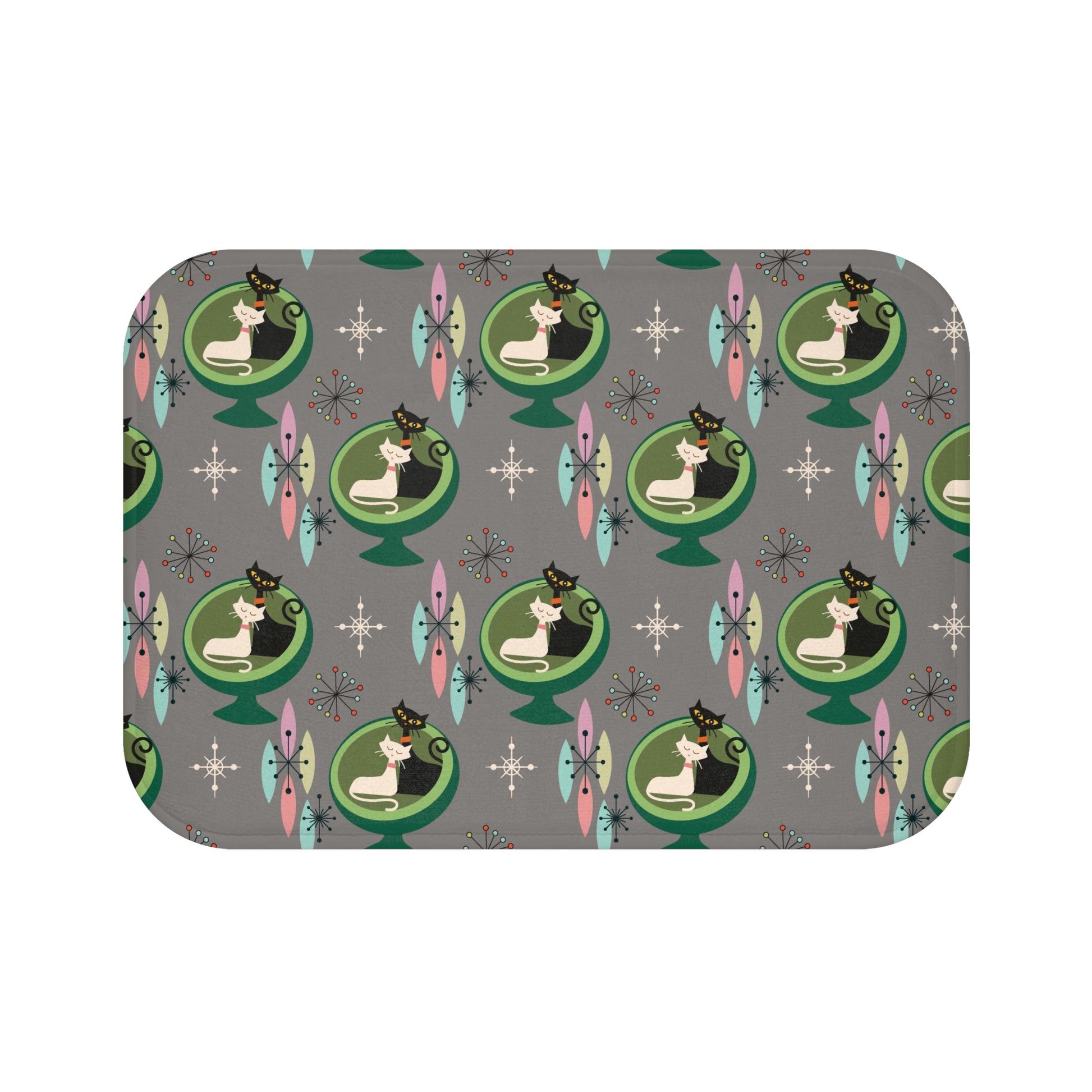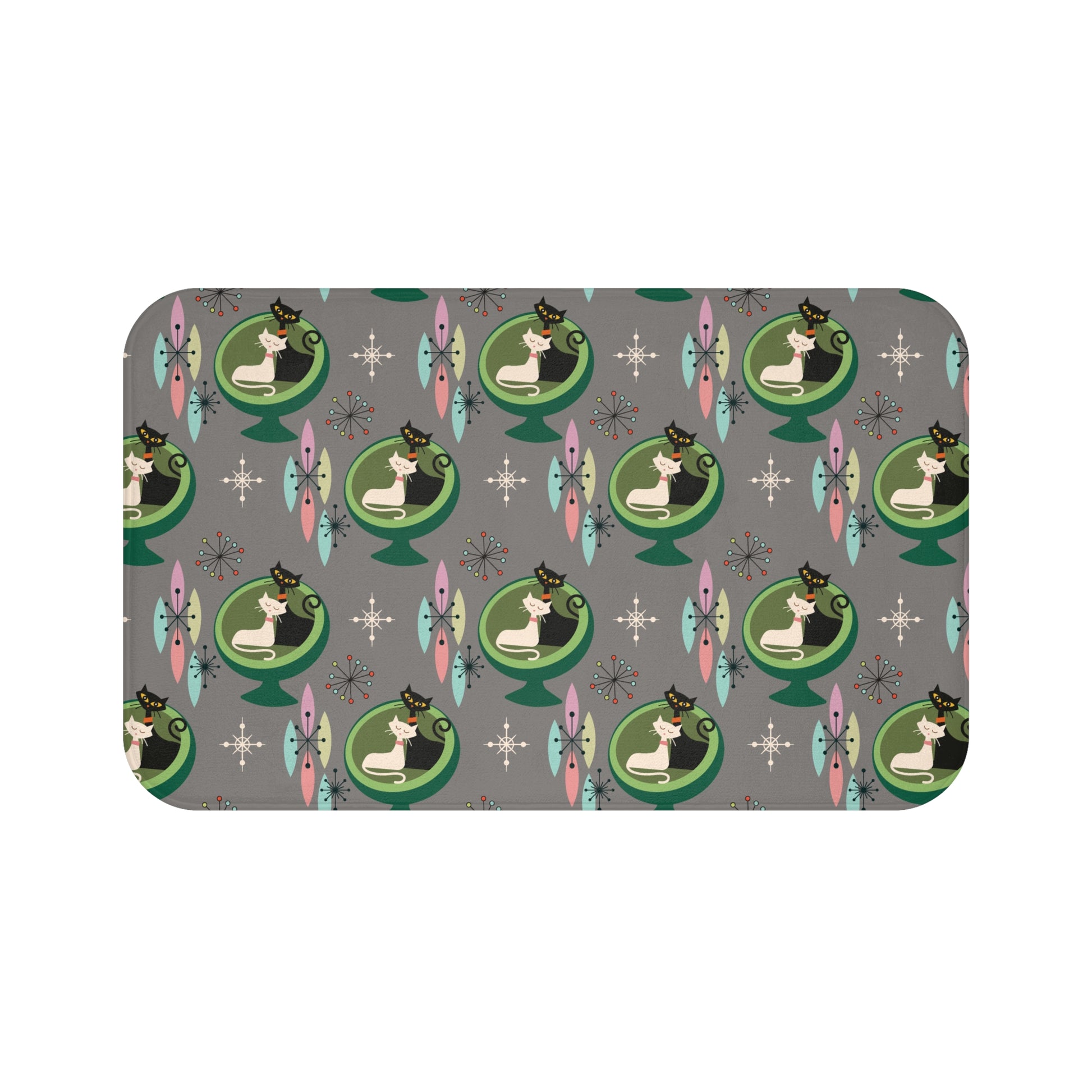 Retro 50s Atomic Cats in Ball Chair, Mid Century Modern Gray Bath Mat