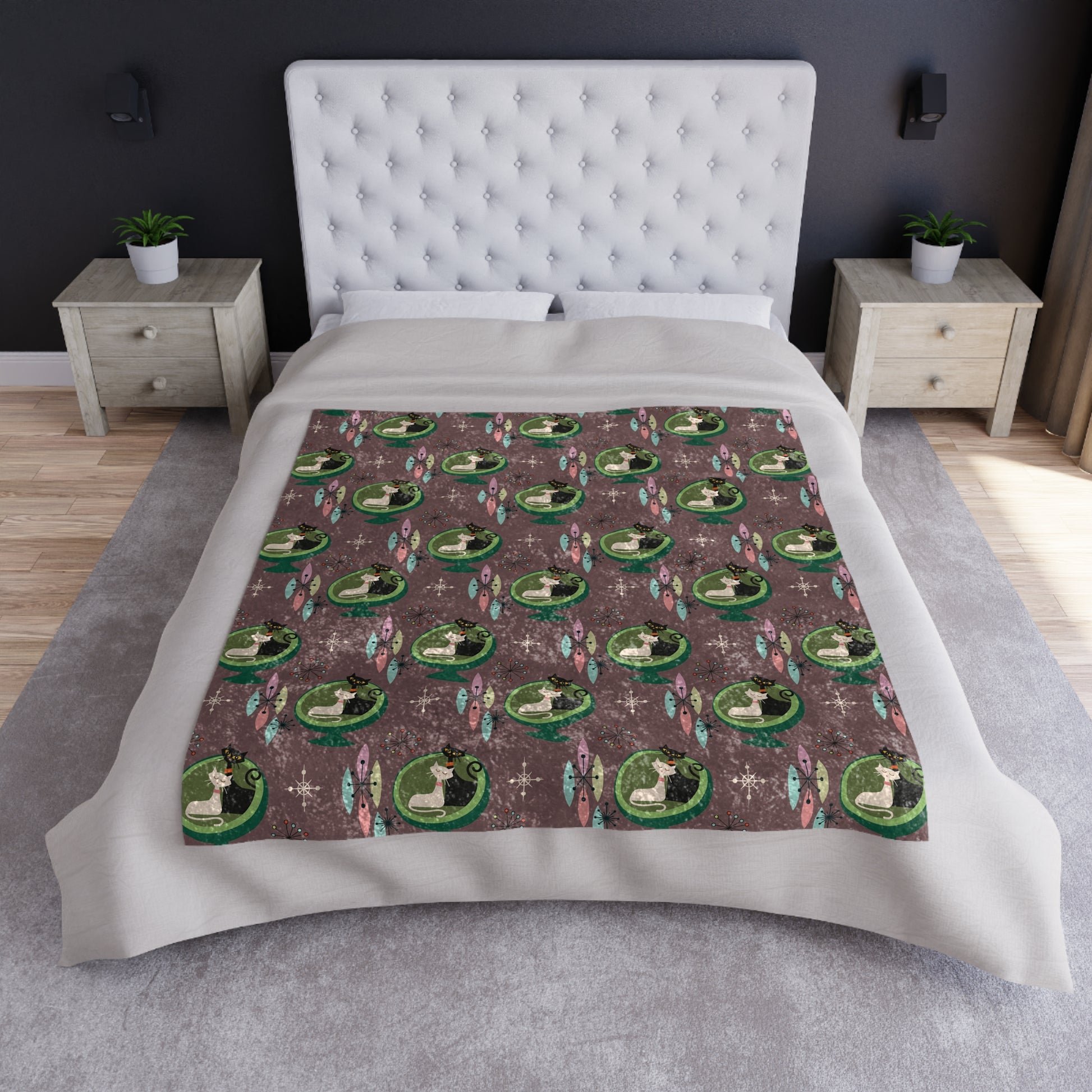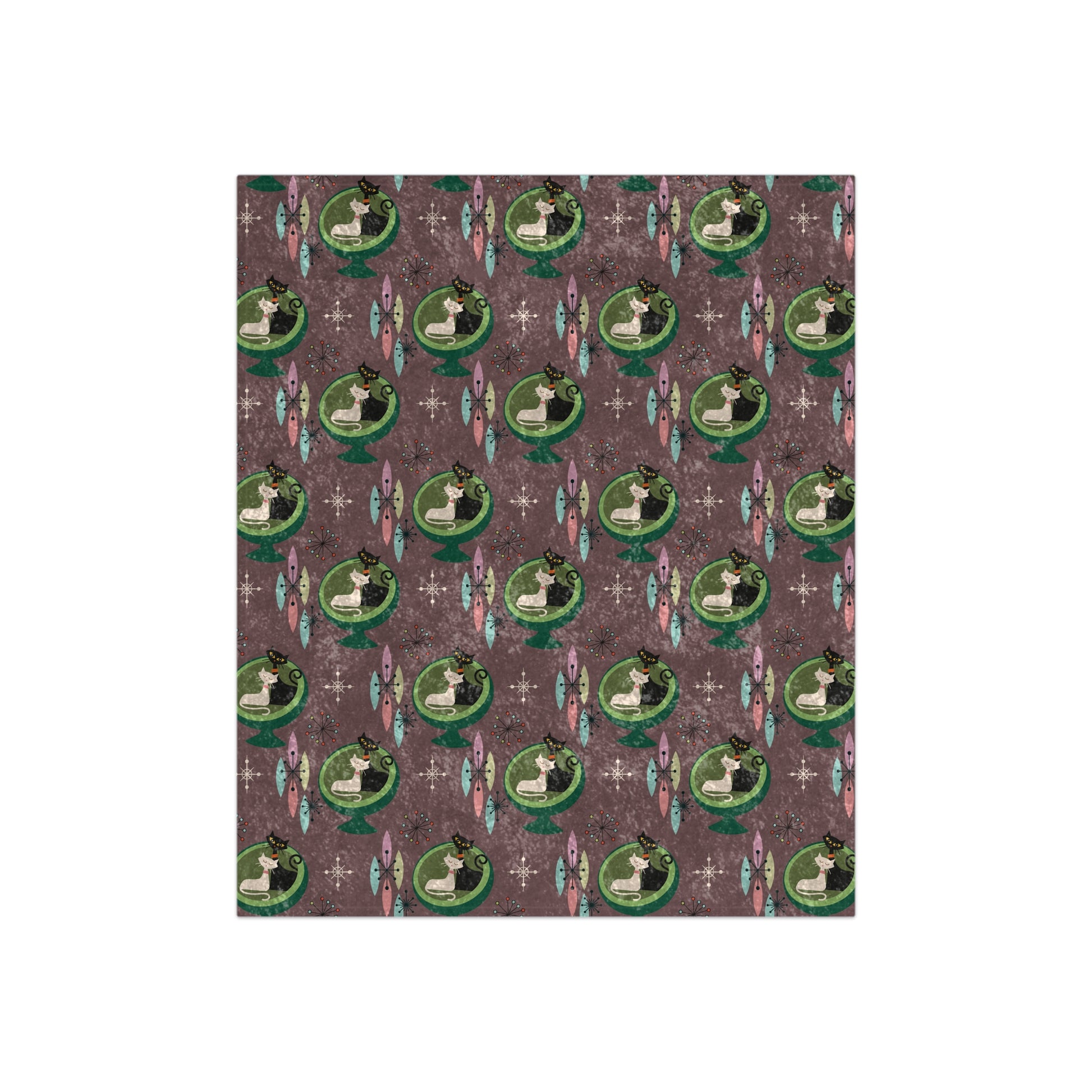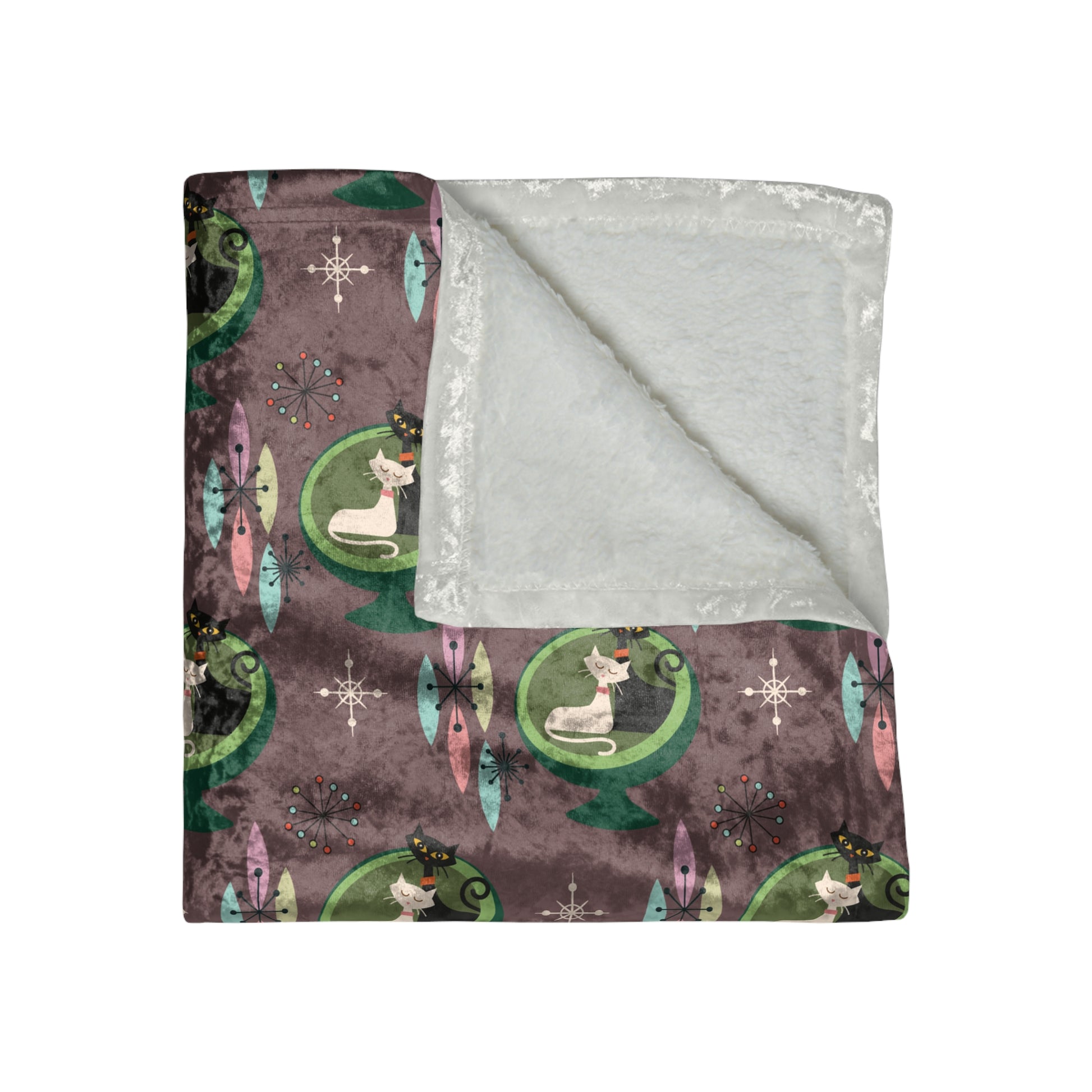 Retro 50s Atomic Cats in Ball Chair, Mid Century Modern Taupe Crushed Velvet Blanket