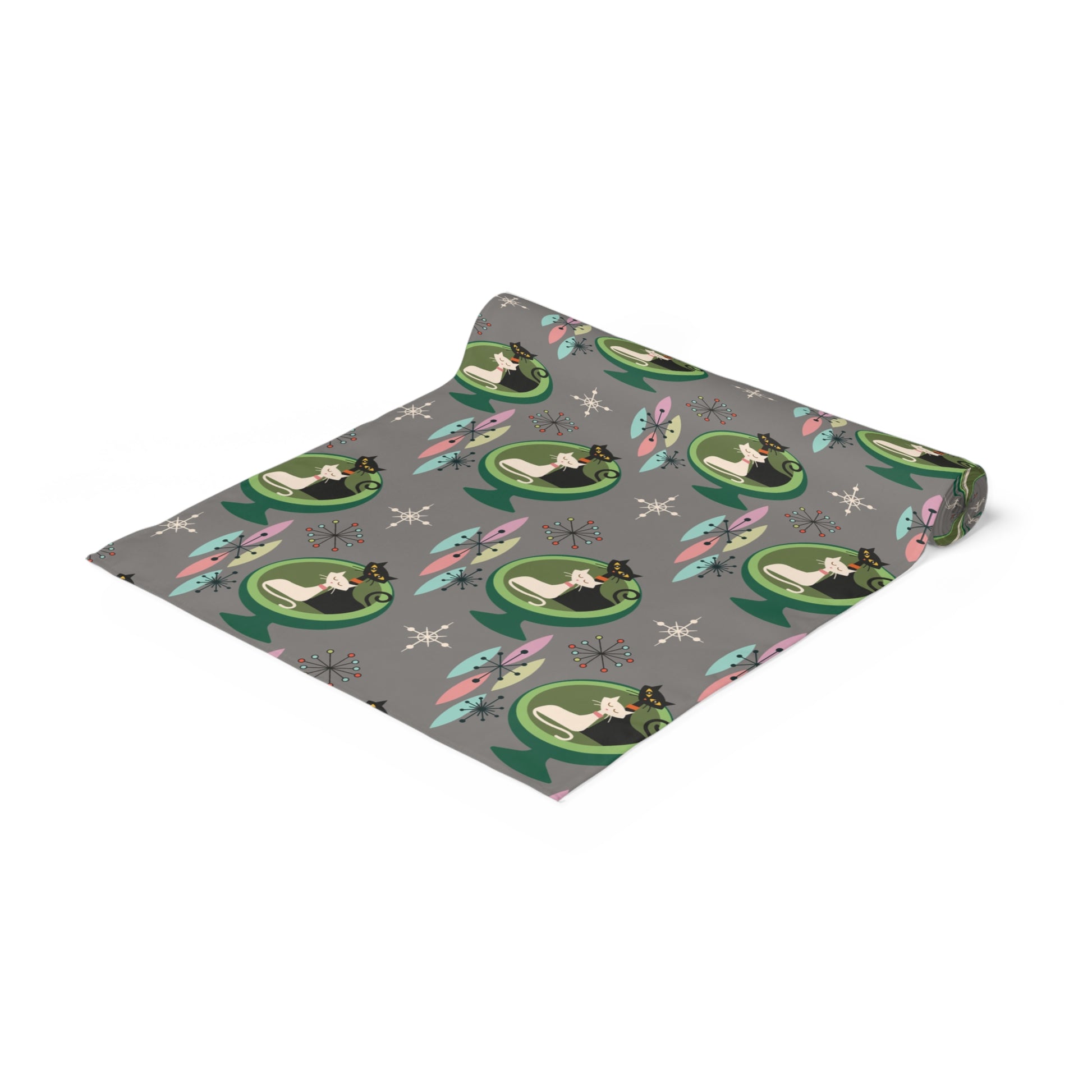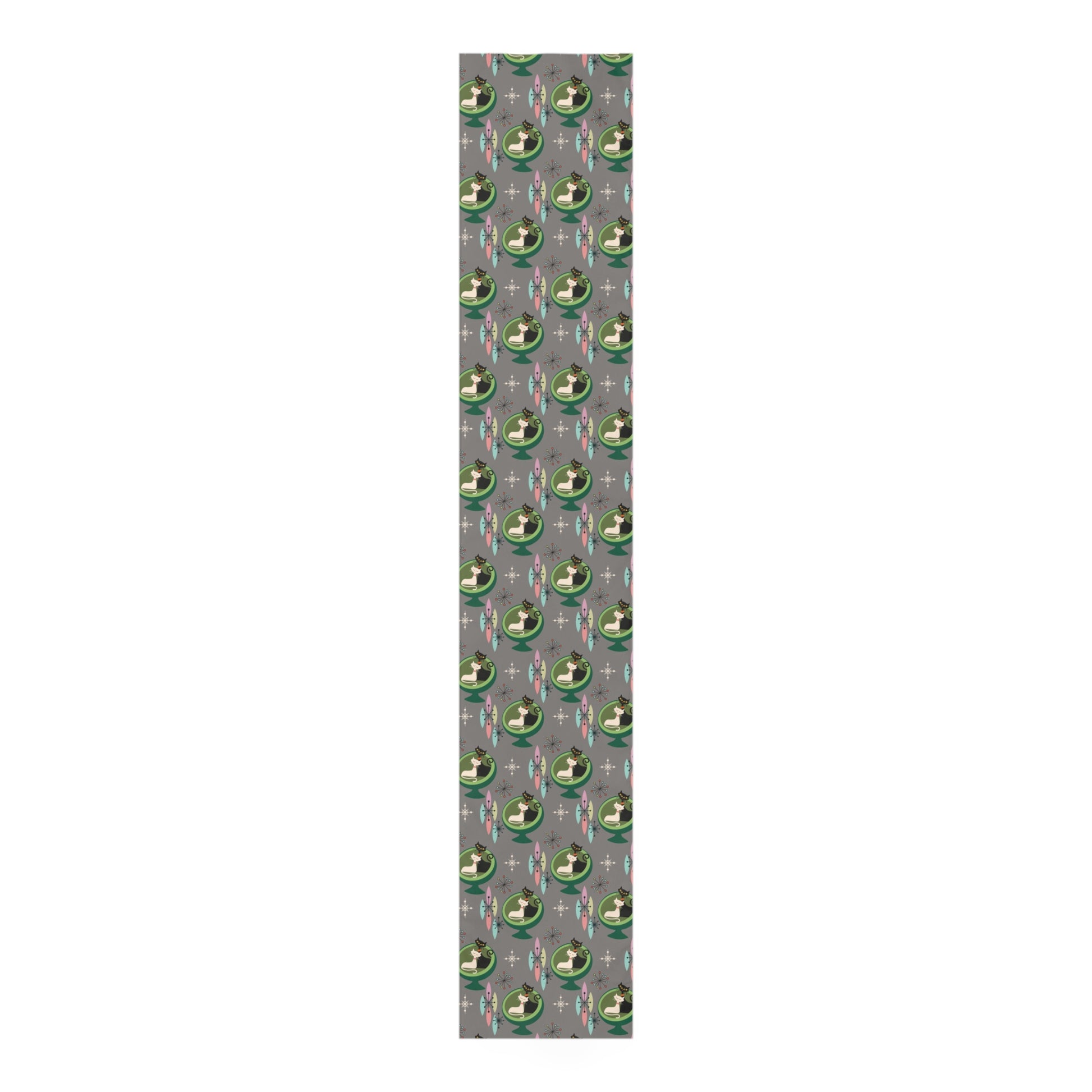 Retro 50s Atomic Cats Space Age, Mid Century Modern Gray Table Runner