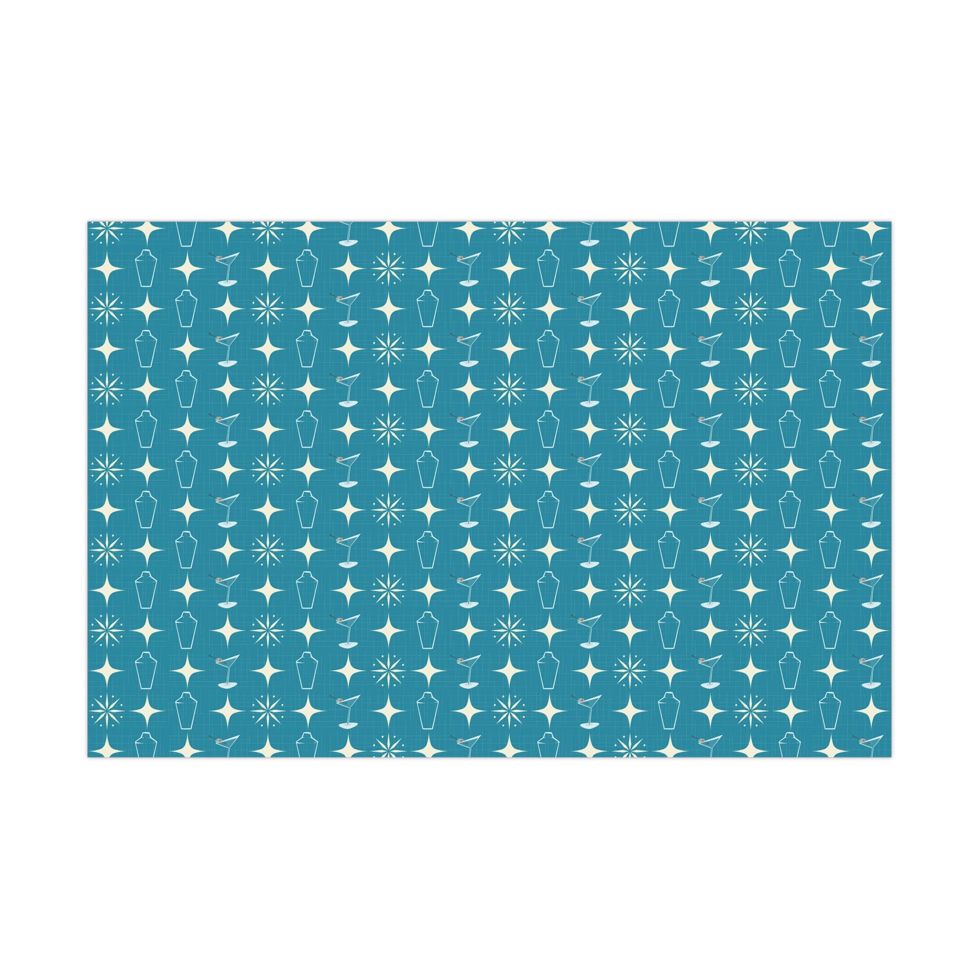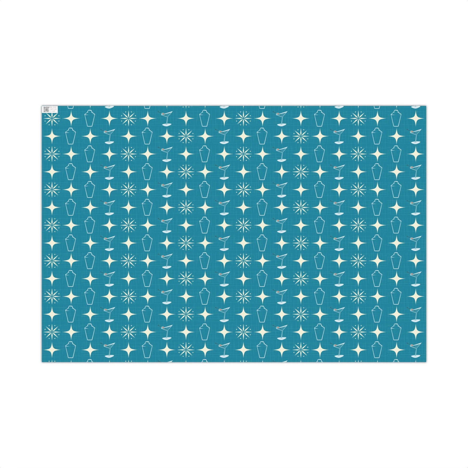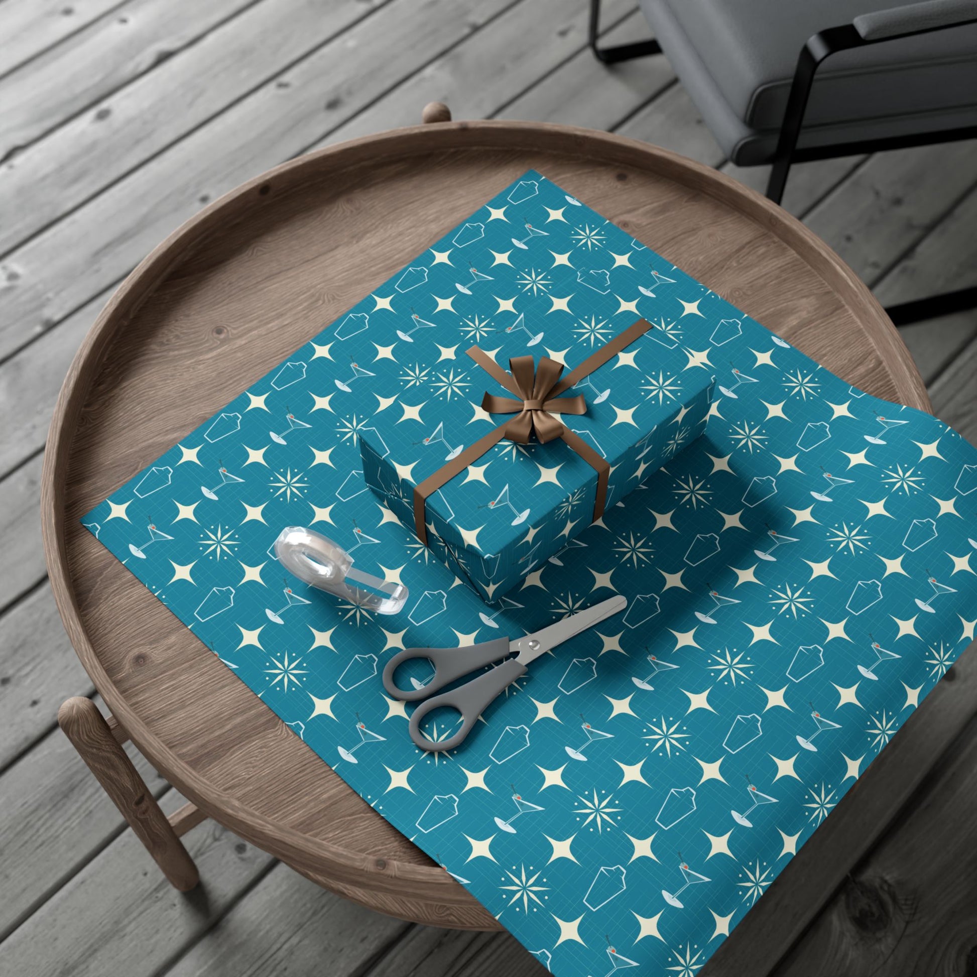 Retro 50's Atomic Starburst & Martinis Mid Century Mod Blue Eco-Friendly Gift Wrap
