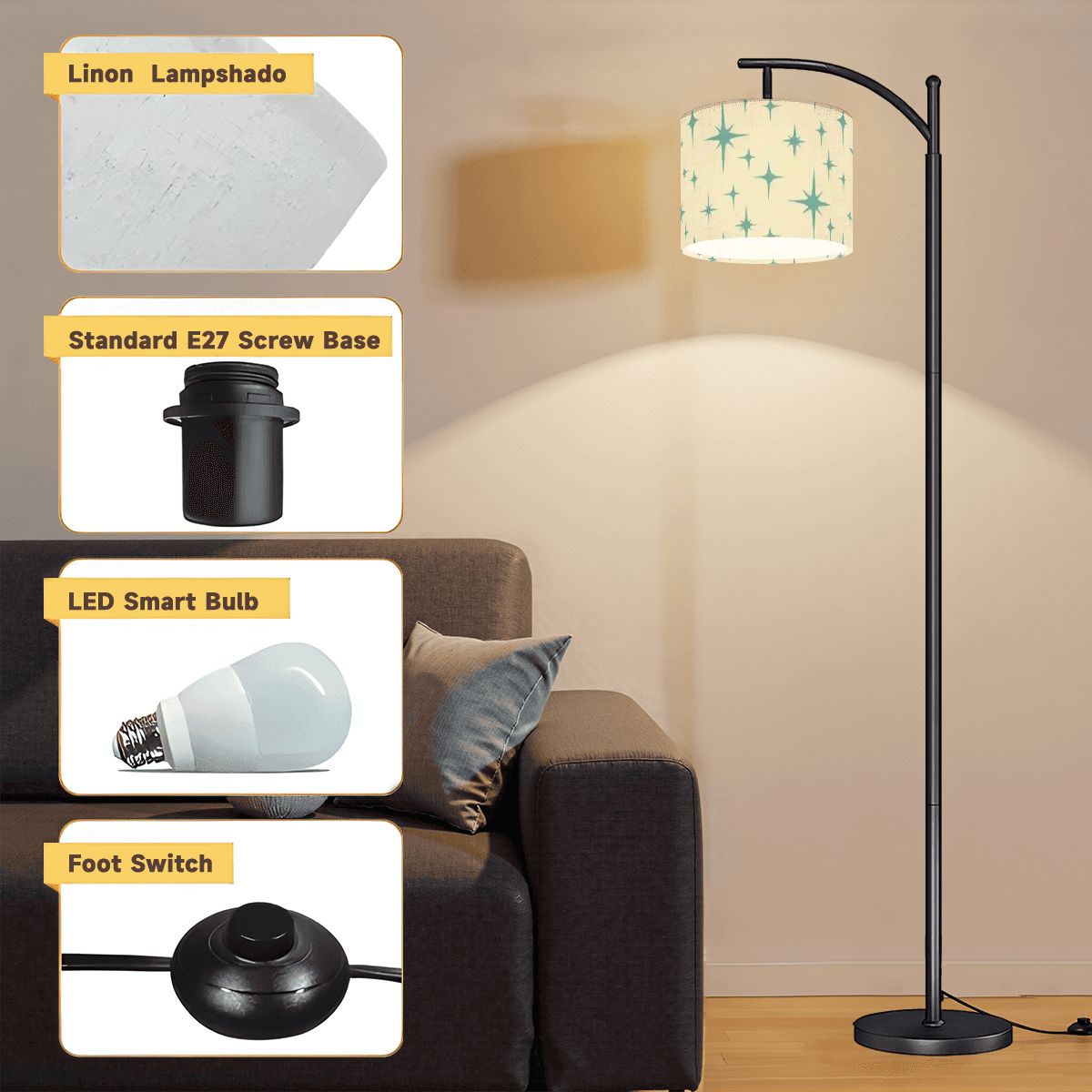 Our blue and off-white atomic starburst arced floor lamp brings a fresh take on mid-century elegance — blending classic retro 50's mcm design with modern functionality. Featuring an adjustable shade that effortlessly pivots up to 180°, it’s designed to cast the perfect light exactly where you need it!