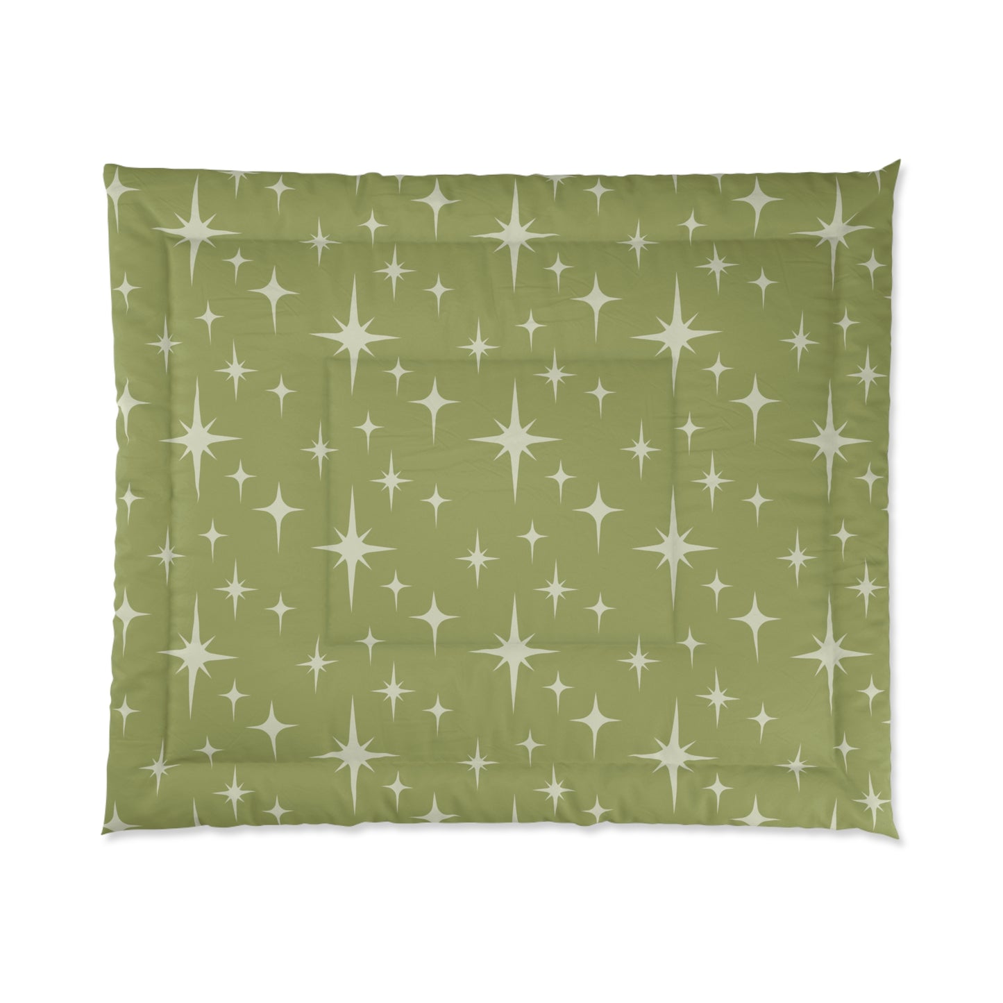 Retro 50s Atomic Starburst Mid Century Modern Chartreuse Green Comforter