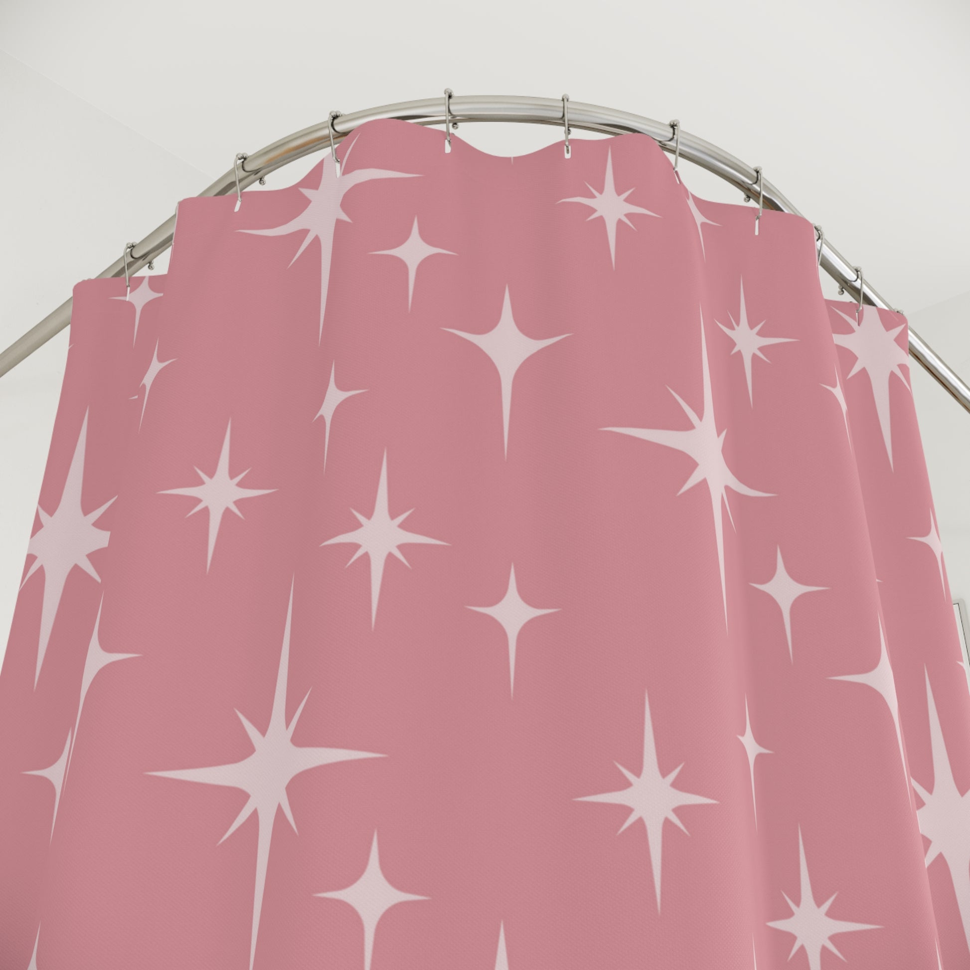 Retro 50s Atomic Starburst Pink Mid Century Modern Shower Curtain