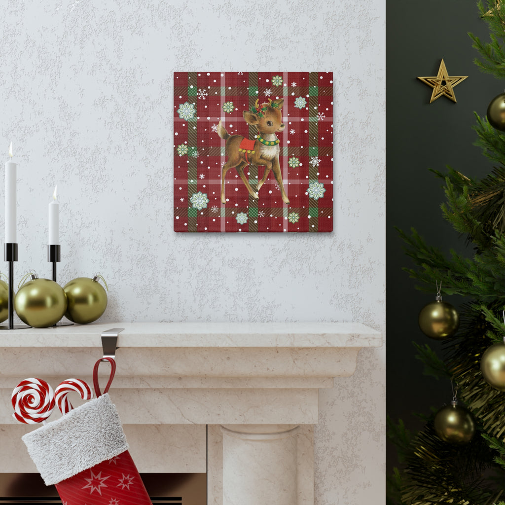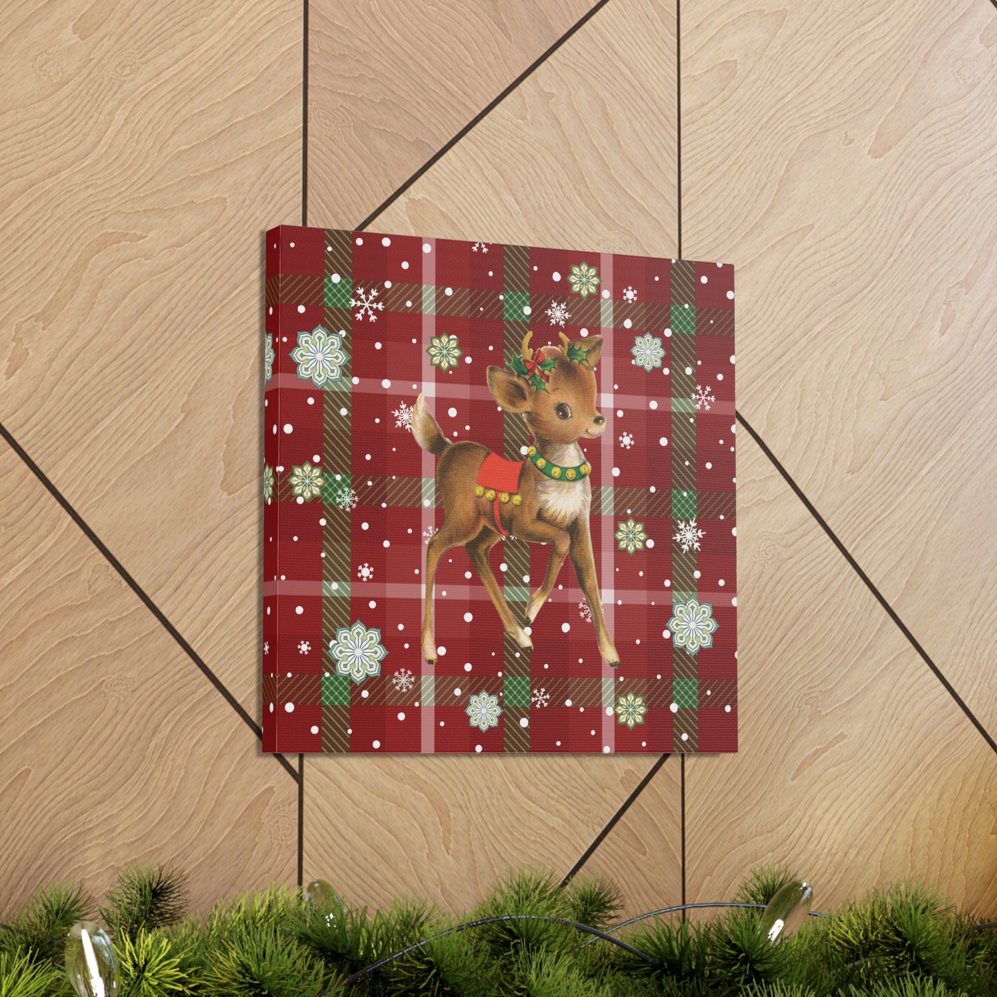 Get ready for Christmas cuteness overload with our retro 50's vintage reindeer canvas wall art! This vintage inspired holiday piece features a playful reindeer, snowflakes and a traditional Christmas color palette! It's the perfect way to add some nostalgia and Christmas decor to any room.