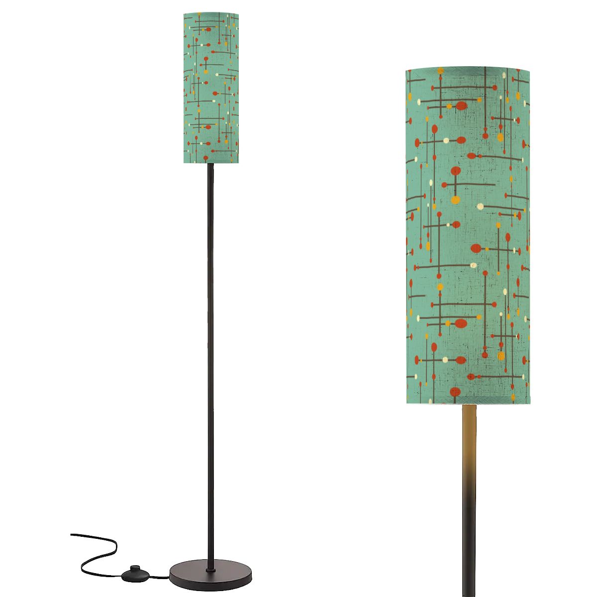 Retro 50's Eames Inspired Mid Century Mod Lines Teal Blue Floor Lamp