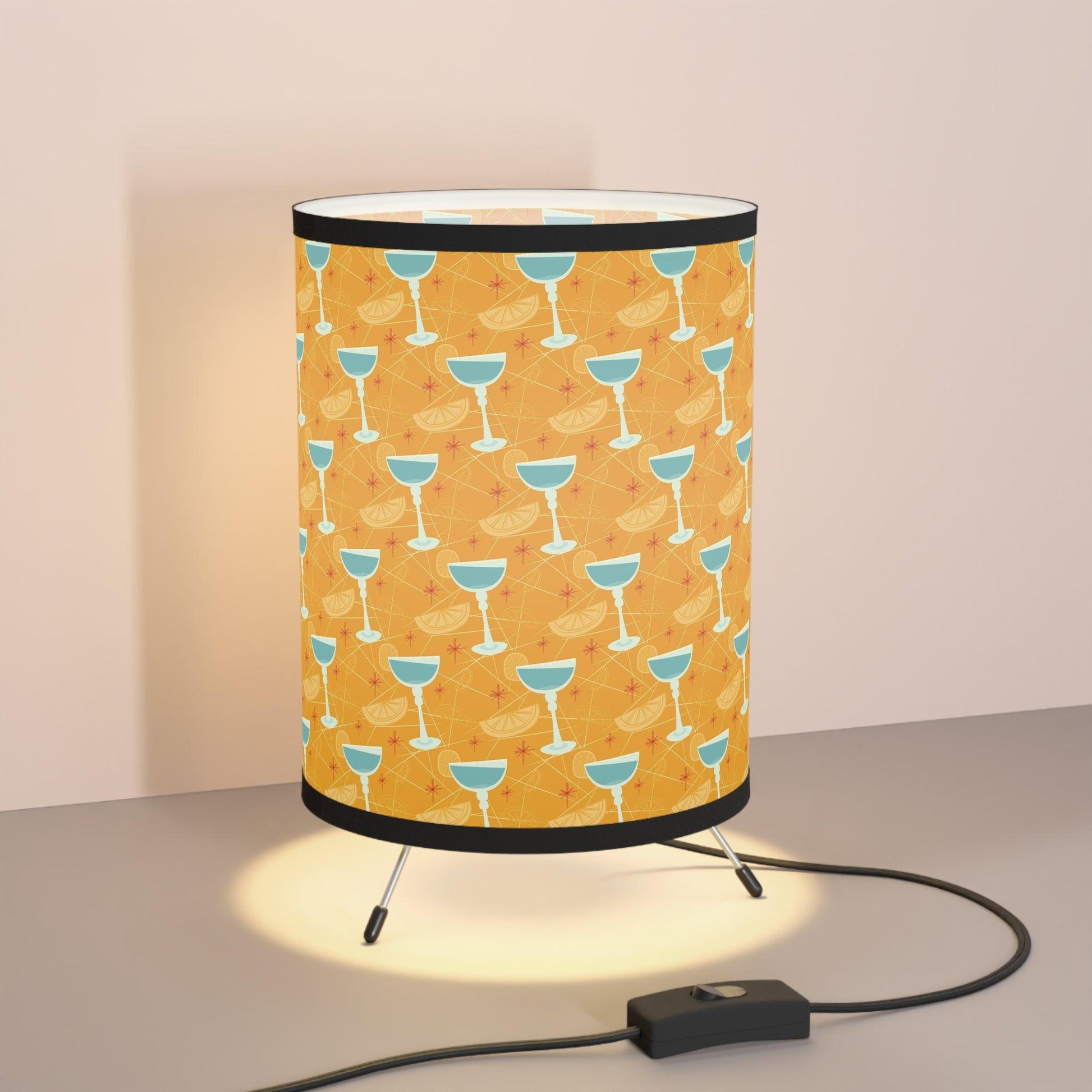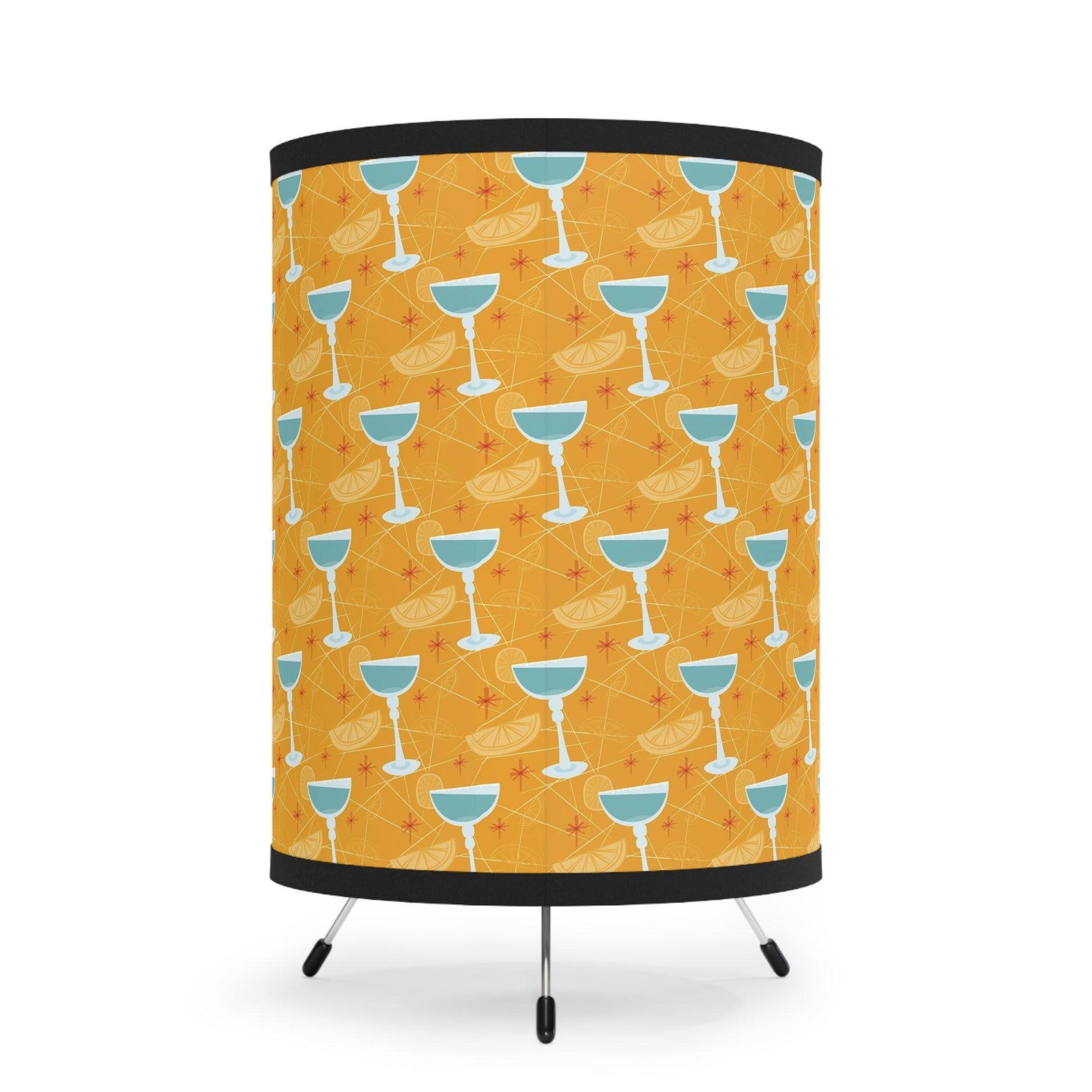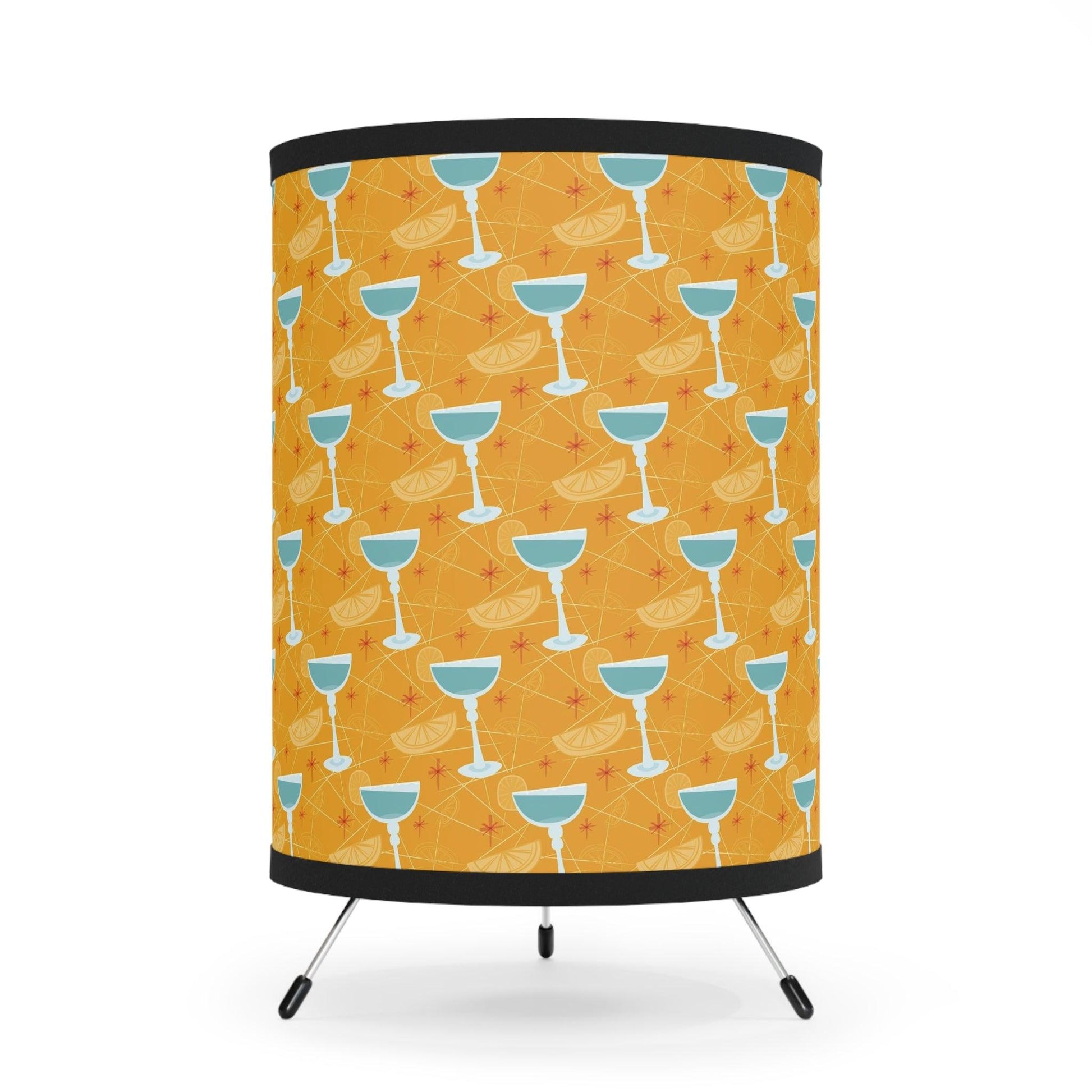 Our tripod accent lamp is sure to add a playful retro touch to any room in your home, with its eye-catching design featuring kitschy cocktails, orange slices and atomic bursts! This tabletop lamp is the perfect blend of mid century modern design and modern functionality.