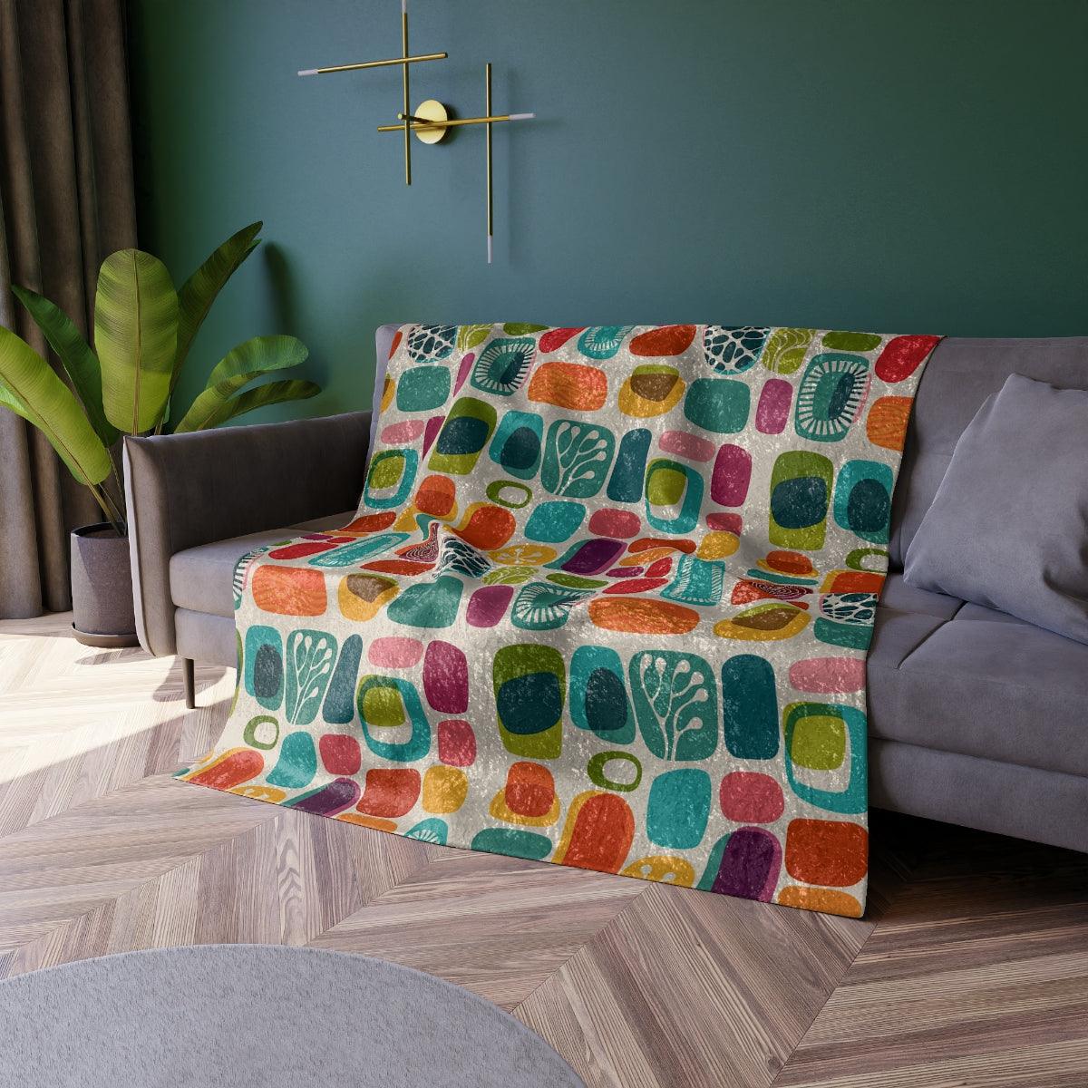 Retro 50s MCM Vibrant Abstract Crushed Velvet Blanket