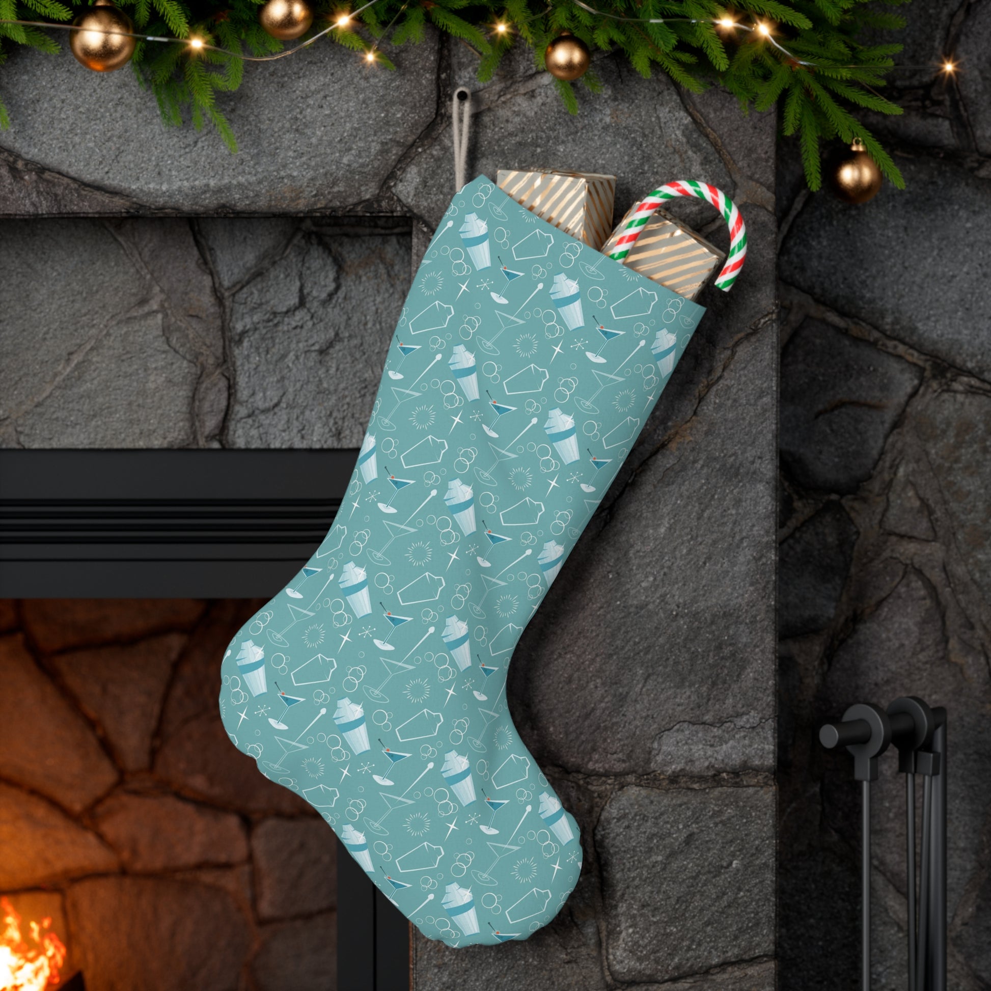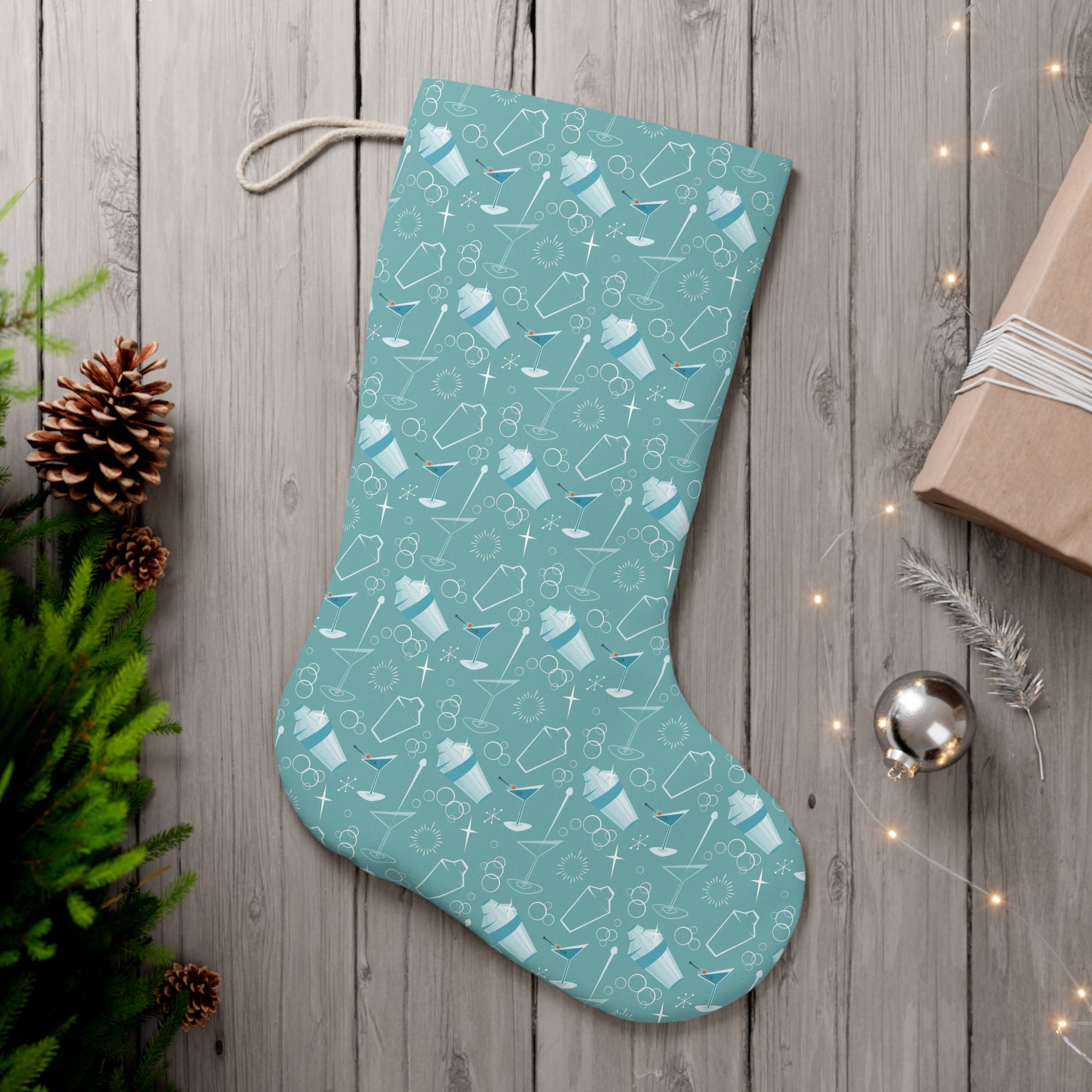 Retro 50s Mid Century Mod Martinis Blue Christmas Stocking