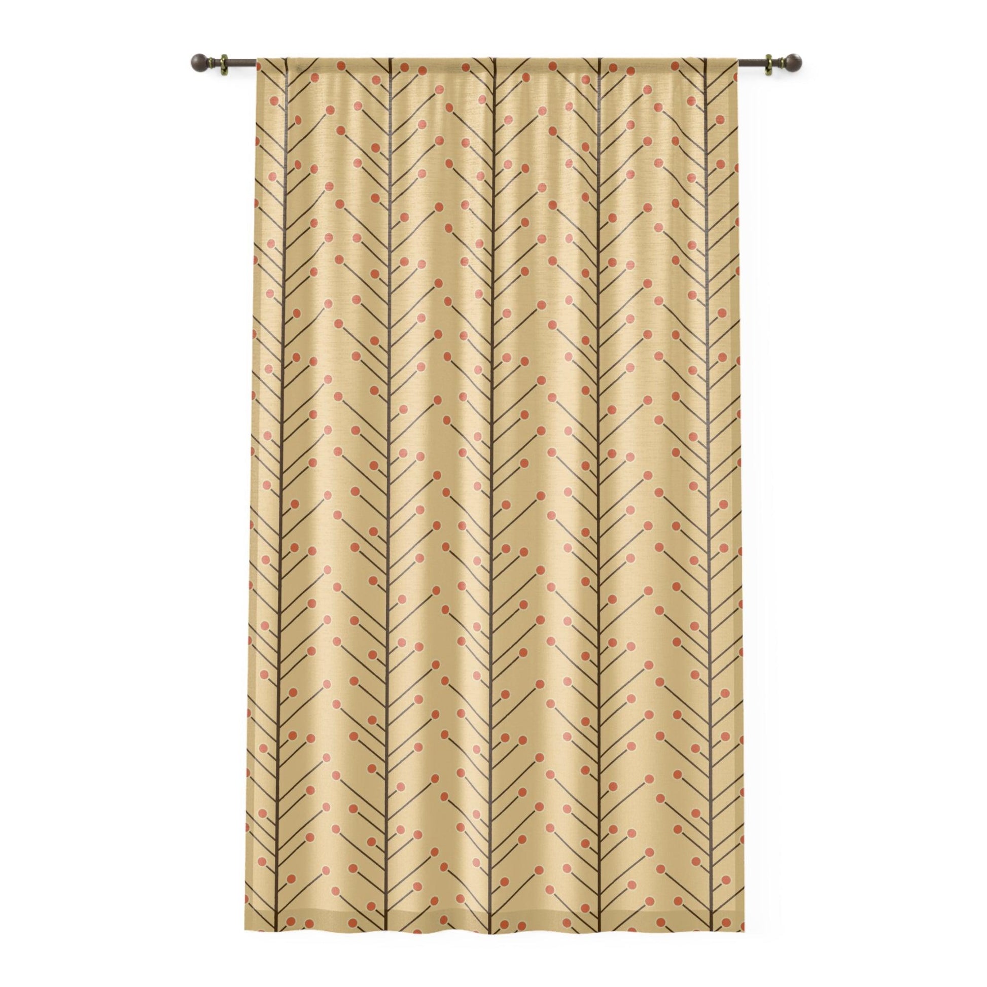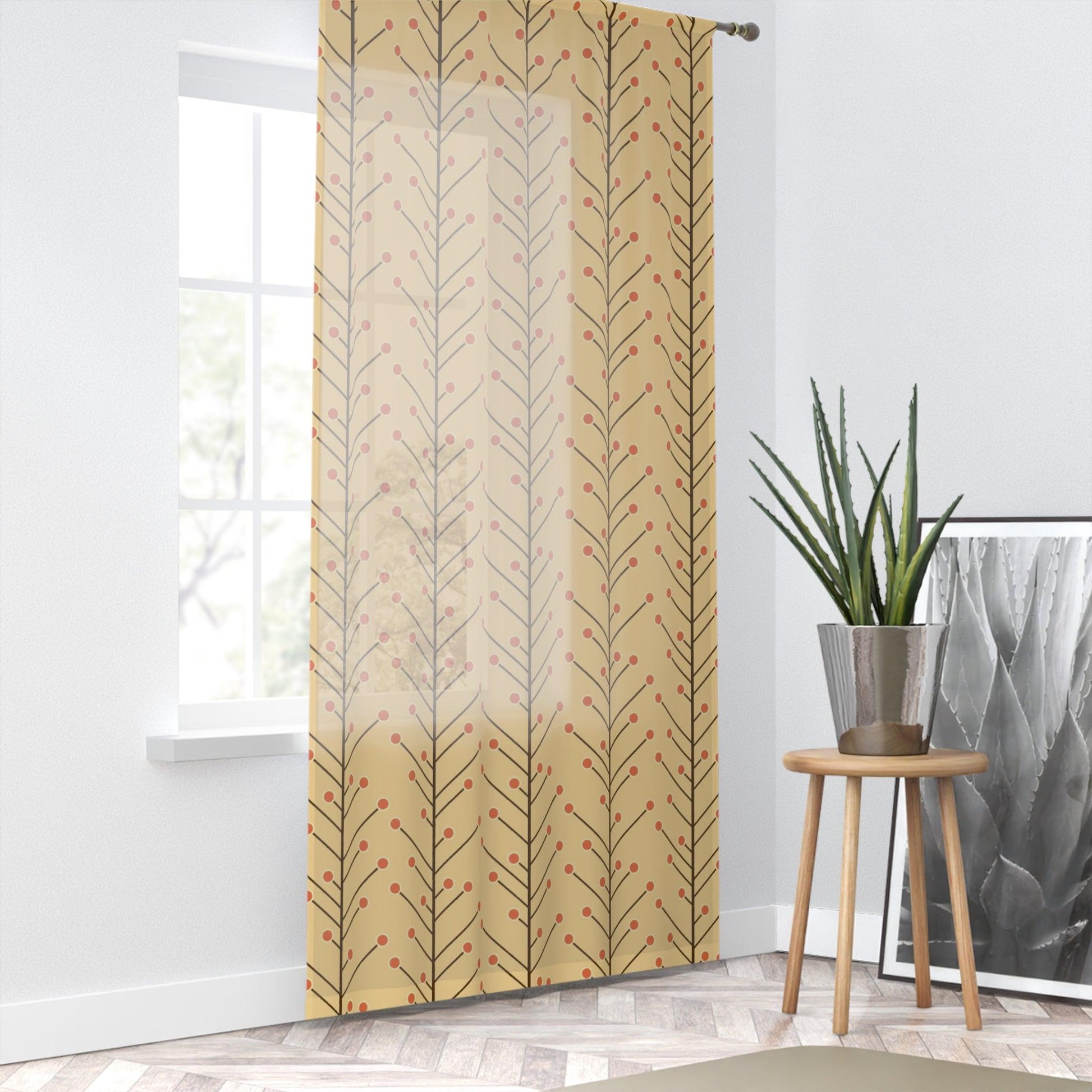 Retro 50's Mid Century Mod Minimalist Trees, Yellow Beige Sheer Window Curtain Panel