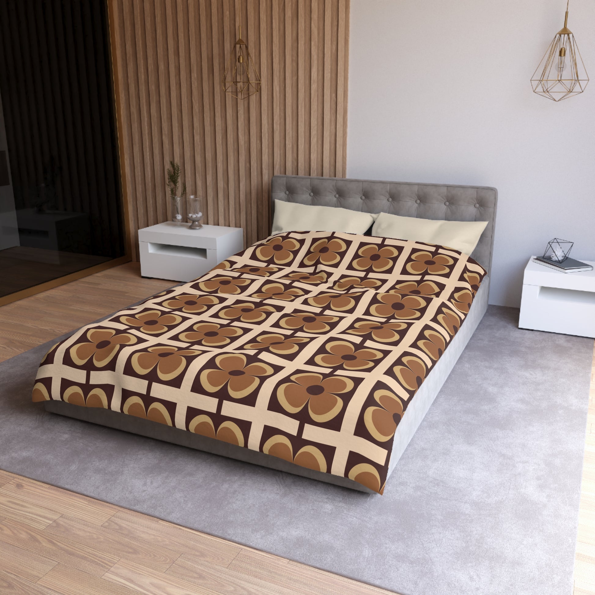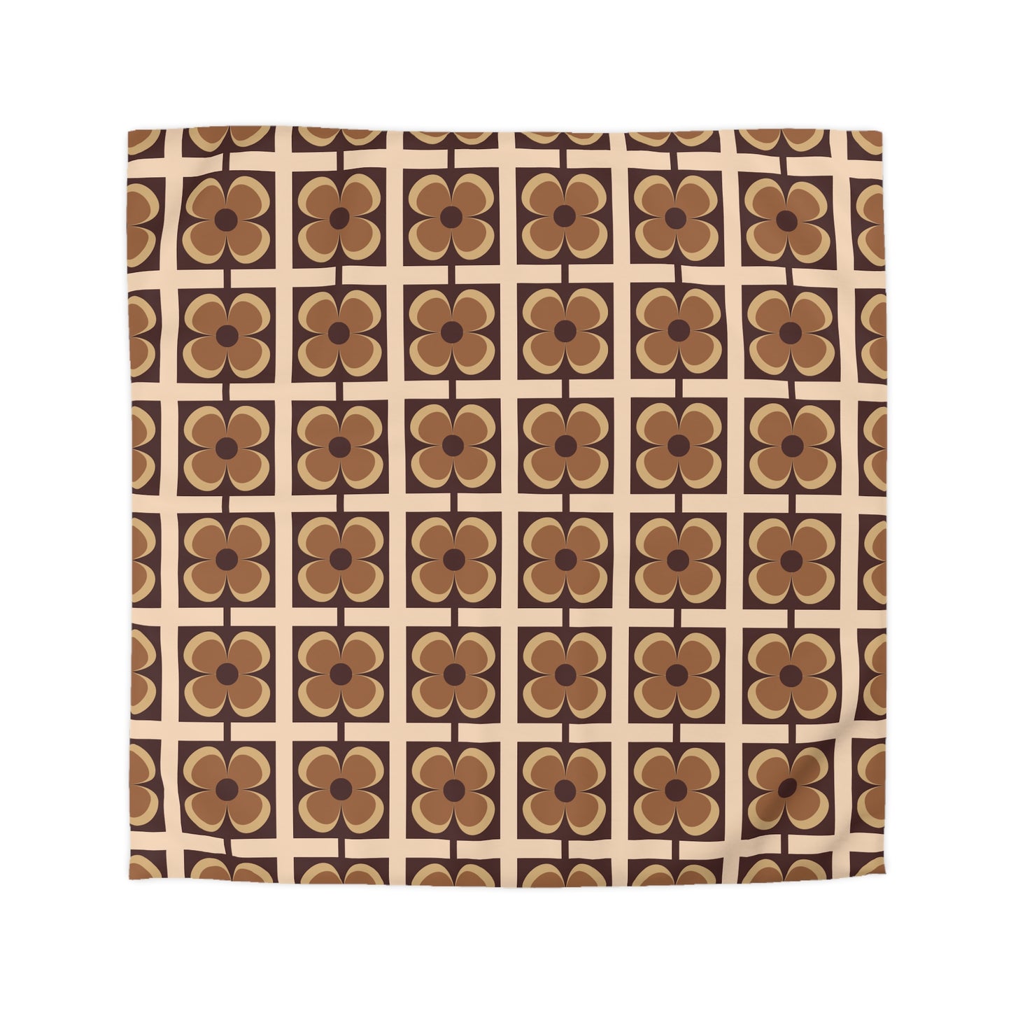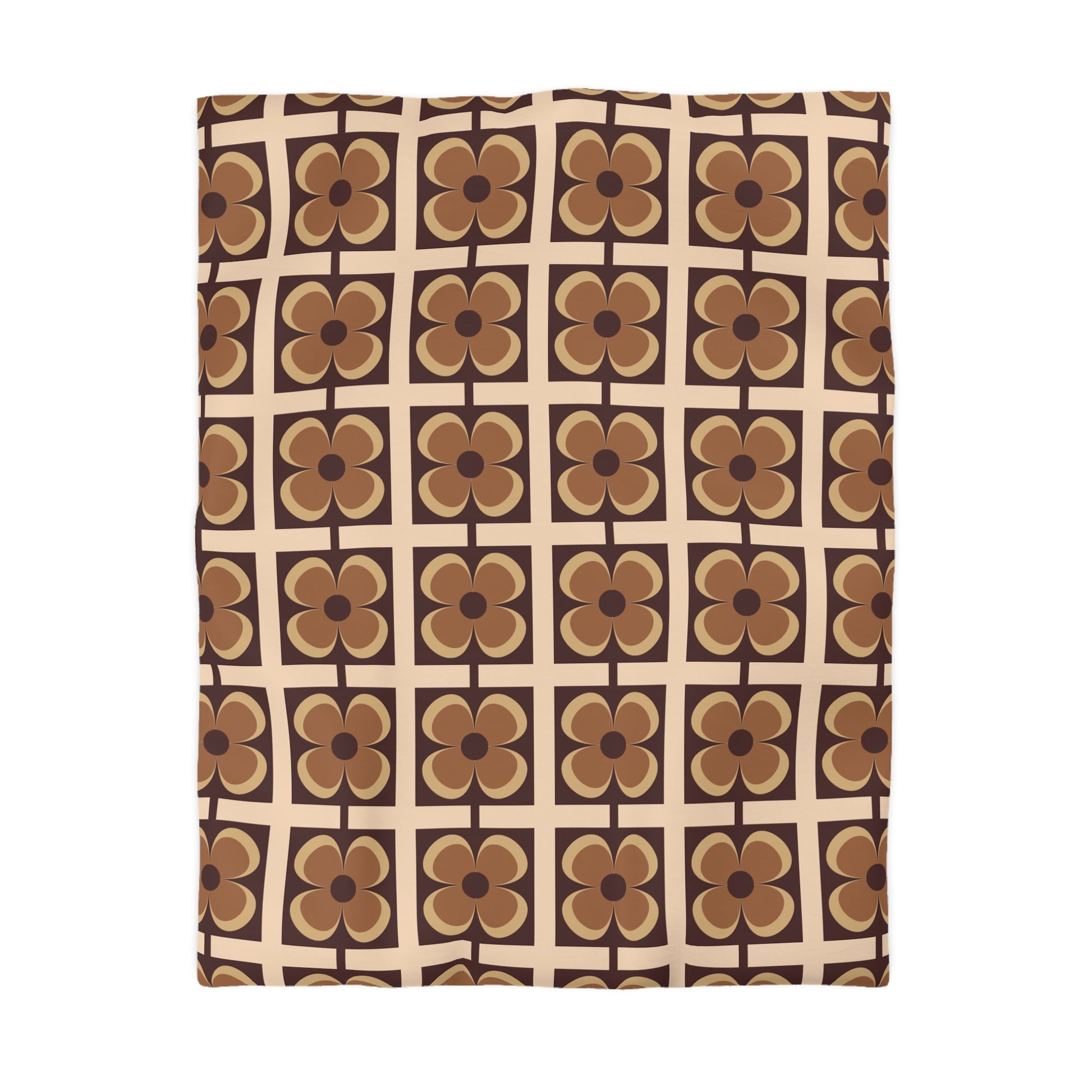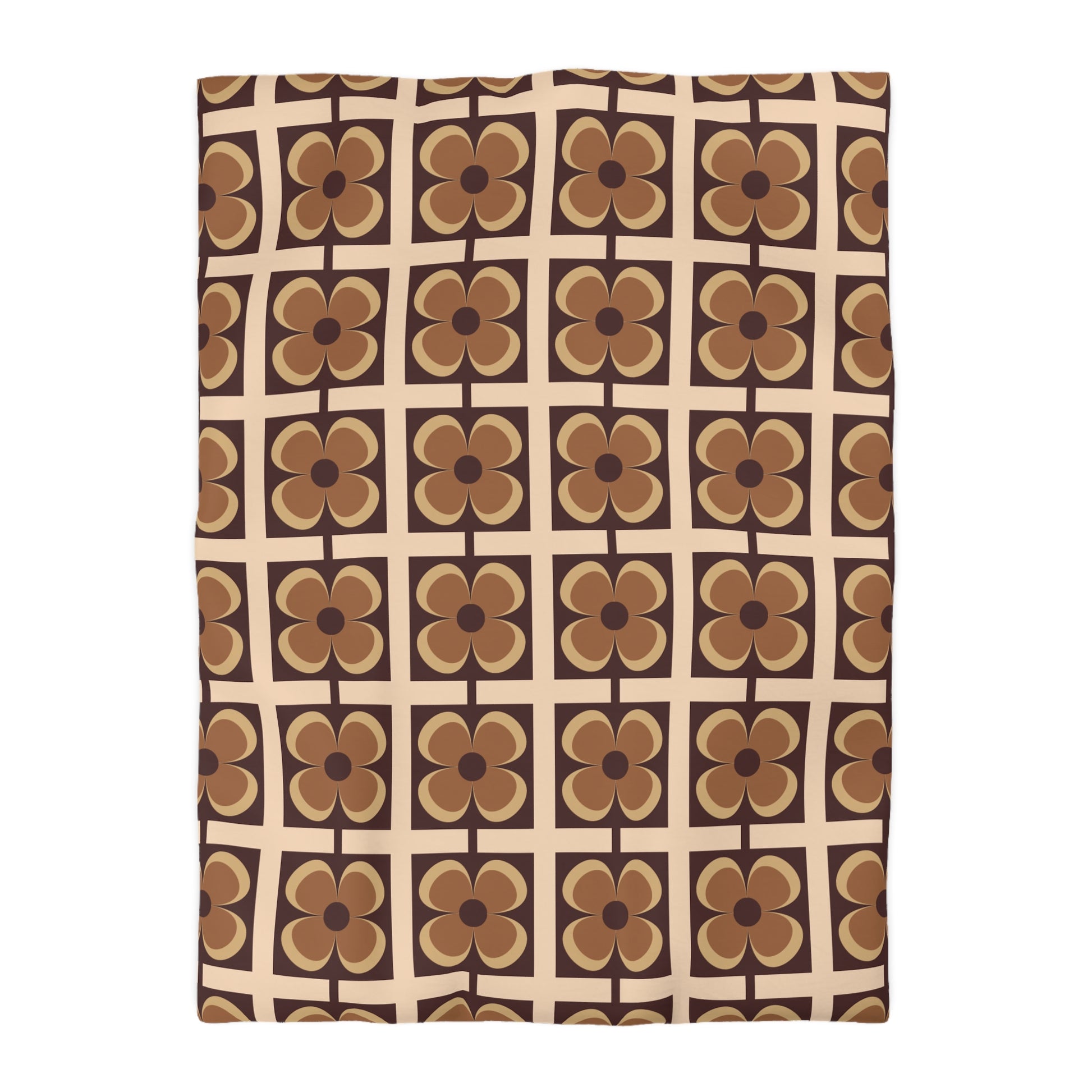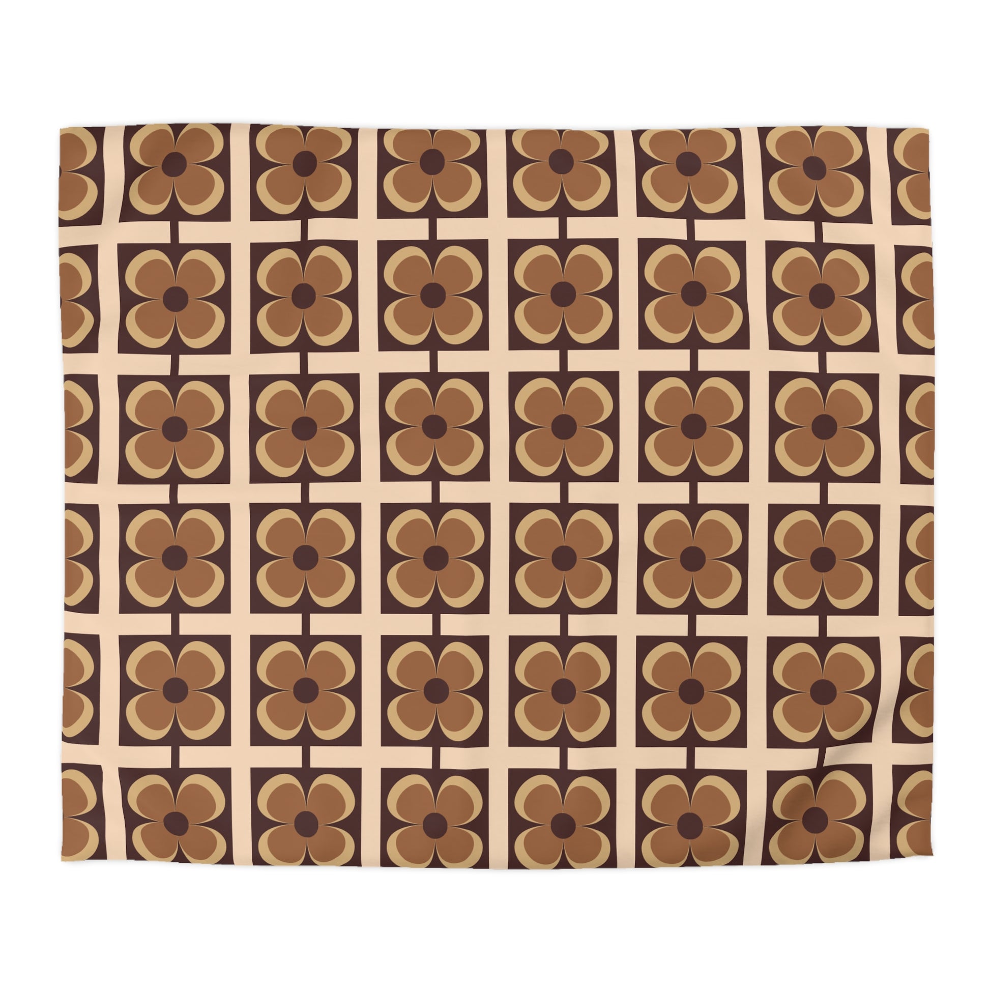 Retro 60s 70s Flowers Geometric Mid Century Modern Brown Duvet Cover