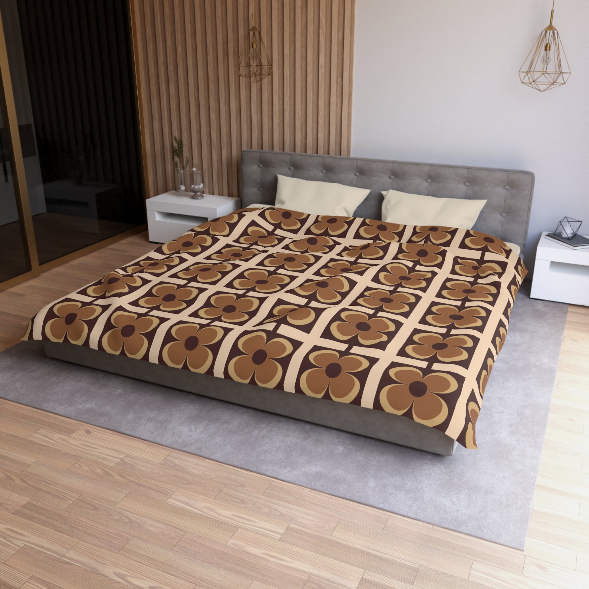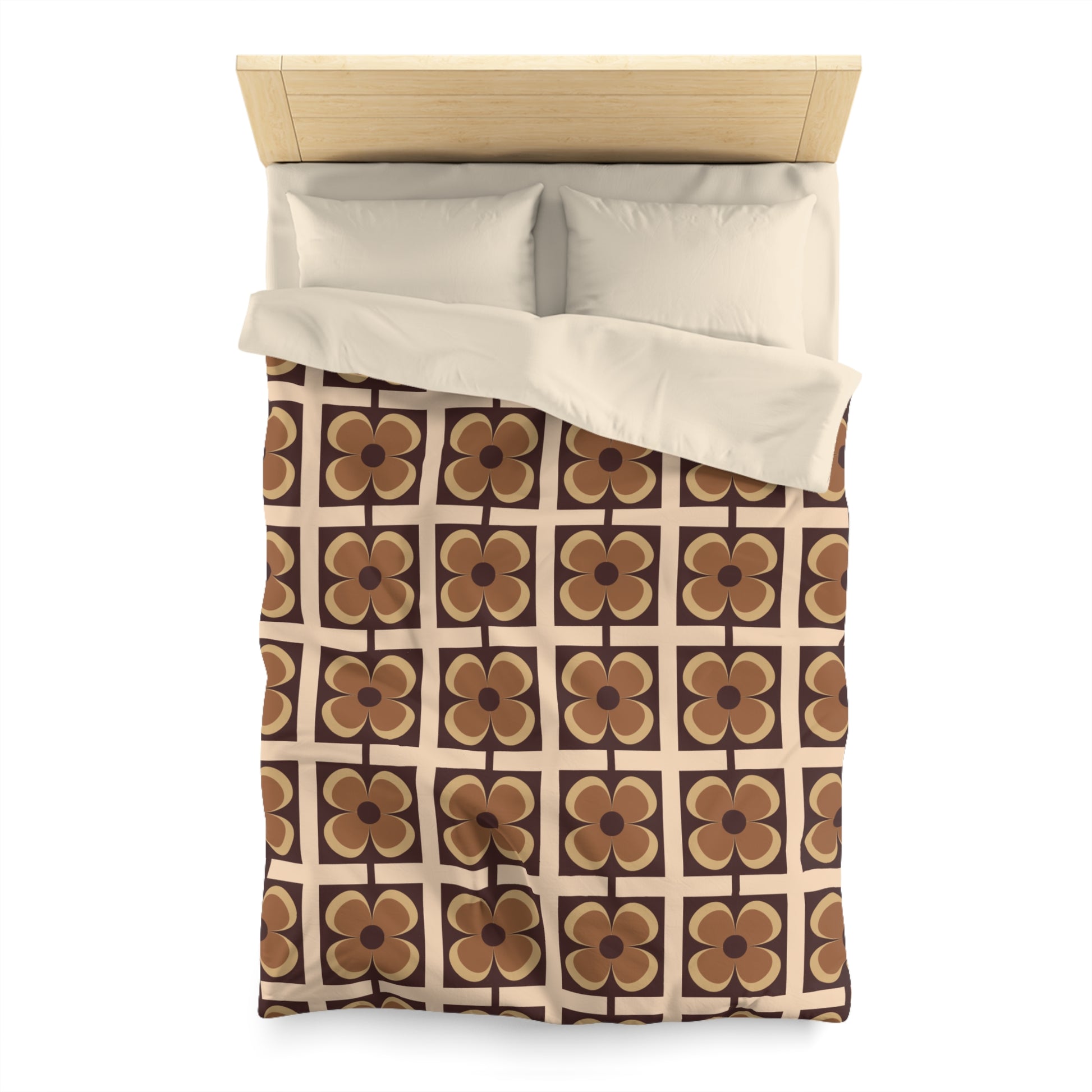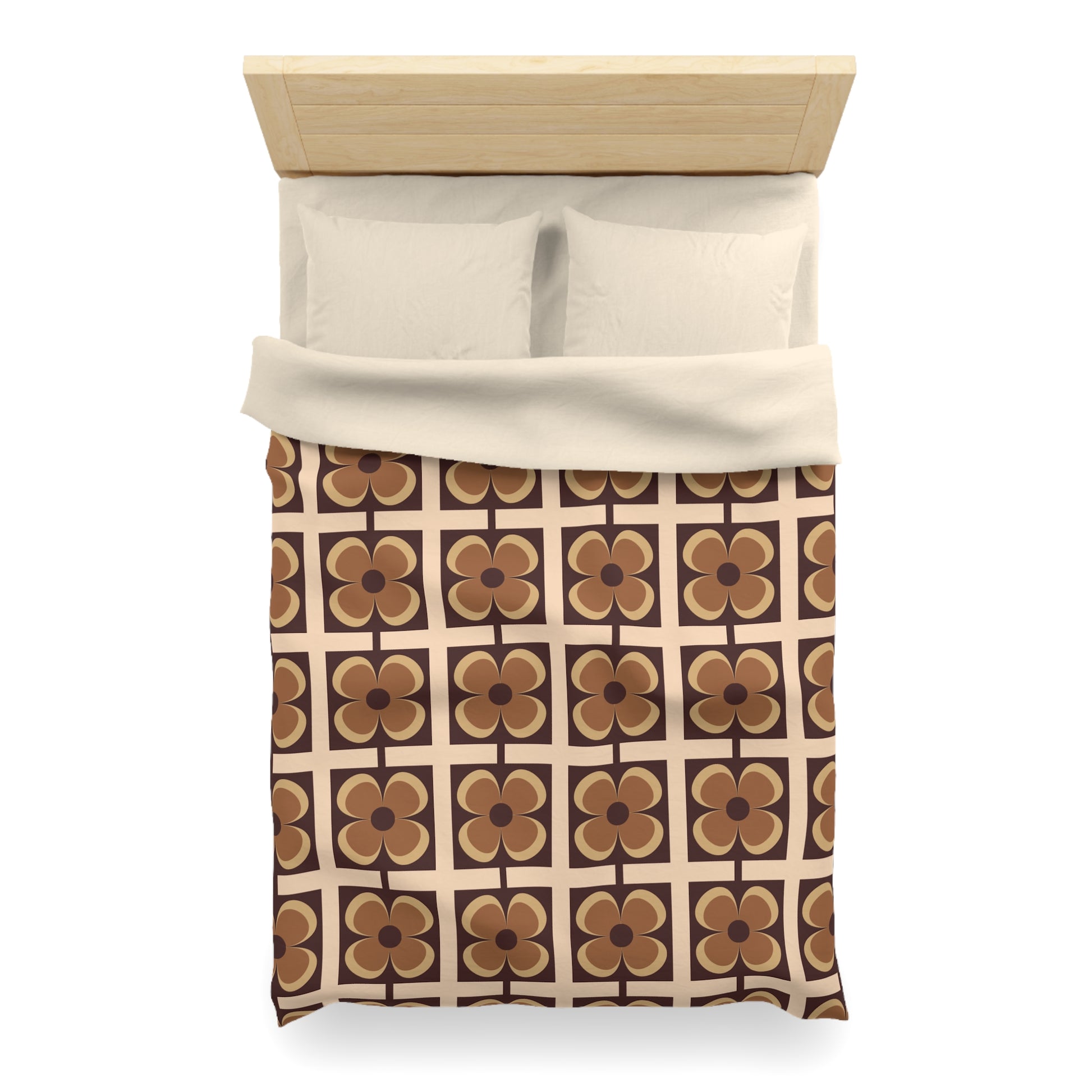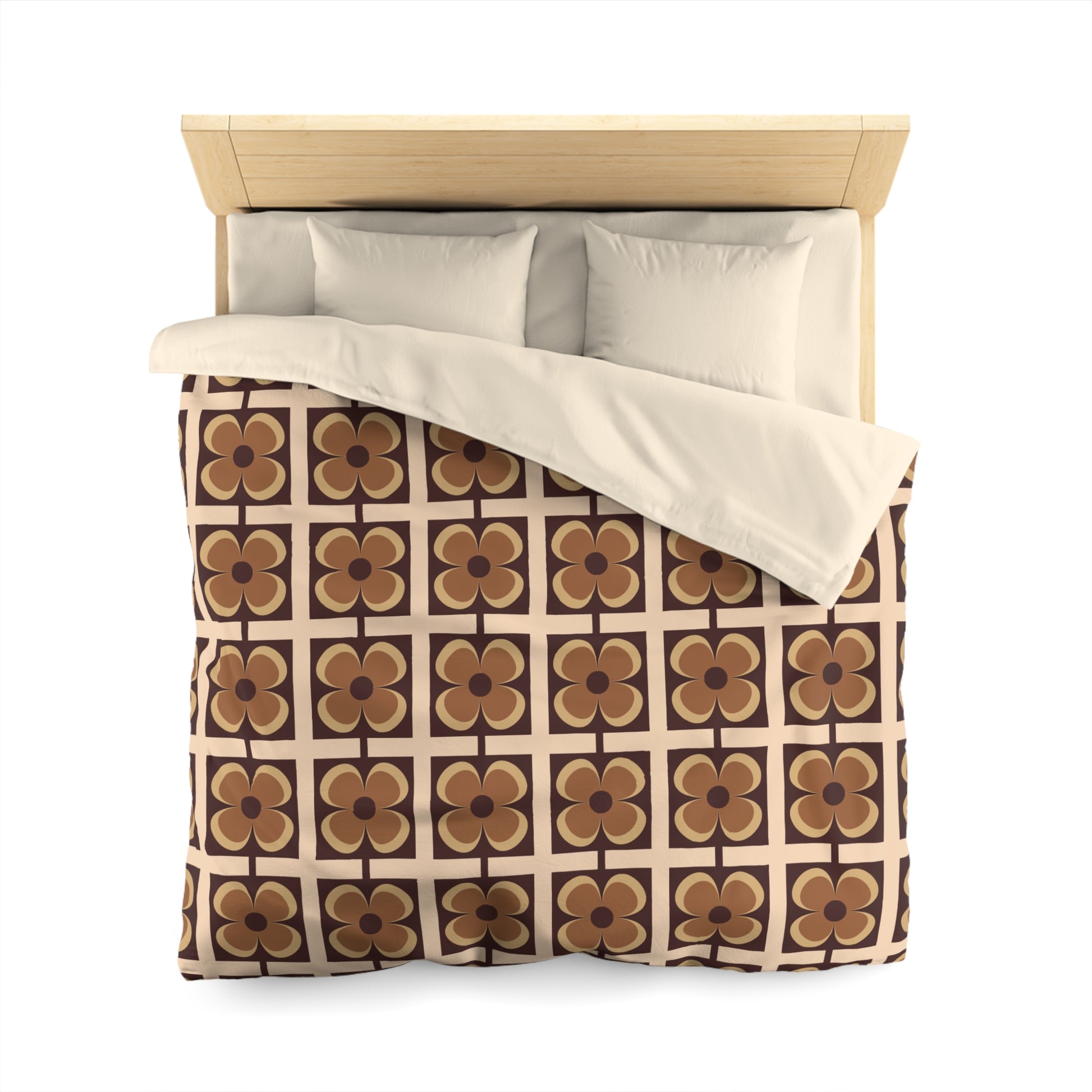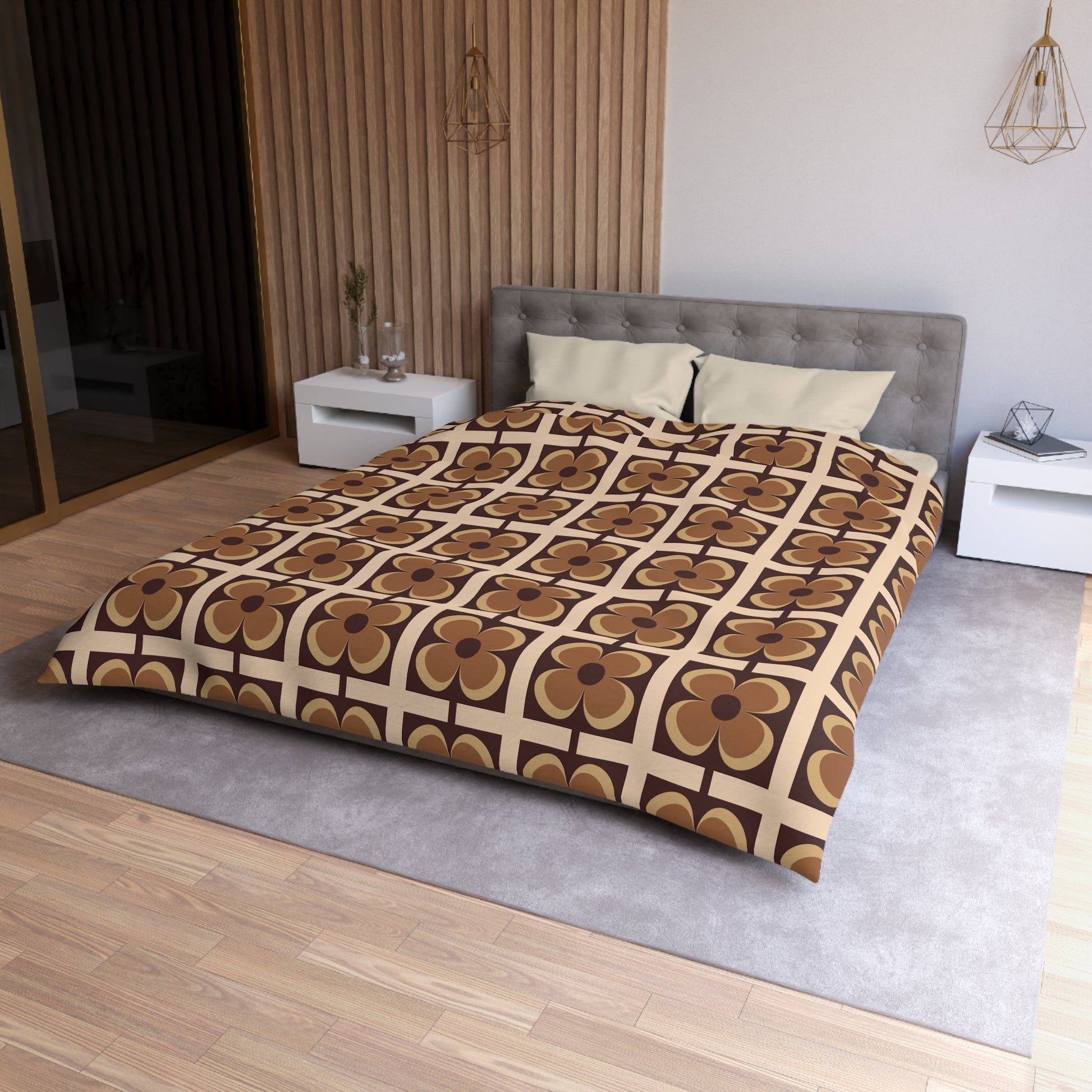 Retro 60s 70s Flowers Geometric Mid Century Modern Brown Duvet Cover