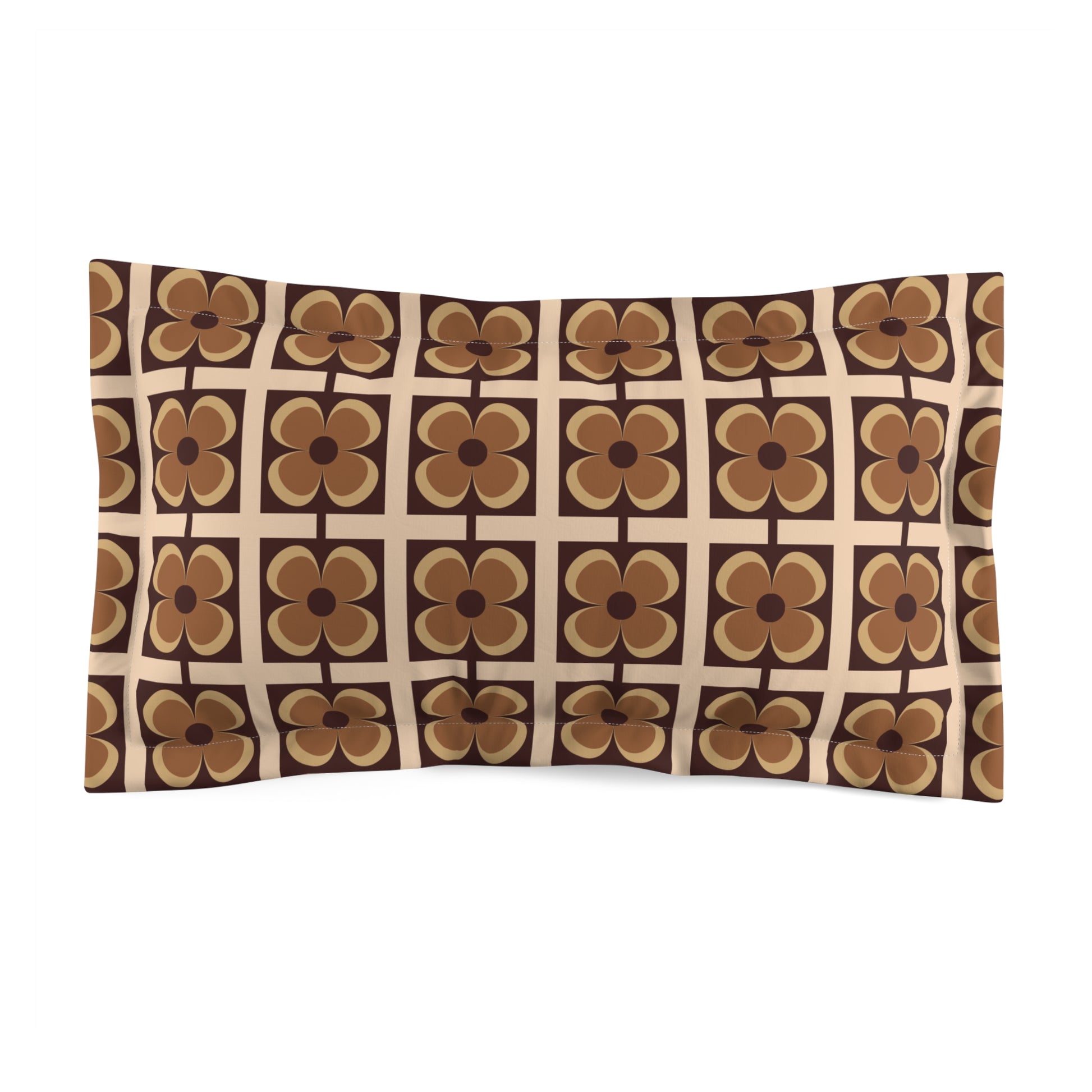 Retro 60s 70s Flowers Geometric Mid Century Modern Brown Pillow Sham