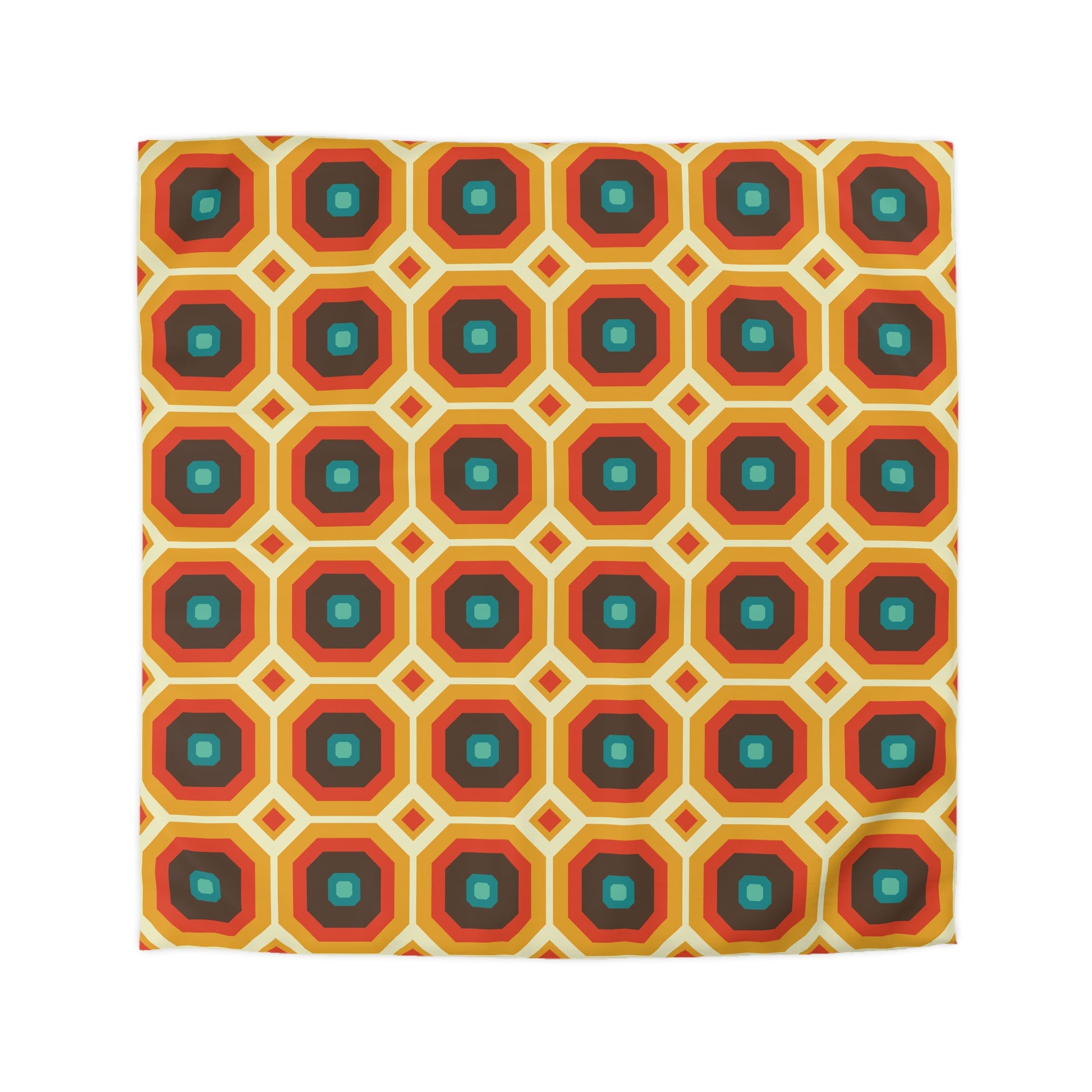 Soft and lightweight, this duvet cover brings a 60's and 70's mid century modern vibe into your bedroom, featuring a funky geometric design in a retro orange and brown color palette. Feel free to leave your bedroom door open, so guests can take a peek too! Matching pillow sham available here.