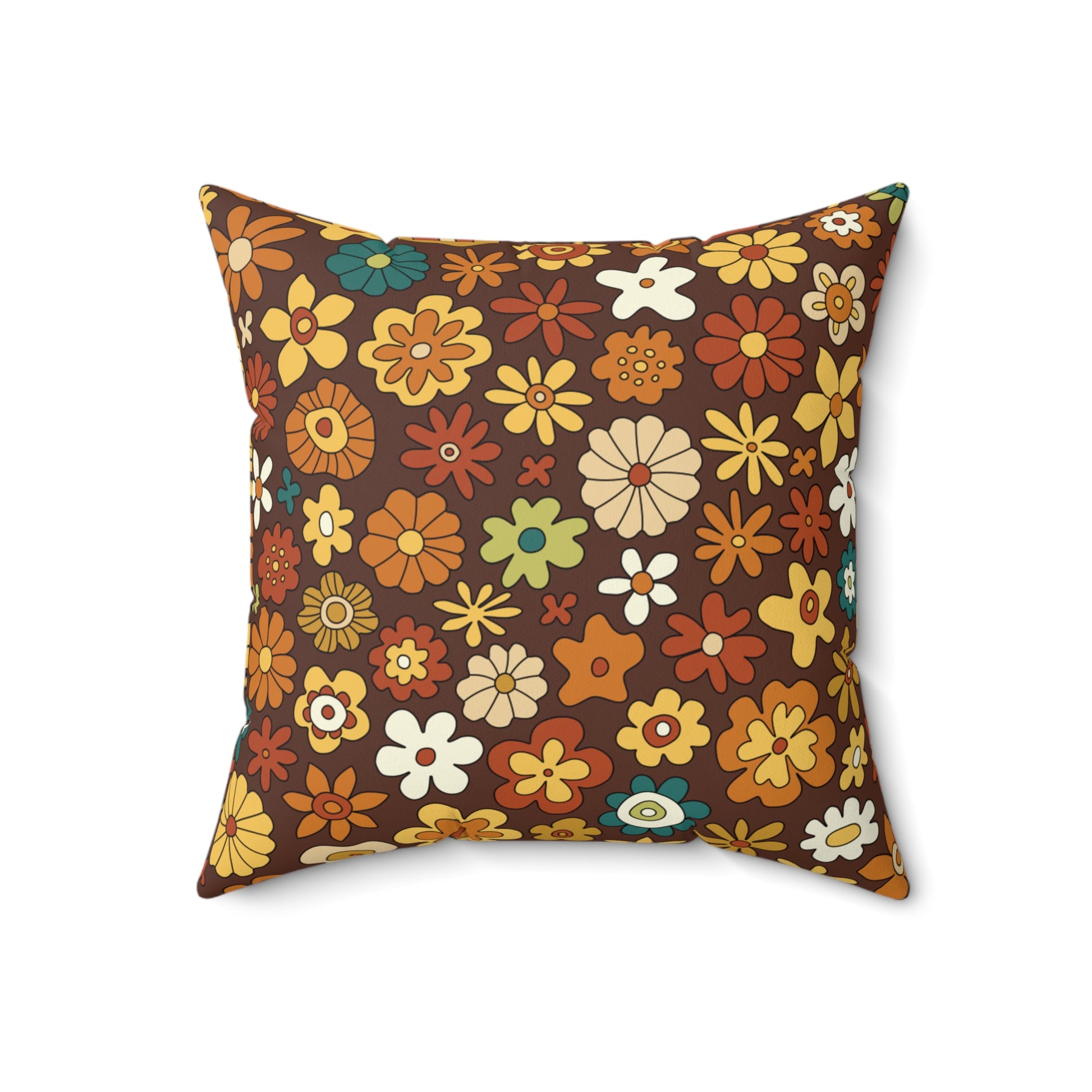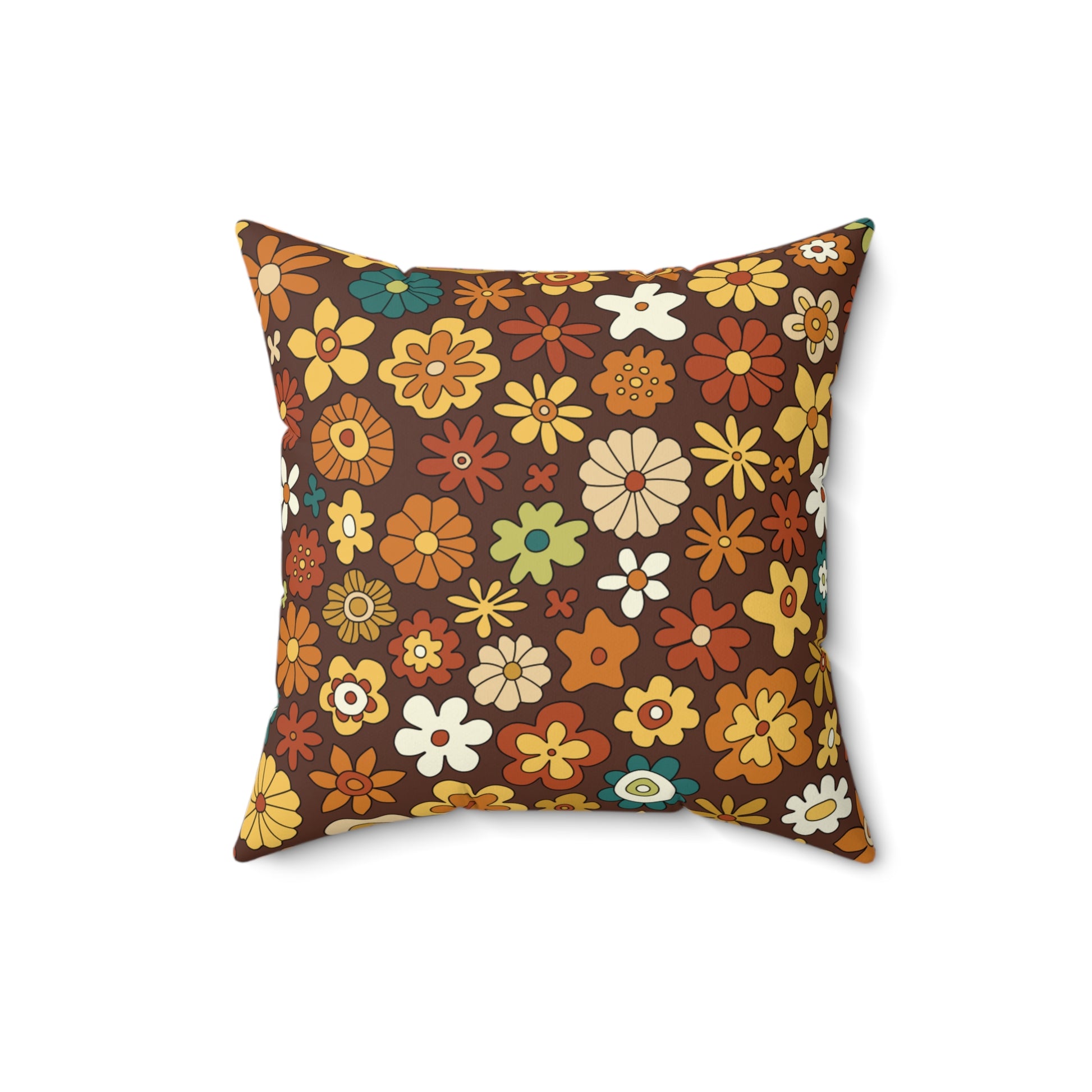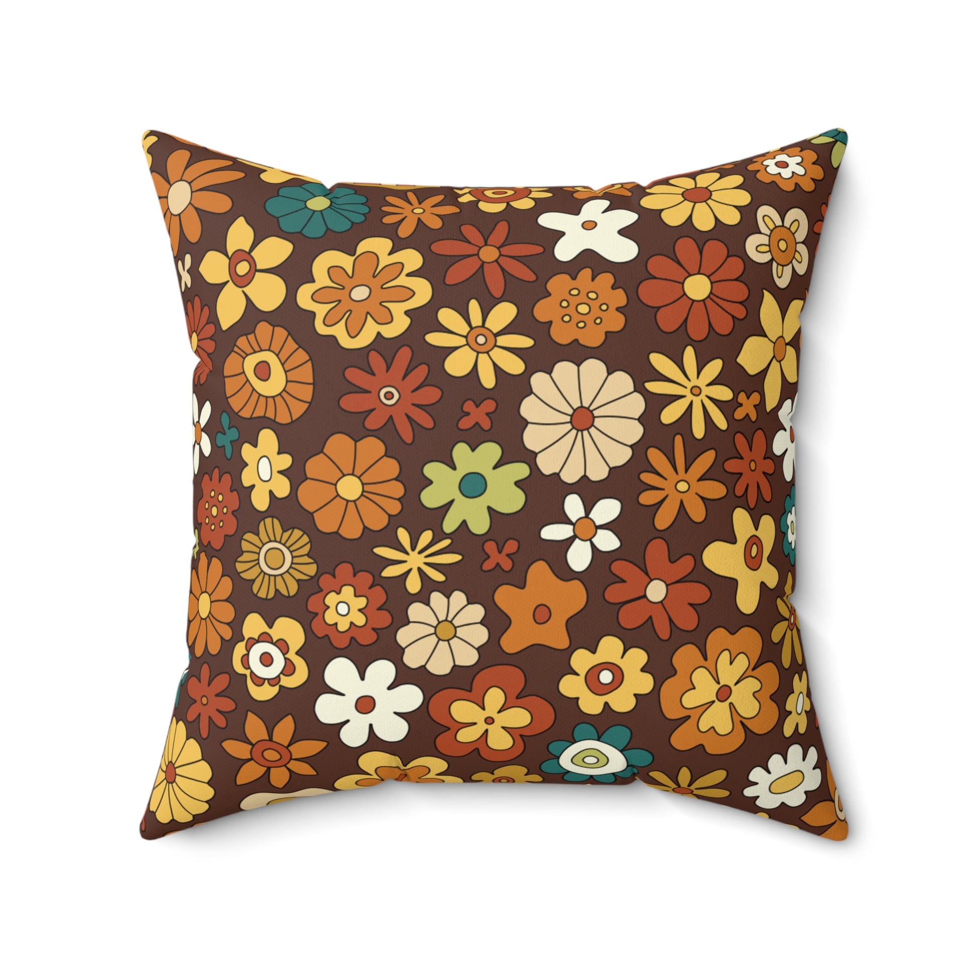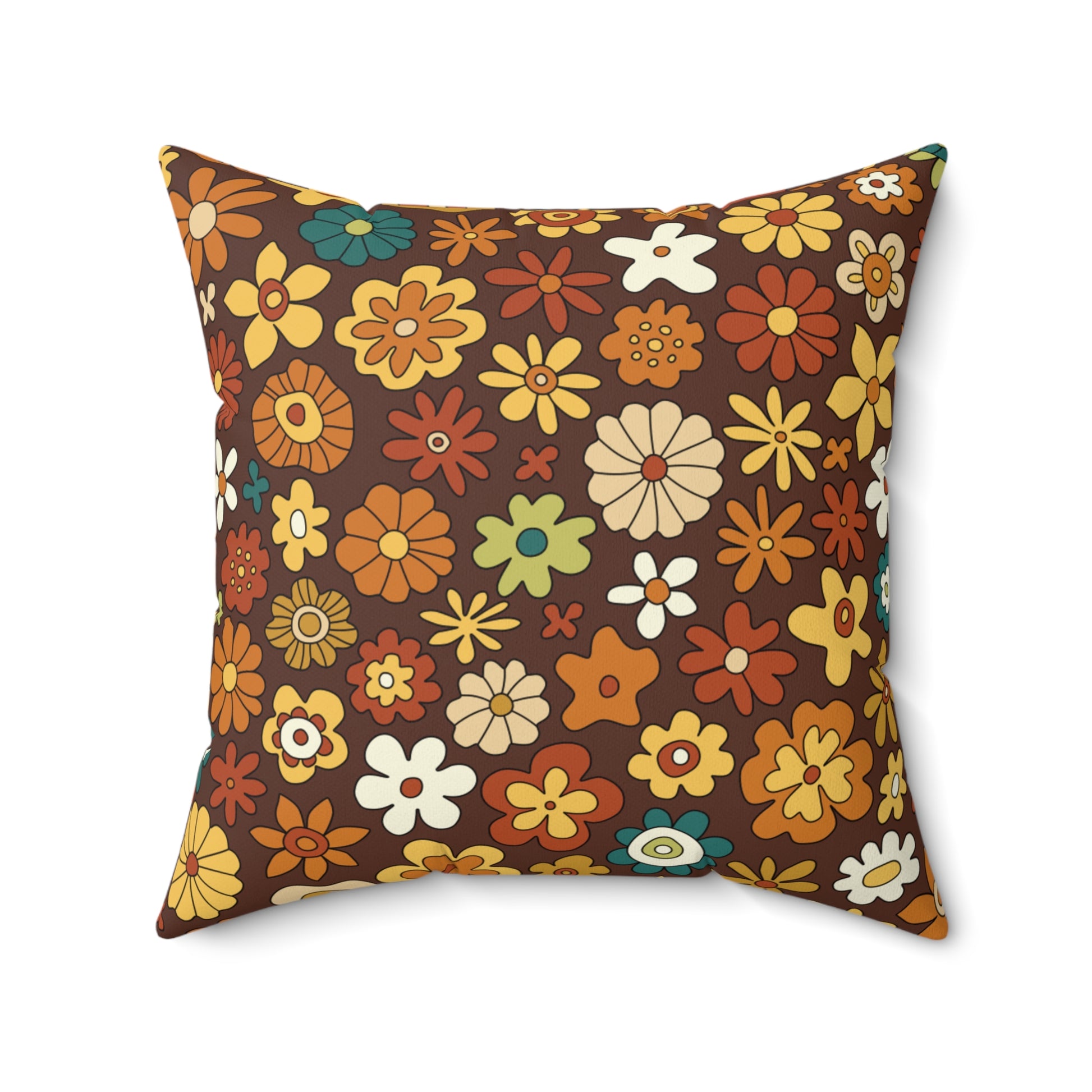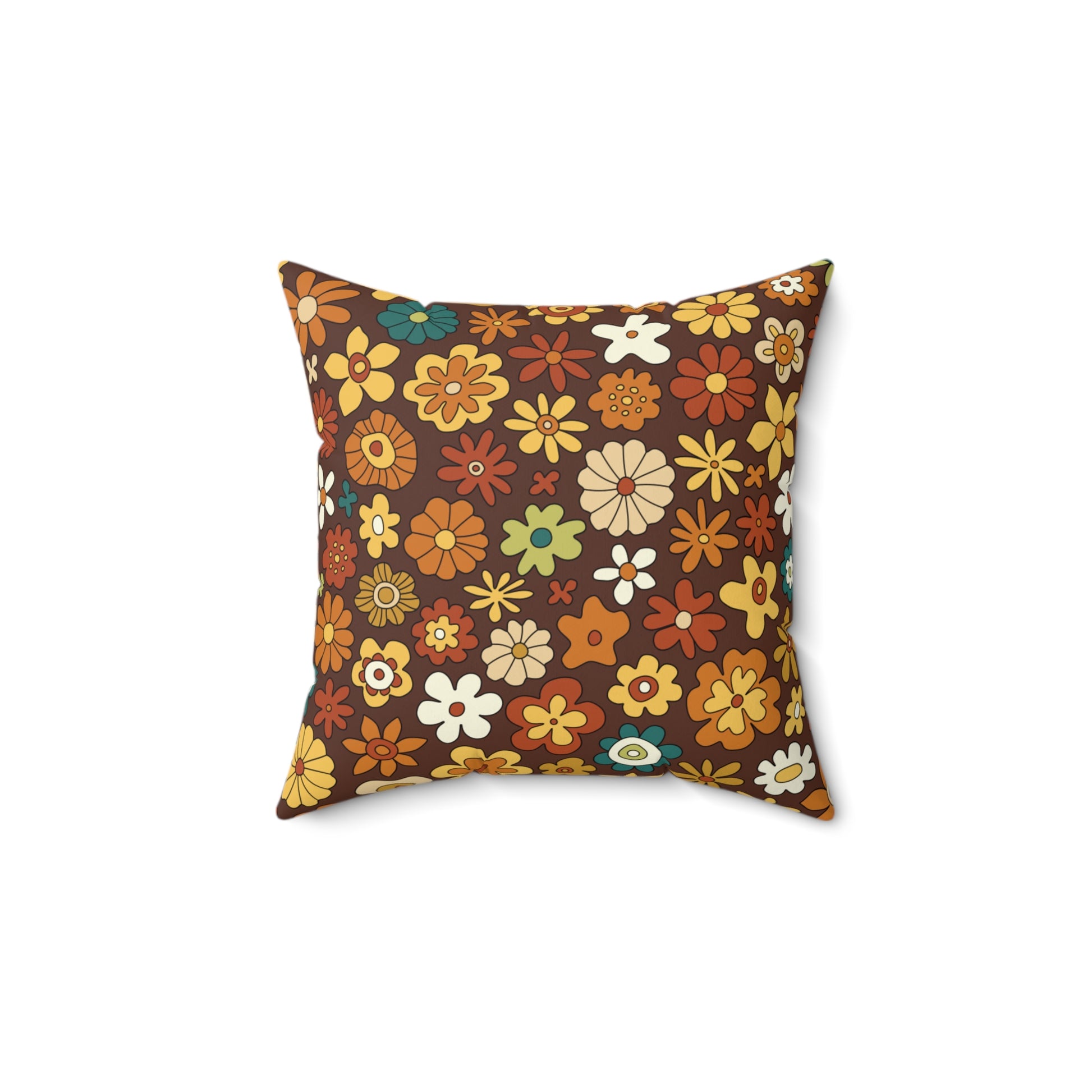Retro 60s 70s Groovy Floral Mid Century Modern Boho Brown Throw Pillow