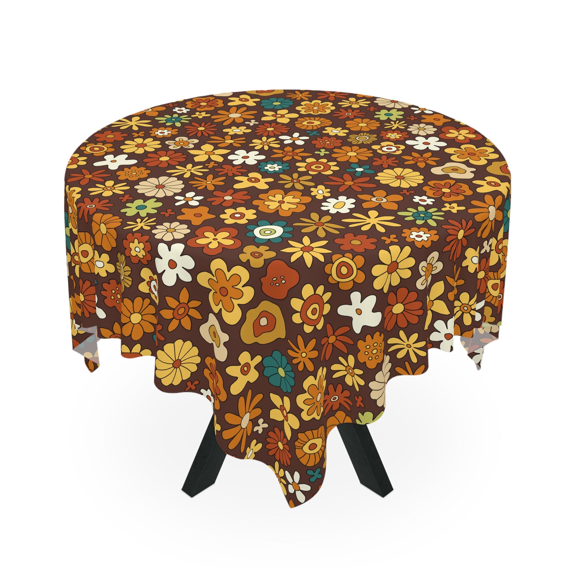 Retro 60s 70s Groovy Floral Mid Century Modern Brown Tablecloth