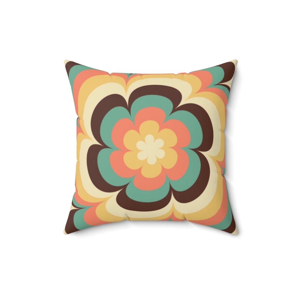 Retro 60s 70s Groovy Flower Mid Century Modern Multicolor Throw Pillow