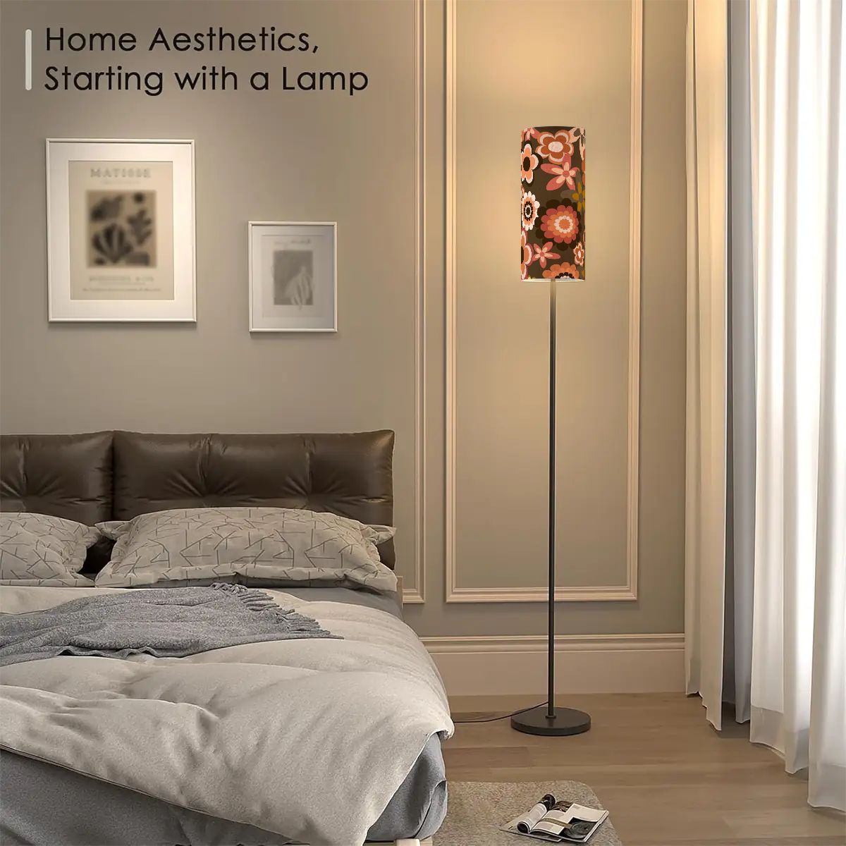 Retro 60s 70s Groovy Flowers Boho MCM Brown Floor Lamp