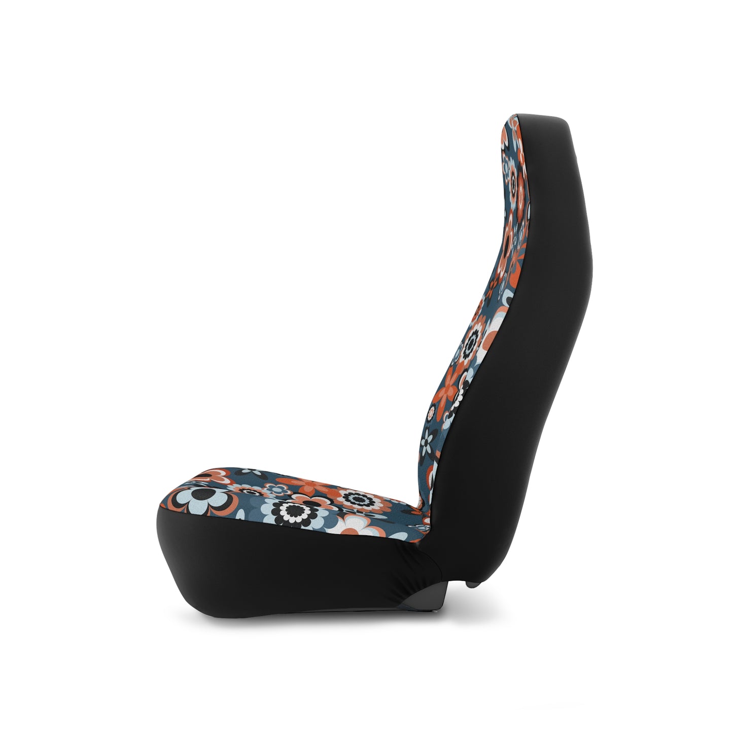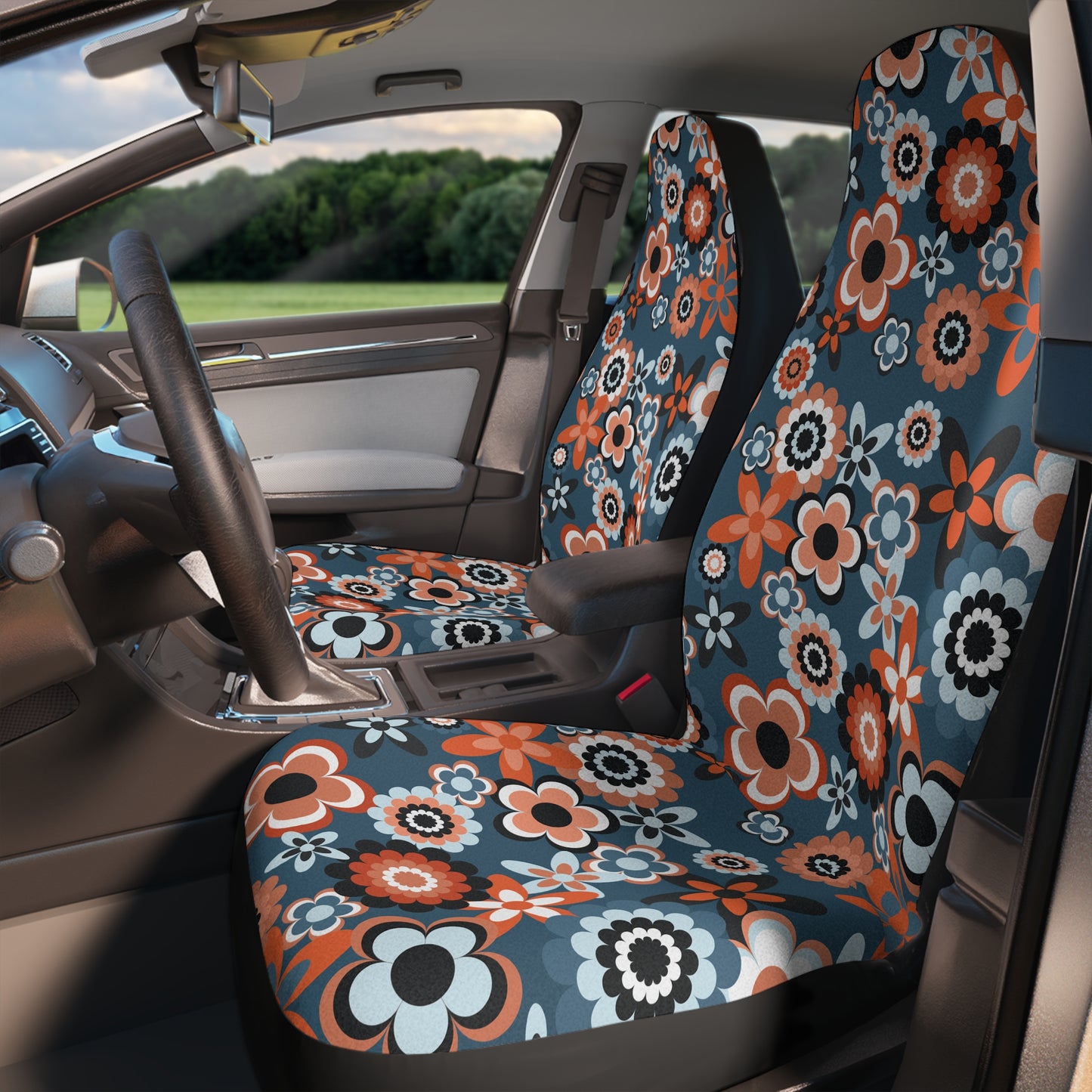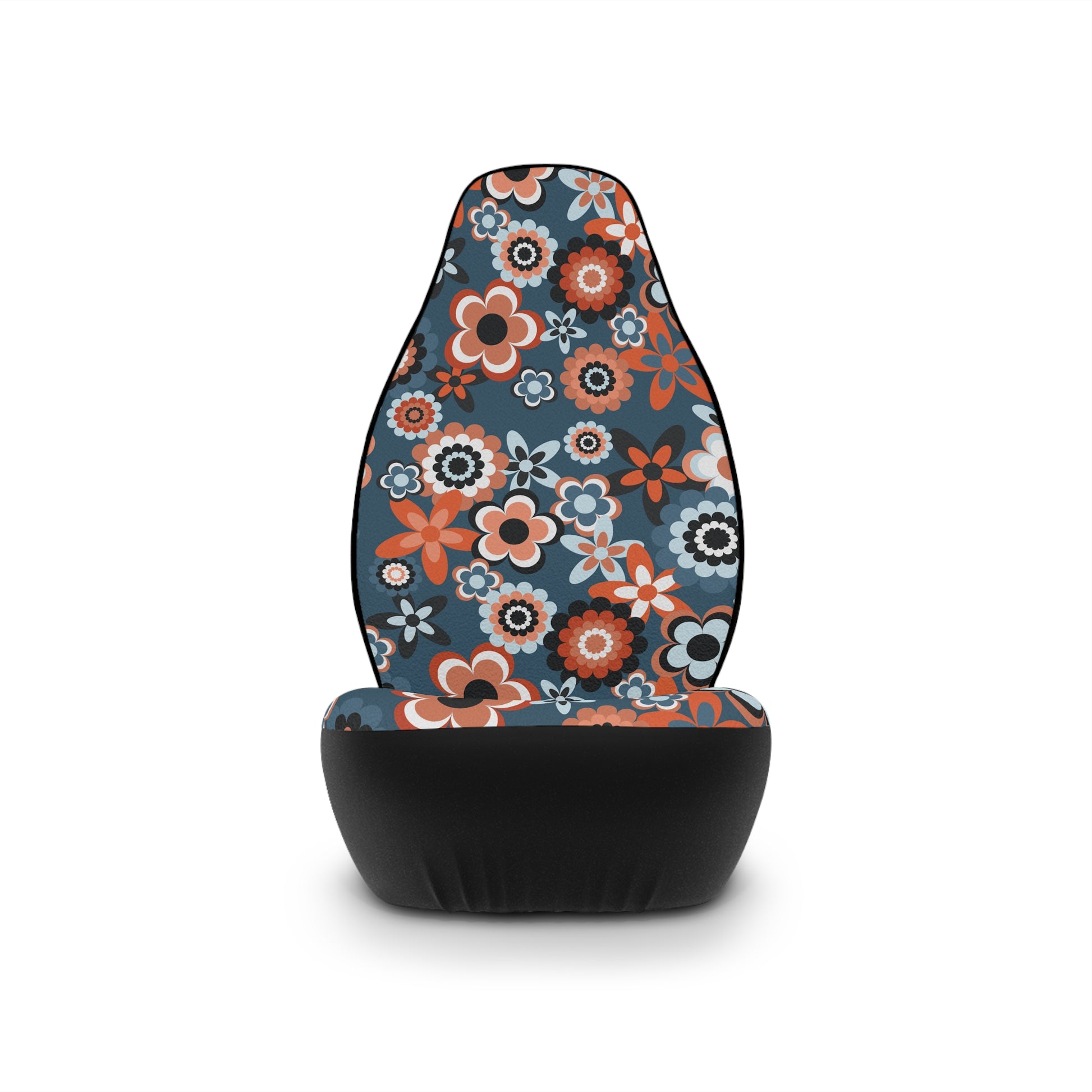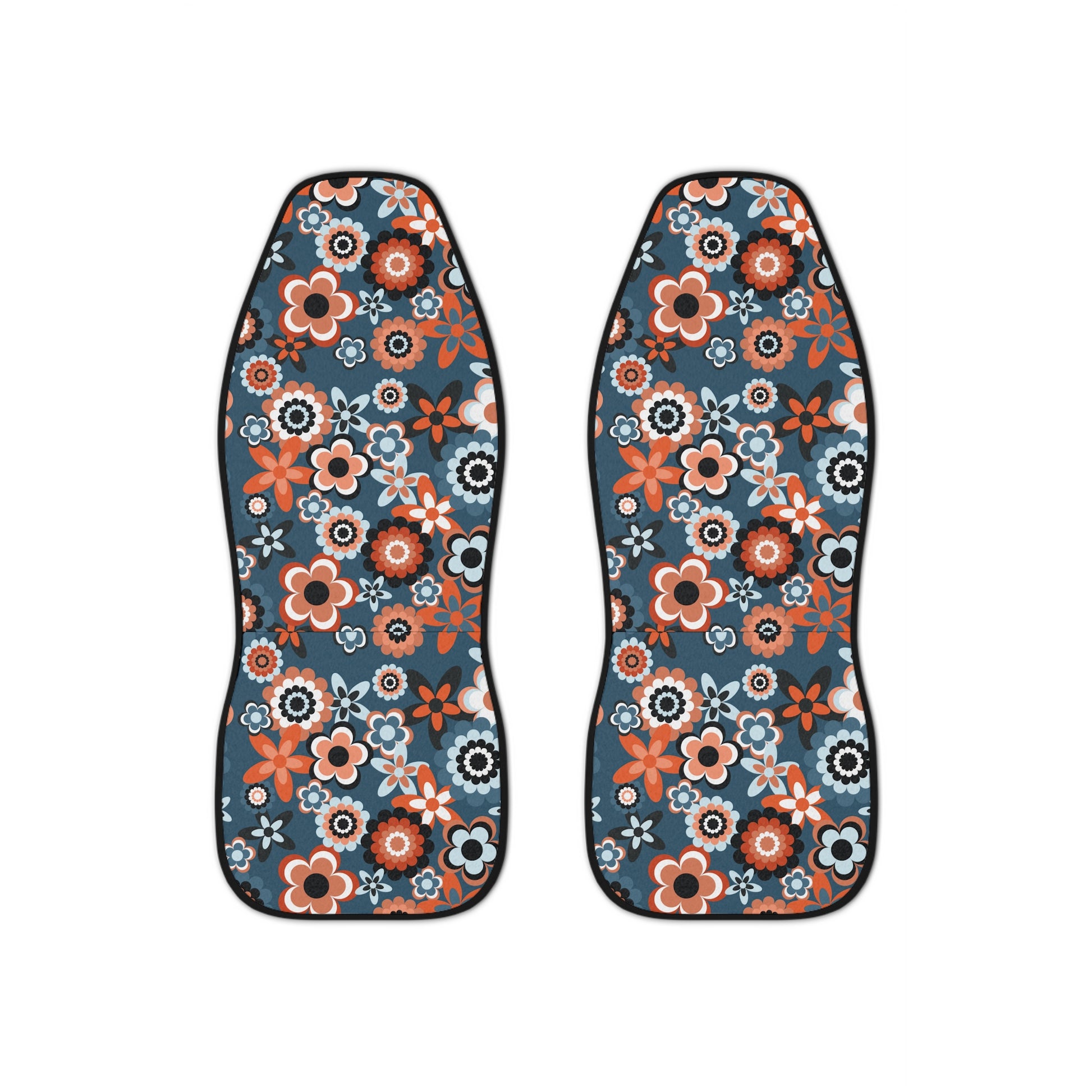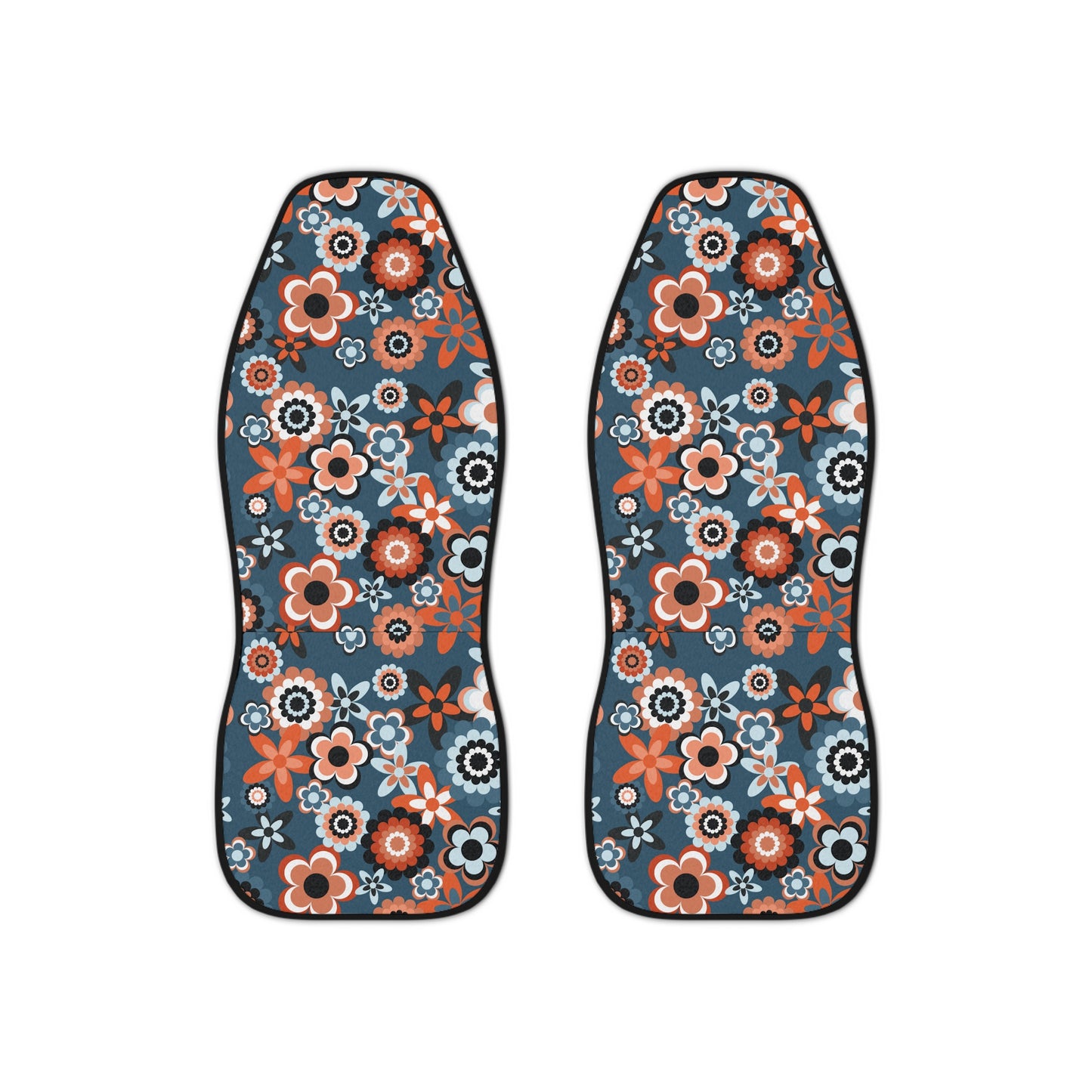 Retro 60s 70s Groovy Flowers Boho Mid Century Mod Coral & Blue Car Seat Covers
