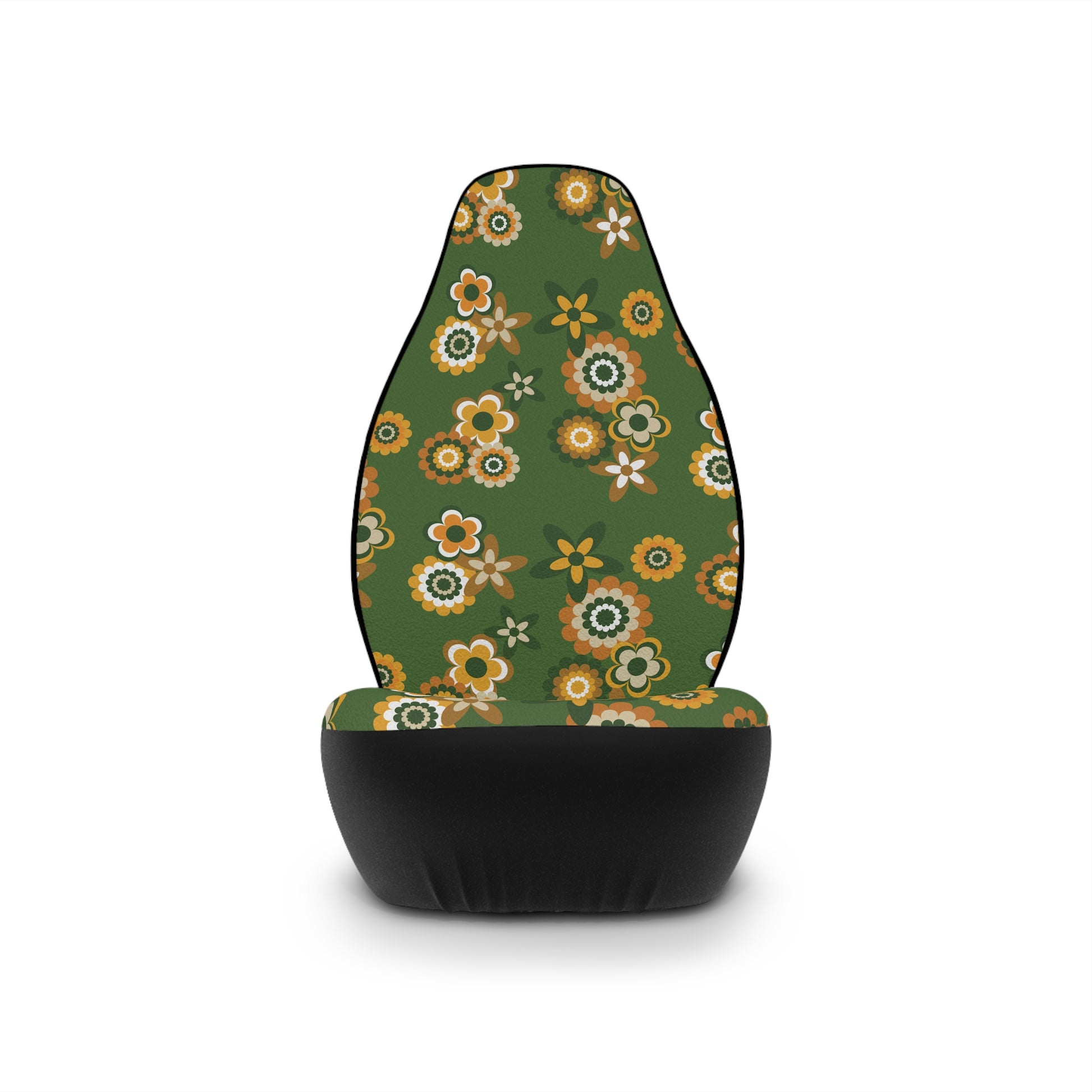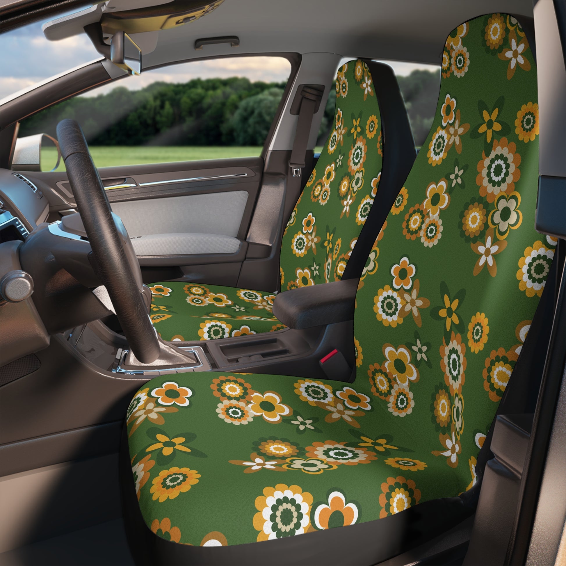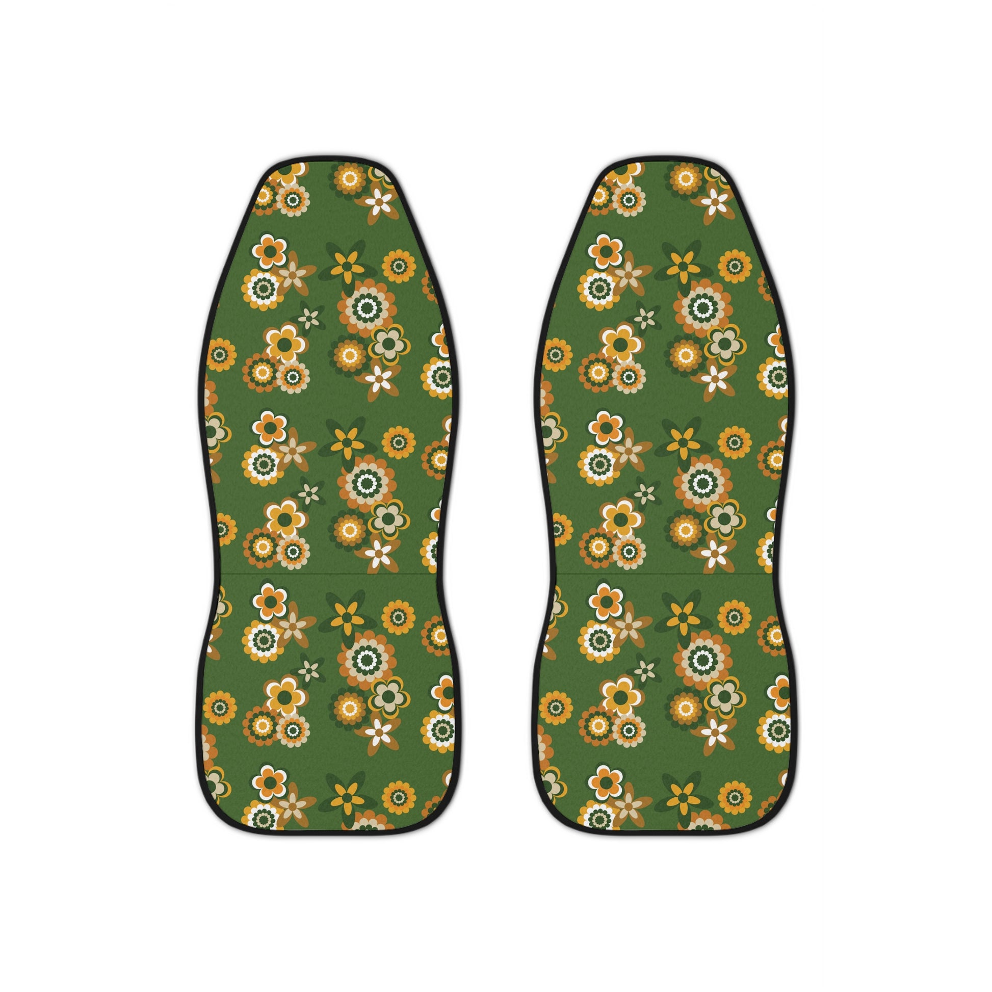 Retro 60s 70s Groovy Flowers Mid Century Mod Mustard & Green Car Seat Covers